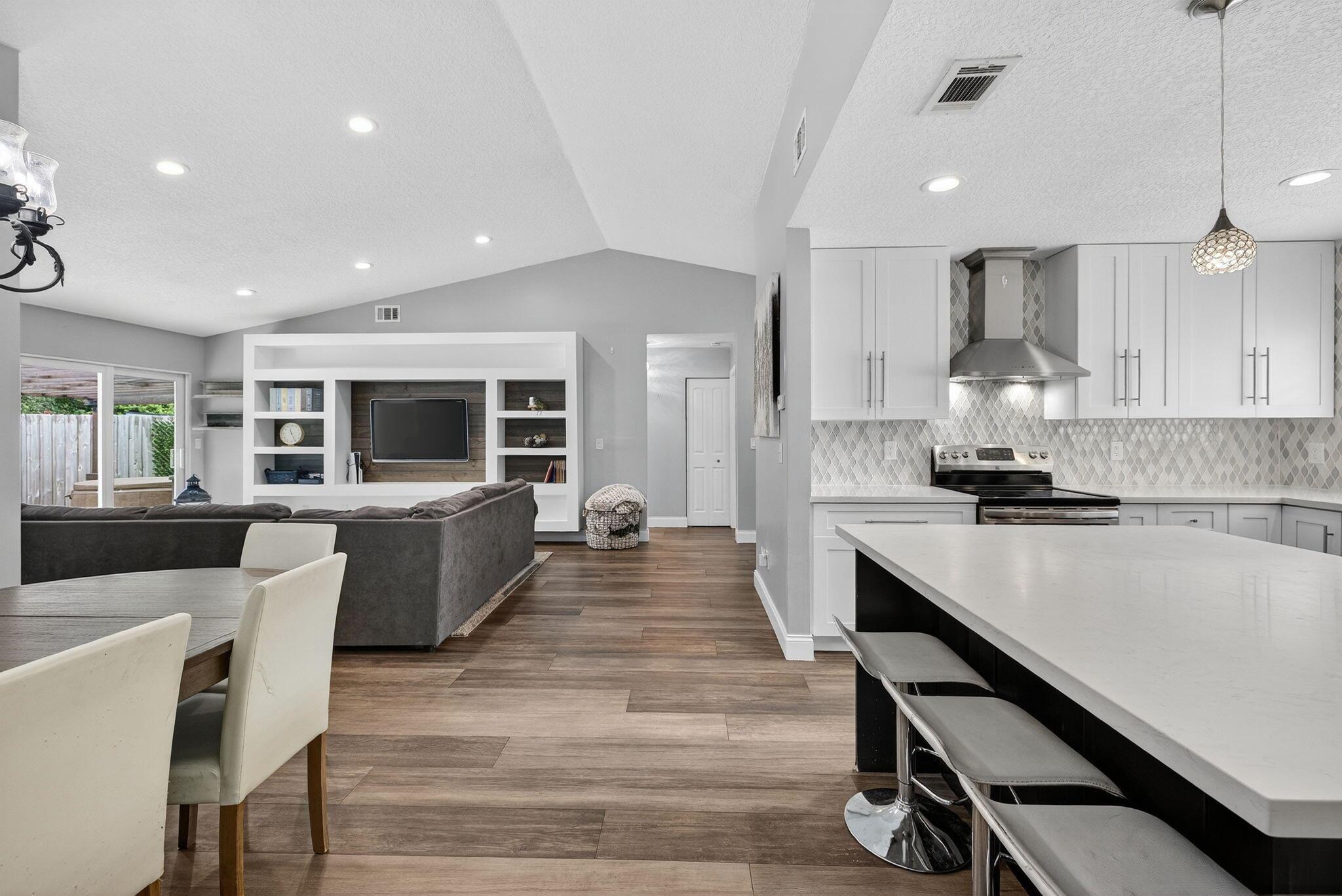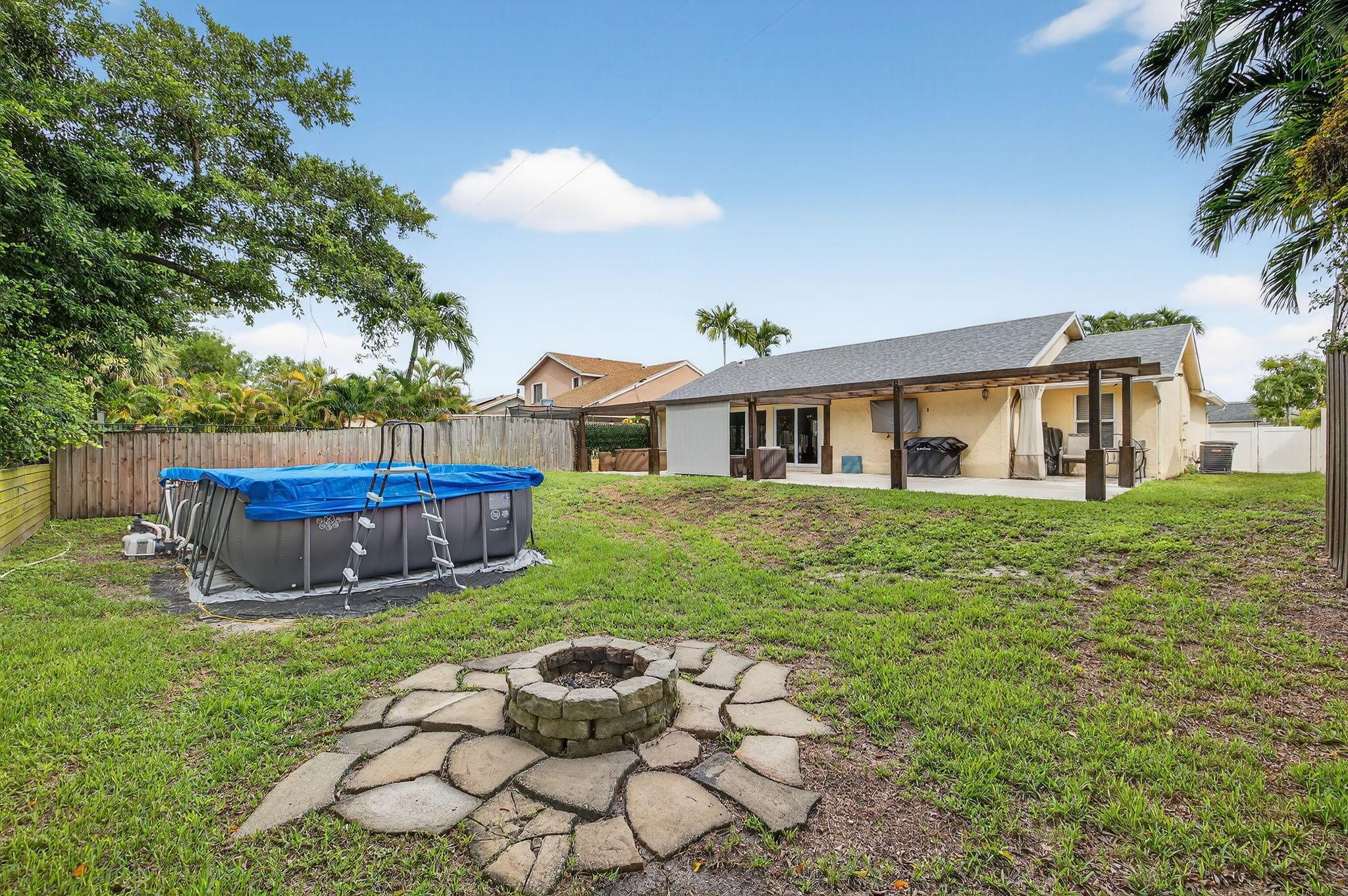 Beautifully updated 3 bedroom, 2 bath, 2 car garage, single-family home in Rainberry Park, West Boca! Brand NEW ROOF 2025, impact windows, and fenced yard backing to a nature preserve. Bright open kitchen with large island & stainless appliances, tile in main living, laminate in bedrooms. Main suite features dual walk-in closets, with one converted into a cozy office/flex space. Updated 2nd bath with soaking tub. Enjoy a huge backyard with newly paved patio & above-ground pool ready for backyard BBQs. Community offers pool, tennis, basketball, racquetball & volleyball. A/C & WH 2018. Near shopping, dining, hospital, worship & A-rated schools.