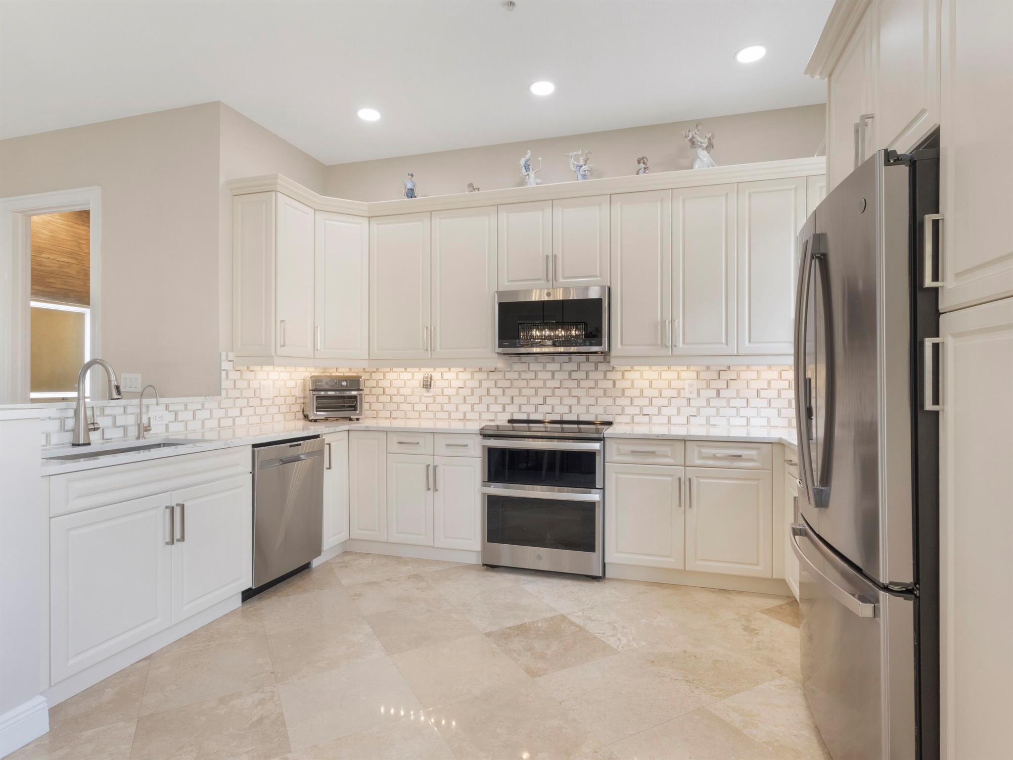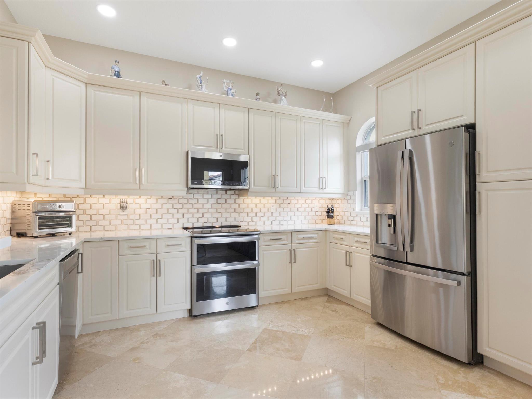 Highly Upgraded Luxurious corner townhome in the lush gated community of Royal Poinciana in East Boca Raton. One mile from the ocean. This 3-bedroom 3.5 bath corner townhome features lots of natural light,12ft high ceilings, upgrader high hat lighting throughout the home, marble & hardwood flooring thru-ought entire home. Large newly remodeled open kitchen w/ stainless steel appliances & quartz countertops, and full home reverse osmosis system, dining/living area with Juliet balcony, private elevator. Master boasts large bathroom w/ jacuzzi, his & her built out closets. All bathrooms have been remodeled and upgraded. Hurricane impact glass on entire home, 2 car garage, & community pool. Extremely convenient location! Minutes to beach, downtown Boca Raton & Delray Beach