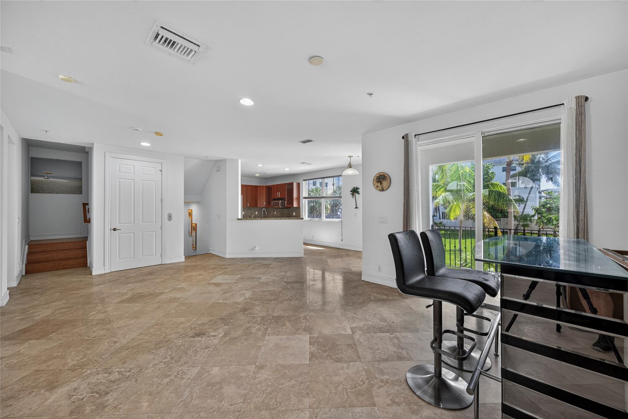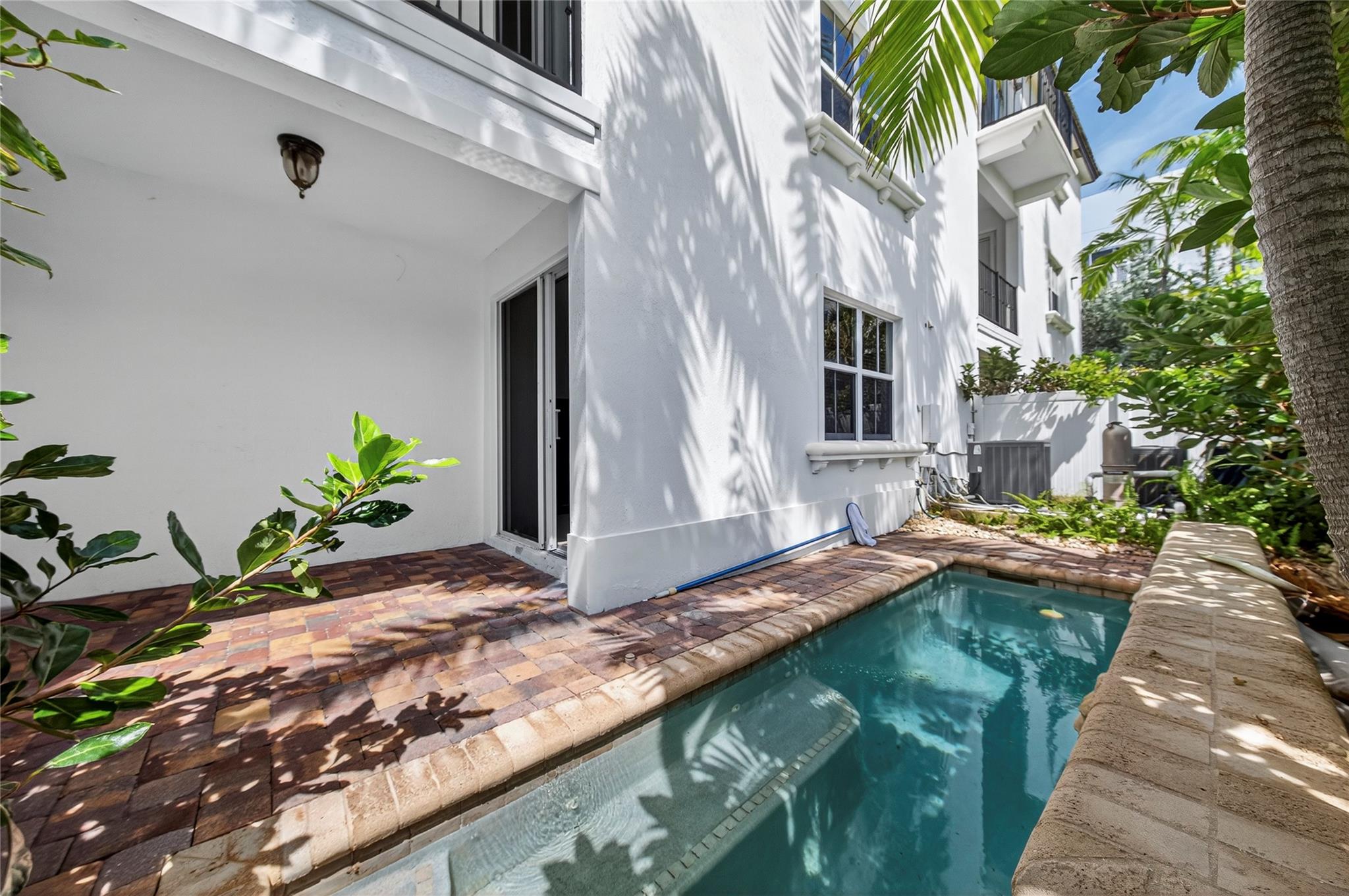 Discover modern living in this gated townhouse offering luxury, privacy, and convenience. The ground floor includes a bedroom, full bath, 2 car garage, elevator for ease, a covered porch overlooking the fenced lap pool framed by palm trees. While the 2nd floor features spacious living areas w/ gorgeous garden view, granite & stainless-steel kitchen w/ lots of storage space, 1/2 bath, laundry room w/ utility sink. On the 3rd floor, the master suite boasts a private balcony w/ garden view, ensuite bath w/ separate tub & shower, bidet, his and hers closets, along w/ 2 additional bedrooms w/ balconies. Located 1 block from the beach, Pier, public boat ramp. Minutes from Atlantic Blvd dining, shopping centers, Harrah's casino, 6 min to 95, 12 min to Broward health & 20 min Ft Lauderdale Airport