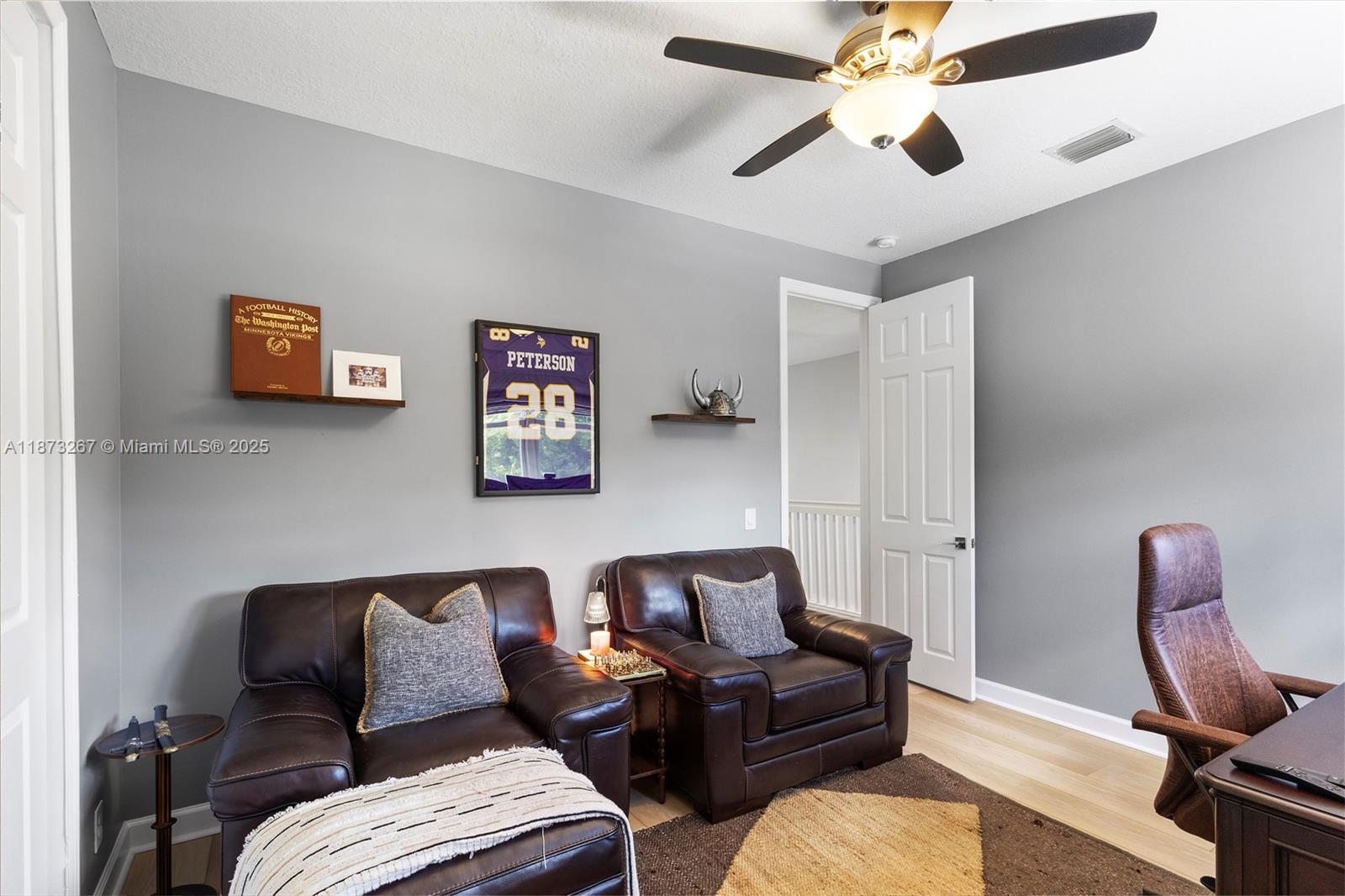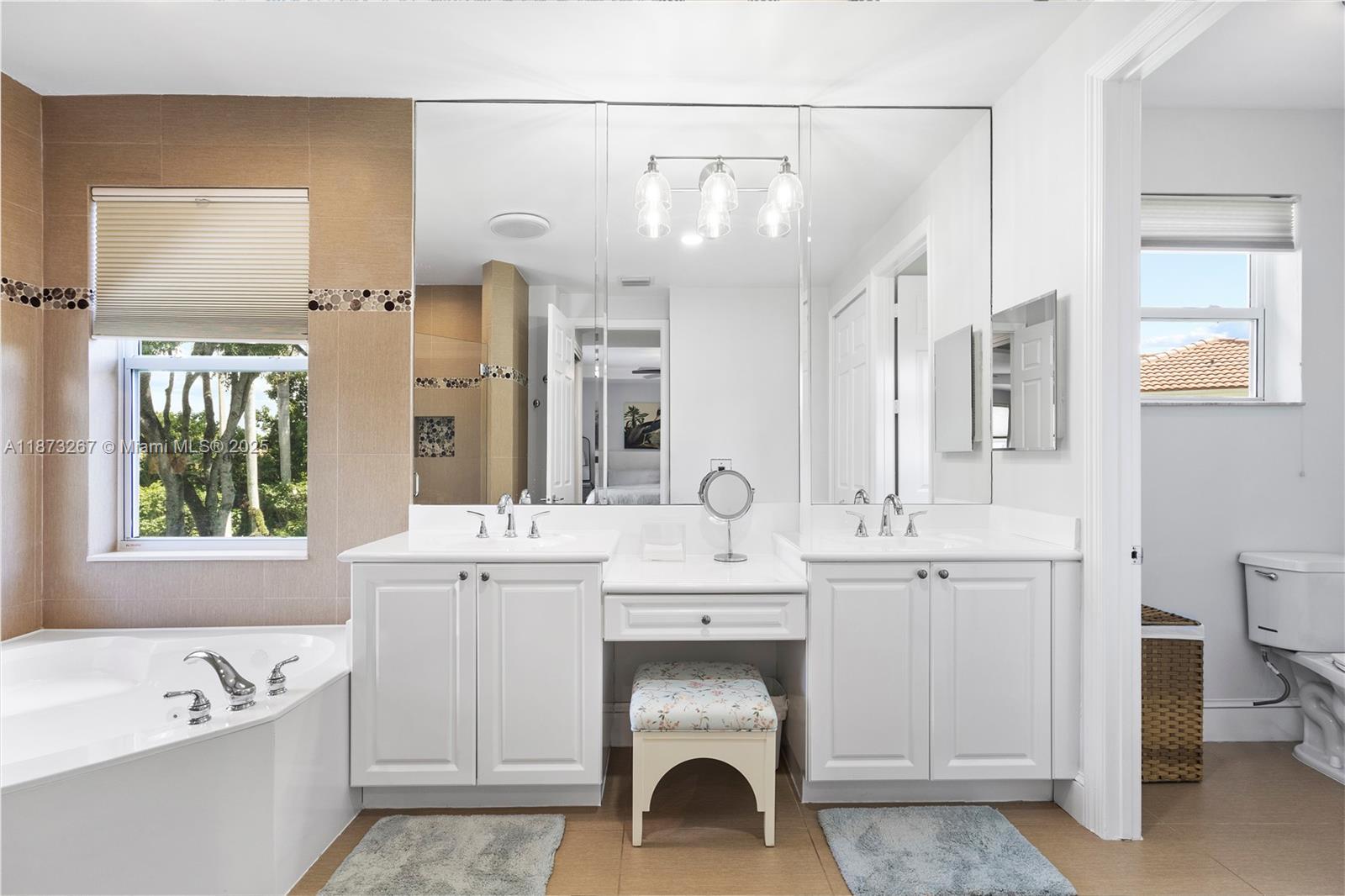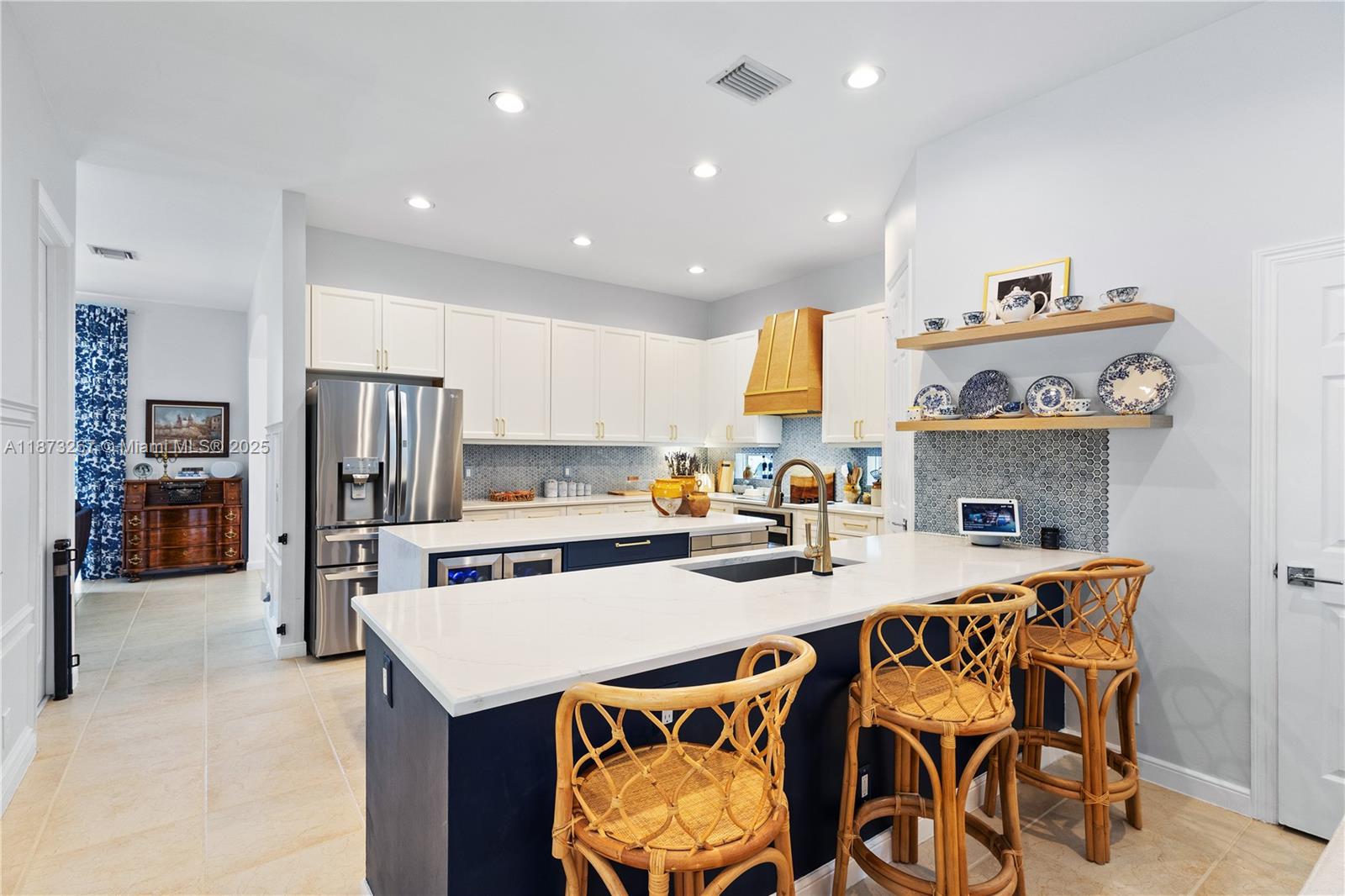 Discover South Florida living at its finest in your dream home! One of the few oversized lots in the sought-after community of Biltmore Estates at Monarch Lake in Miramar. Perfectly designed for entertaining and everyday ease and comfort.The outdoors is designed for relaxation, surrounded by lush tropical landscaping, pool area, and a large yard with a private back patio. The meticulously designed kitchen features quartz countertops, waterfall island, wine fridge and custom designed coffee station. Custom woodwork and built-ins throughout make this home a one-of-a-kind. Courtyard features private guest/in-laws quarters. The primary ensuite includes an added room perfect for office, nursery, or 5th bedroom. Impact windows and doors throughout. This home is both inviting and sophisticated.