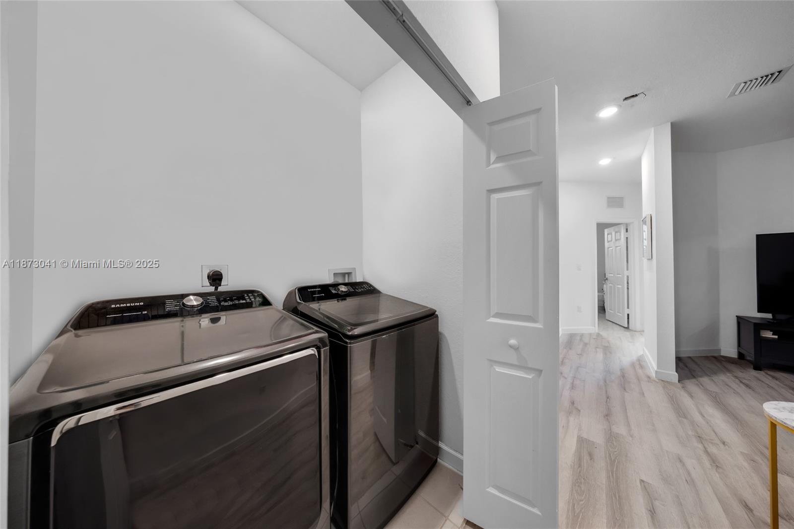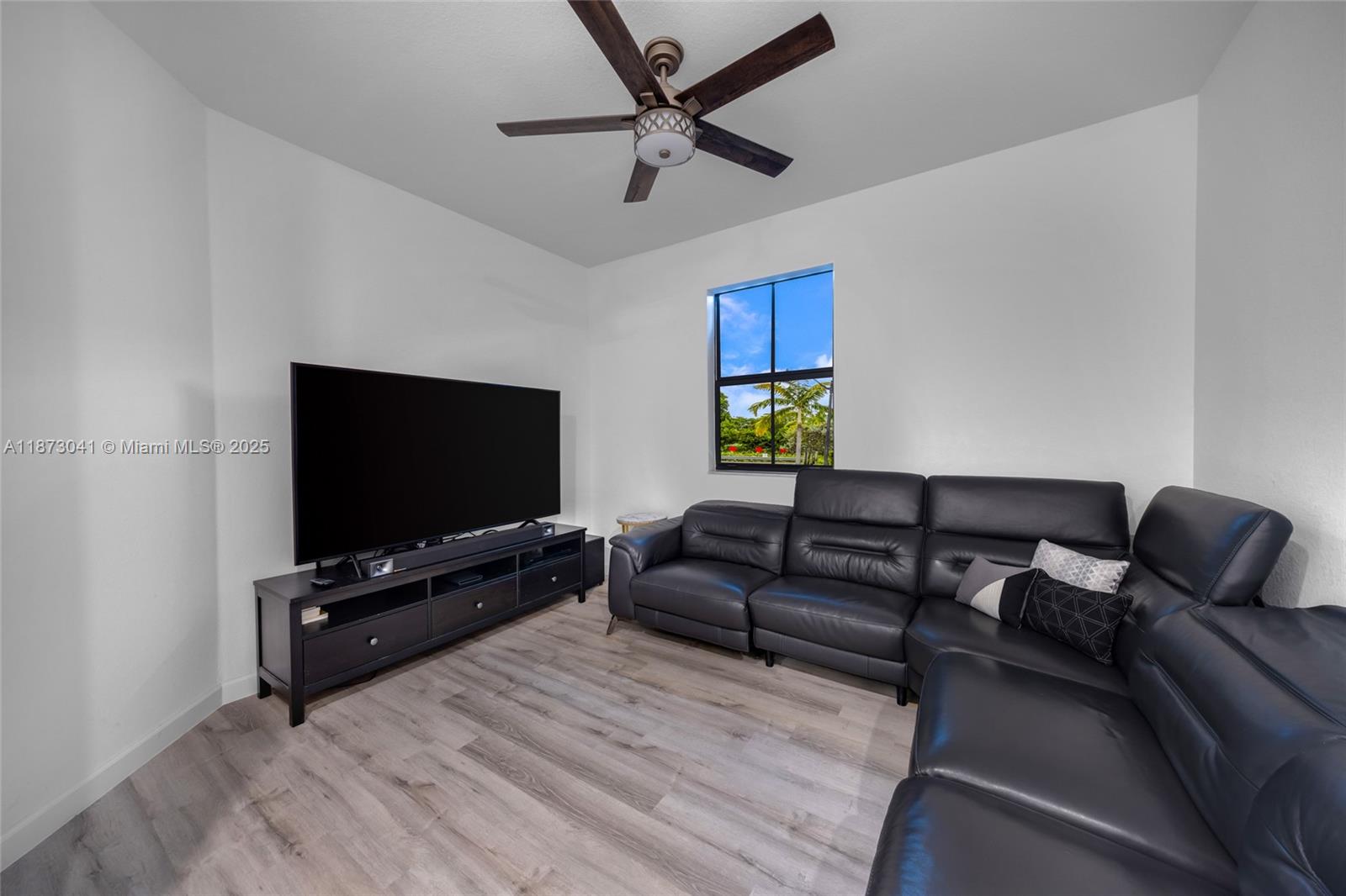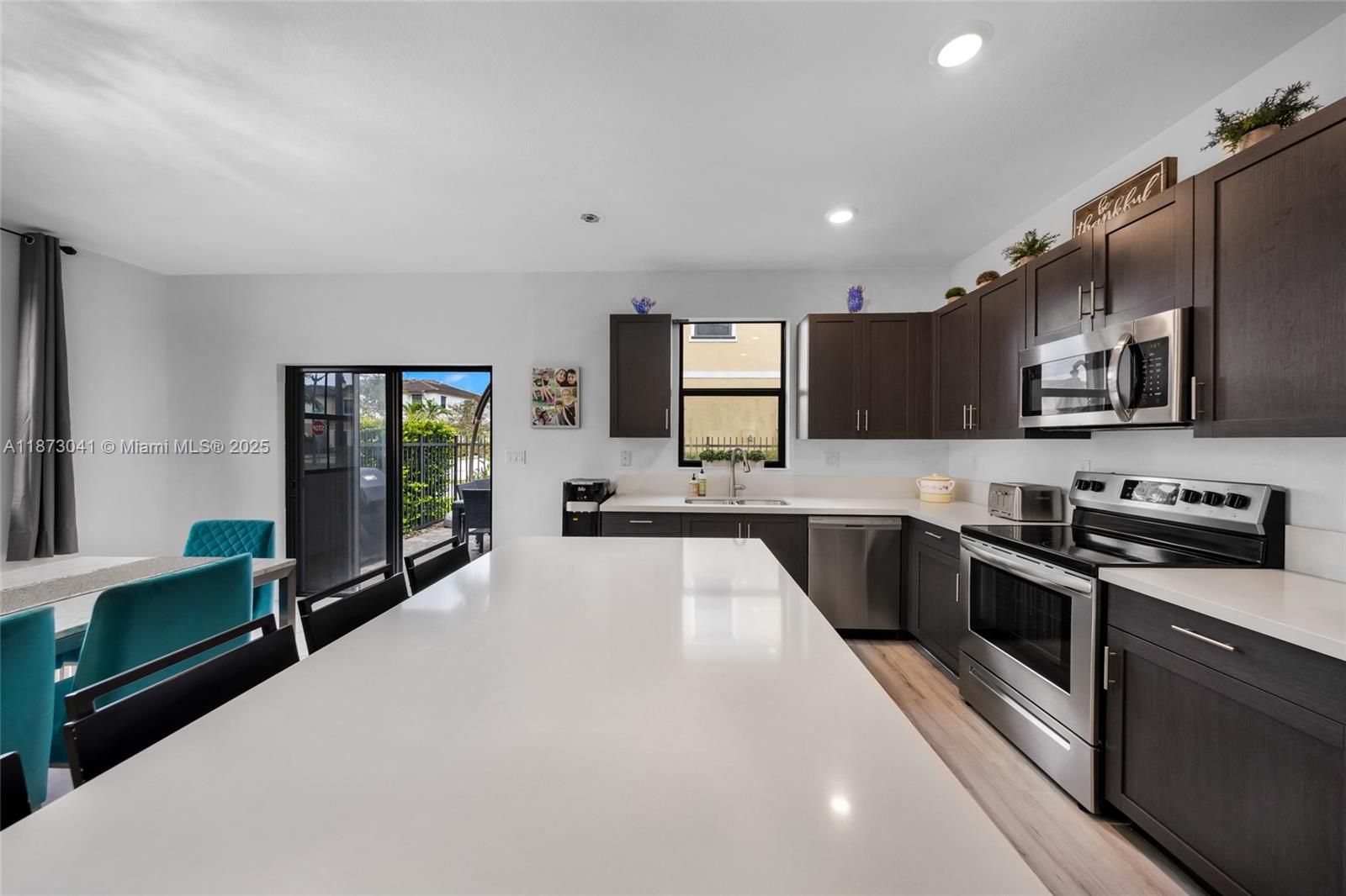 Welcome to this stunning 3-bed, 2.5-bath corner townhouse with a versatile den (convertible to a 4th bedroom) in the pristine Palomino Lake planned community. Features include vinyl and porcelain floors throughout, quartz countertops, custom closet shelving, blinds on all windows, and a spacious 2-car garage. Hurricane-ready with 9 aluminum protective shutters (resistant up to 300 mph winds). Centrally located close to the pool & mailbox, near shopping, Hard Rock, and highways.
