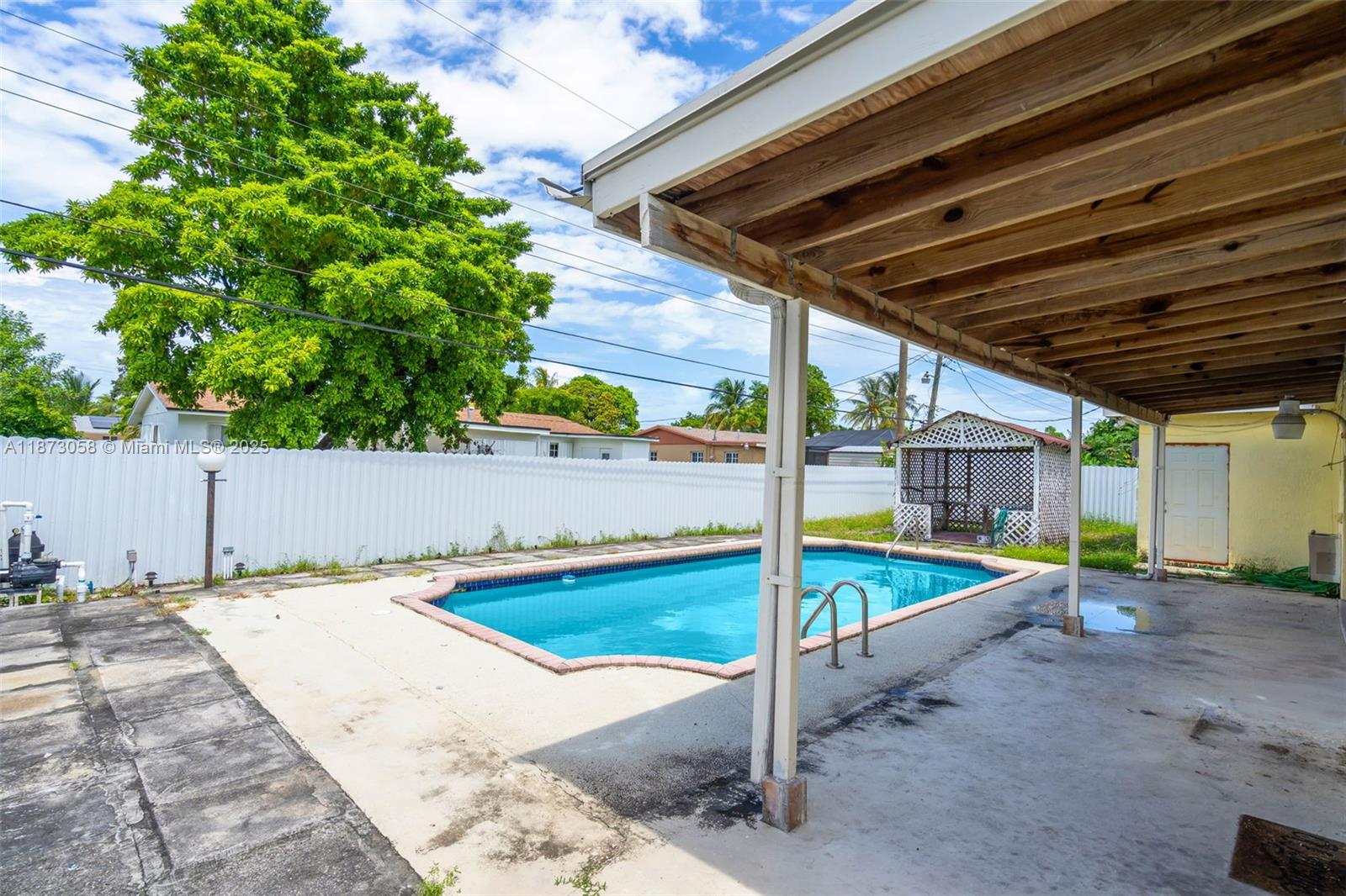 Your future home awaits! This 3-bedroom, 2-bath residence offers a spacious layout filled with natural light. Step inside to a welcoming living and dining area that flows seamlessly into the kitchen and family room, creating an inviting space for gatherings. Enjoy the peace of mind with a 2019 AC and 2025 water heater. Step outside to a covered terrace overlooking the pool and patio, the ideal setting for entertaining or quiet evenings at home. Cash only. Located in Miami Gardens, close to major highways, shopping, dining, schools, and places of worship.