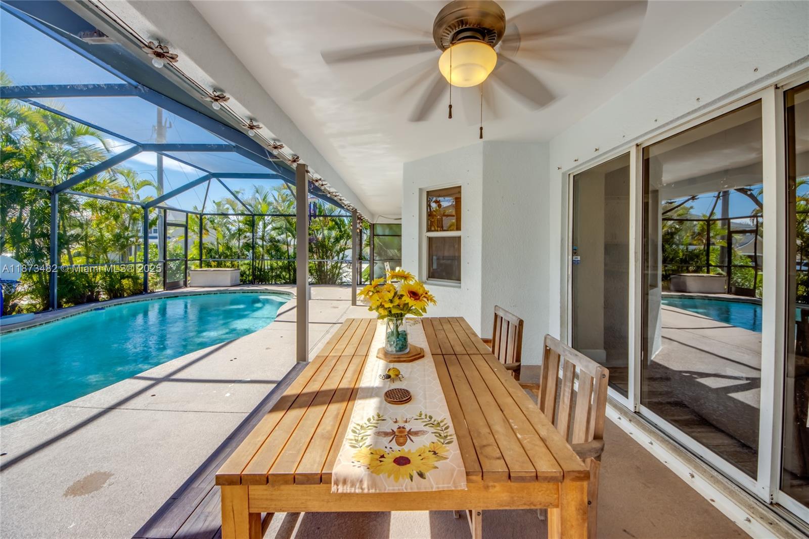 Welcome to this charming corner house, boasting 1,714 square feet of living space, built in 2005. This home features three spacious bedrooms, with an additional converted den that serves as a fourth bedroom, complete with its own closet. Enjoy the convenience of two bathrooms and a side-load garage. Step outside to your private oasis, featuring a refreshing pool, perfect for entertaining or relaxing. Don't miss the opportunity to make this delightful home yours!