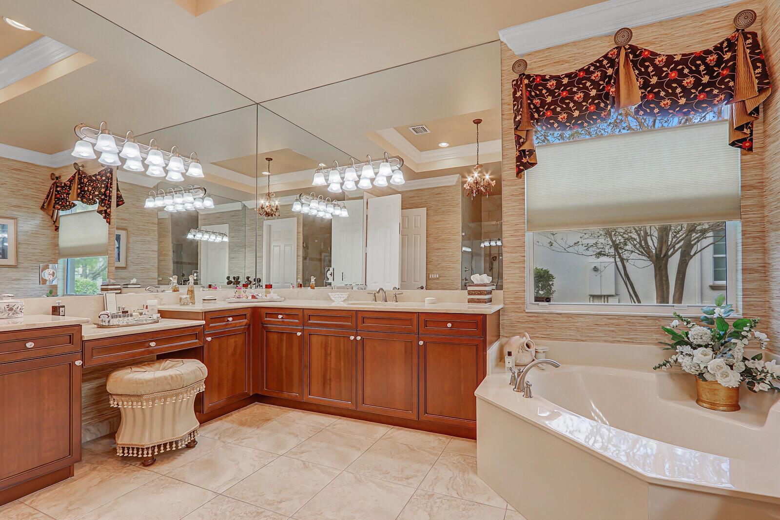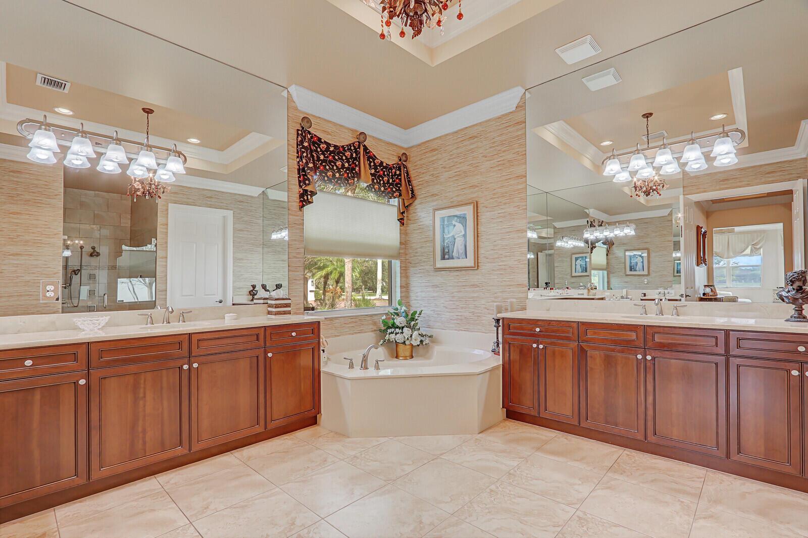 Privacy! Privacy! Privacy! Nestled in The Preserve at Bay Hill Estates, a uniquely private subdivision with a manned gatehouse, this elegant 3BR, 3.5 Baths, is situated on a fully fenced 1/2 acre water view lot. Featuring a large circular driveway with lush exterior landscaping, outside lighting and a split 3 car garage. As you enter the courtyard entrance you encounter frosted double glass doors leading into a grand foyer with 20' vaulted ceilings. Outside is a 15x30 foot heated salt water pool with spa. Kitchen cabinets are upgraded with soft close doors and featured overhead and undermount lighting. All original appliances have been replaced and upgraded. The primary bedroom has very generous his and her closets. Primary bathroom includes a car wash shower. Large 20x20 clubroom.