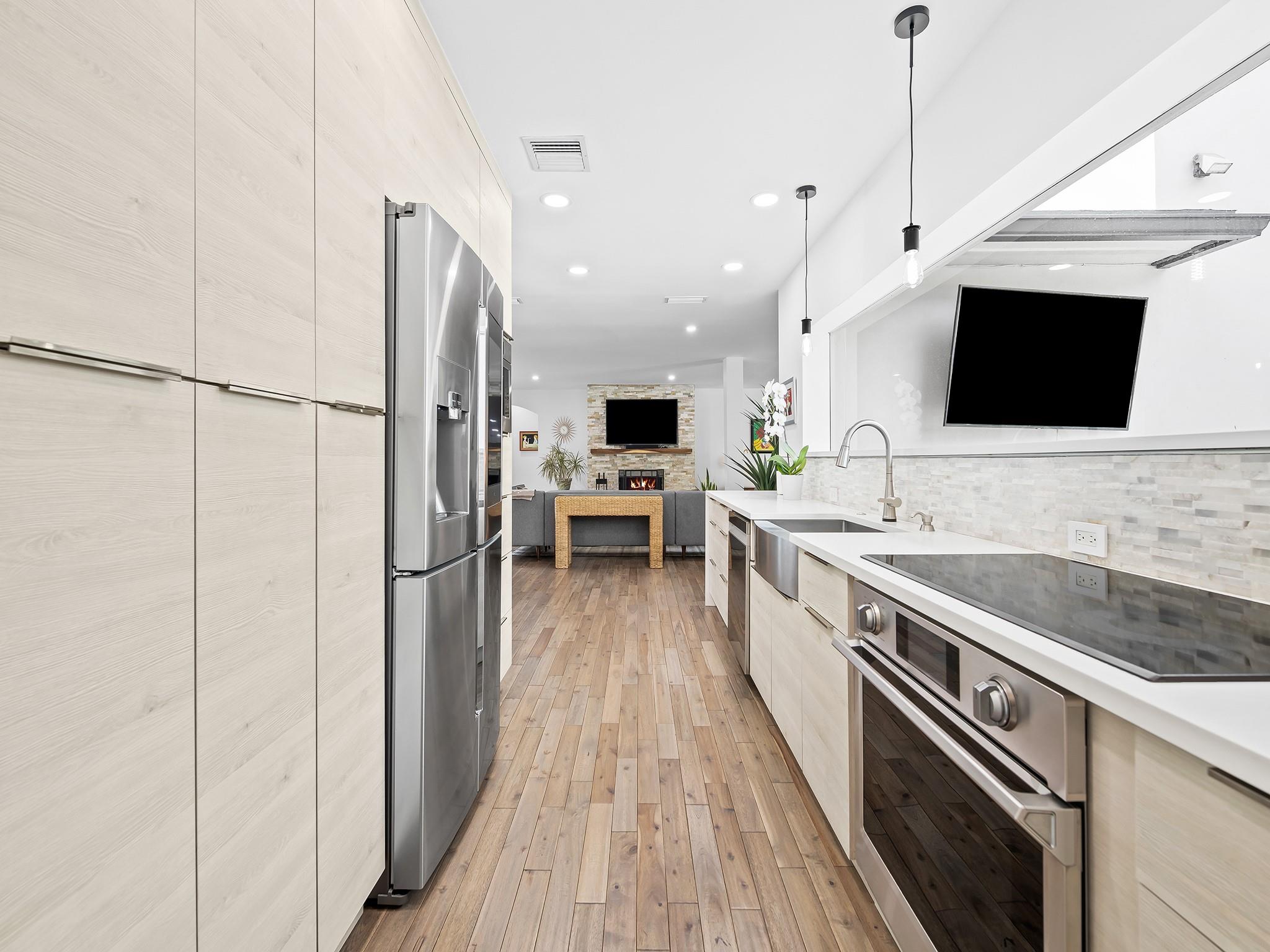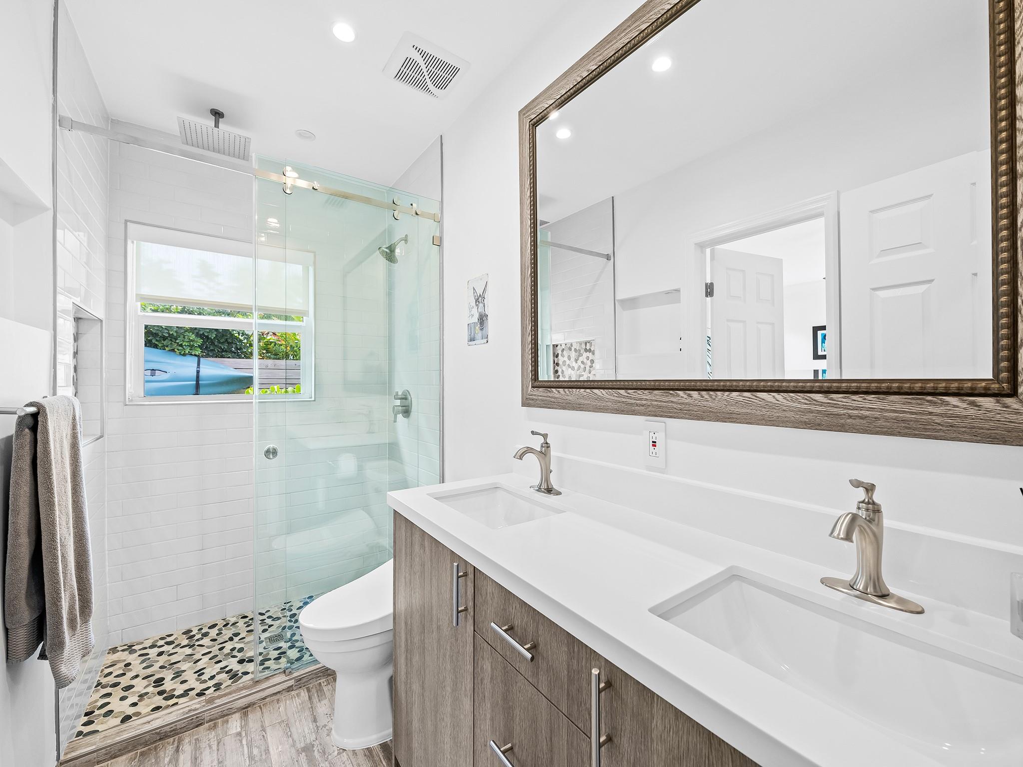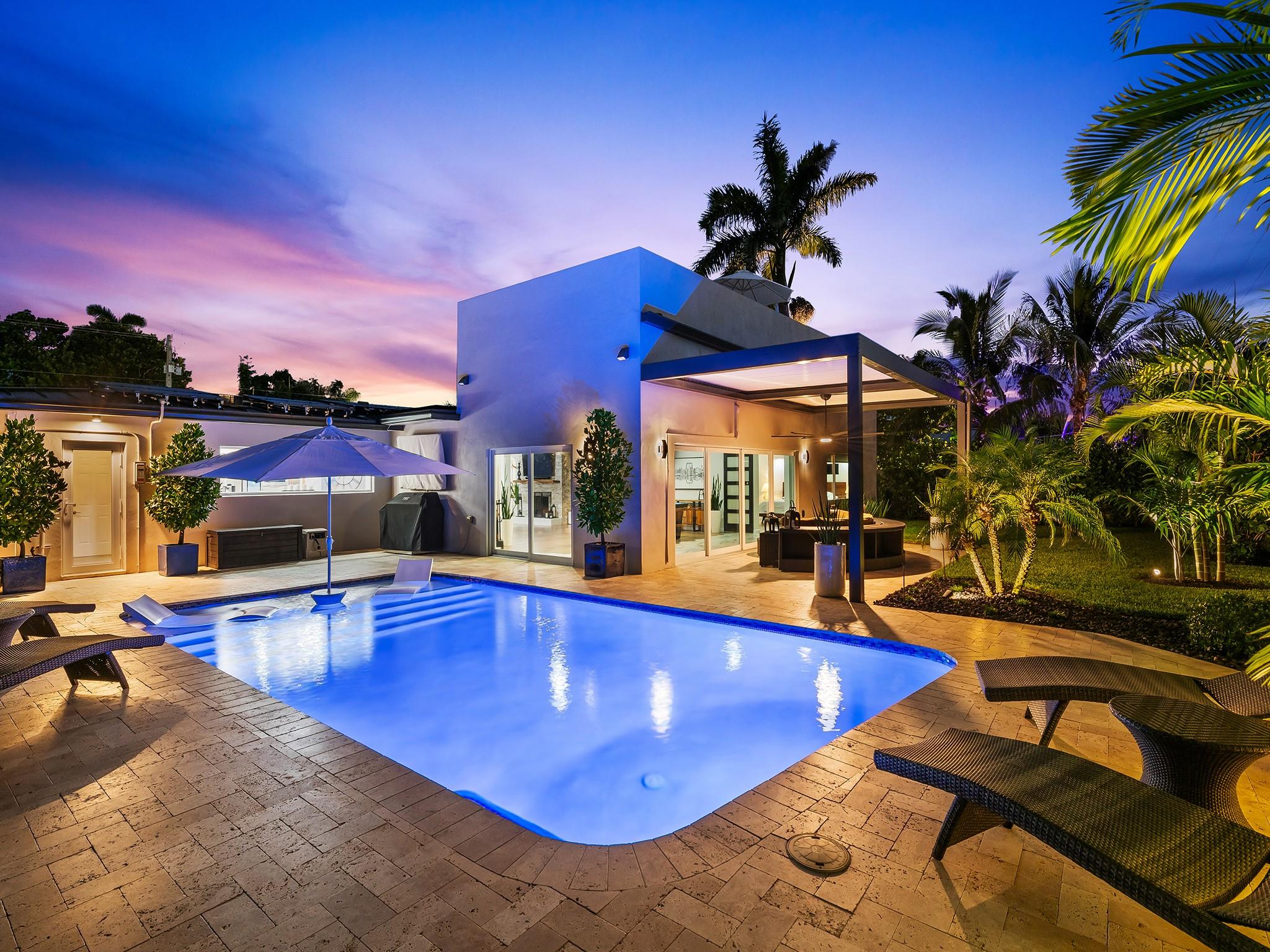 Magnificently reimagined, this home combines modern sophistication with timeless luxury, with the feel of brand-new construction. Sun-drenched interiors flow through an open-concept design, glass stacking doors dissolve the boundary between indoor and outdoor living. Entertain beneath the covered terrace with its louvered electric ceiling, swim in the sparkling saltwater pool—heated or chilled for year-round enjoyment—or retreat to the rooftop terrace for panoramic views of waterfront yachts. The chef’s kitchen is beautifully appointed with top-tier appliances while the serene primary suite offers dual custom closets and tranquil bath. Thoughtful enhancements, including a mosquito misting system, water filtration, and solar panels, elevate everyday living with effortless elegance.