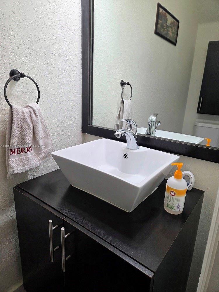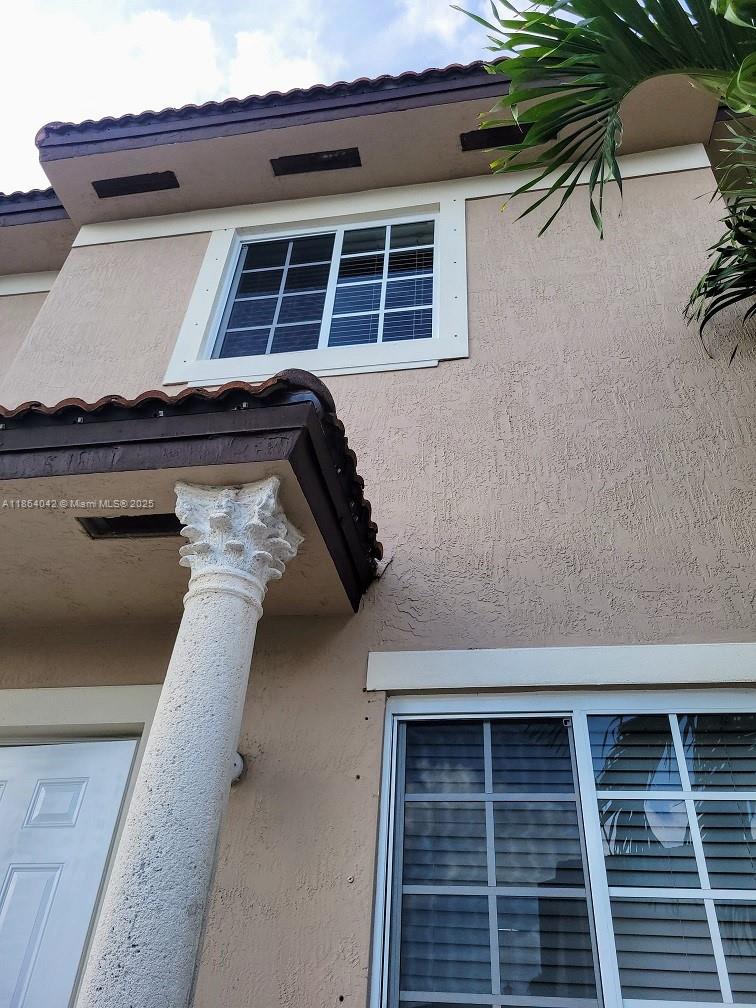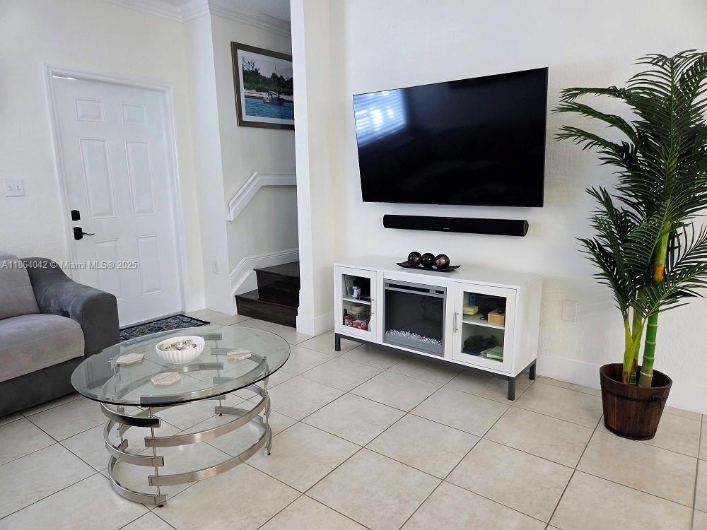 This charming, 2 Bedrooms, 2 1/2 bathrooms corner-unit townhouse offers both privacy and curb appeal in a quiet and children-friendly neighborhood, Cazadores South. It boasts a light beige exterior accented by elegant white trim and topped with brown Spanish tile roofing. New, beautiful hurricane-proof windows and doors installed, while the corner lot placement means fewer shared walls and more outdoor space. Situated on a tree-lined street with two parking lots and easy access to nearby shops, schools, and parks, this home blends style, convenience, and comfort—ready for its next owner to move in and make it their own. It has a paved and roofed terrace, with some plants giving it a green touch which, together with the mounted outdoor TV, you can enjoy while having a BBQ in the afternoon.
