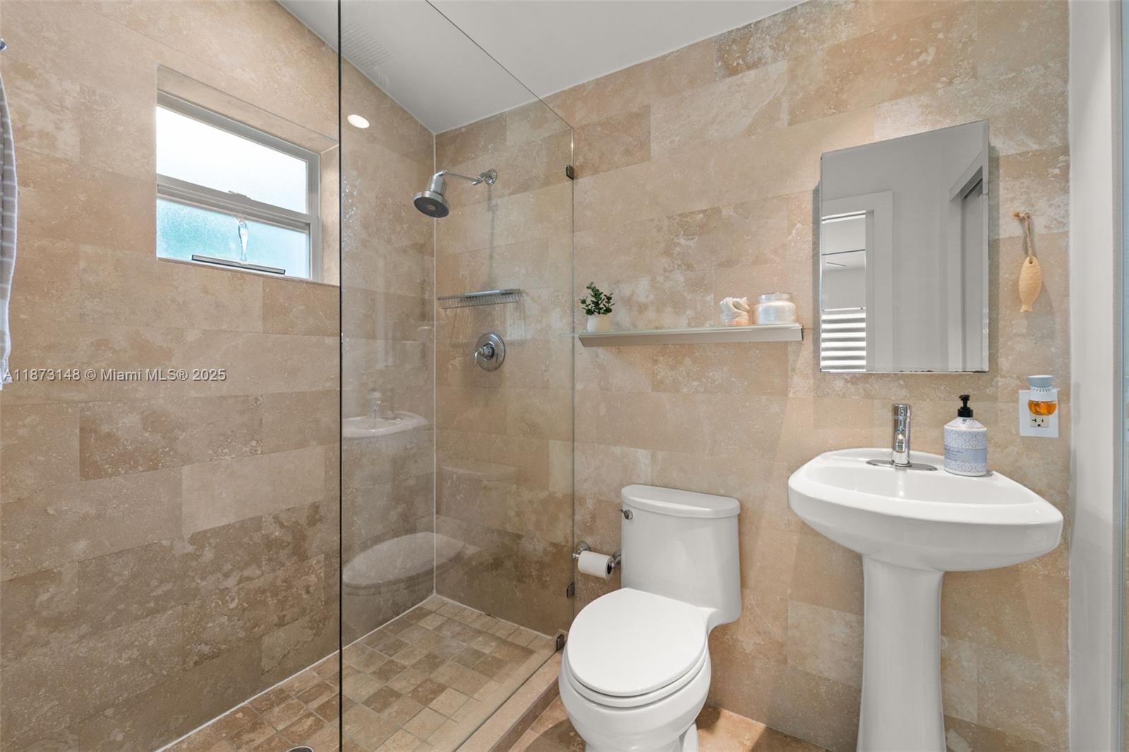 Your Private Oasis in the Heart of Miami Shores. Set on an expansive 9,225 sq ft corner lot, this designer-updated 3-bed, 2-bath residence delivers the kind of outdoor living Miami is known for. Mature tropical landscaping, a Gunite pool with and sun shelf, and complete privacy fencing turn the property into a resort-style sanctuary. The upgraded kitchen has quartz countertops, stainless steel appliances, and a smart washer/dryer. A full-home generator, new privacy fence, and a brand-new Trane HVAC system with Nest controls ensure comfort and security year-round. Perfect for both quiet relaxation and memorable entertaining, this home offers a lifestyle that is increasingly hard to find at this price point in Miami Shores.