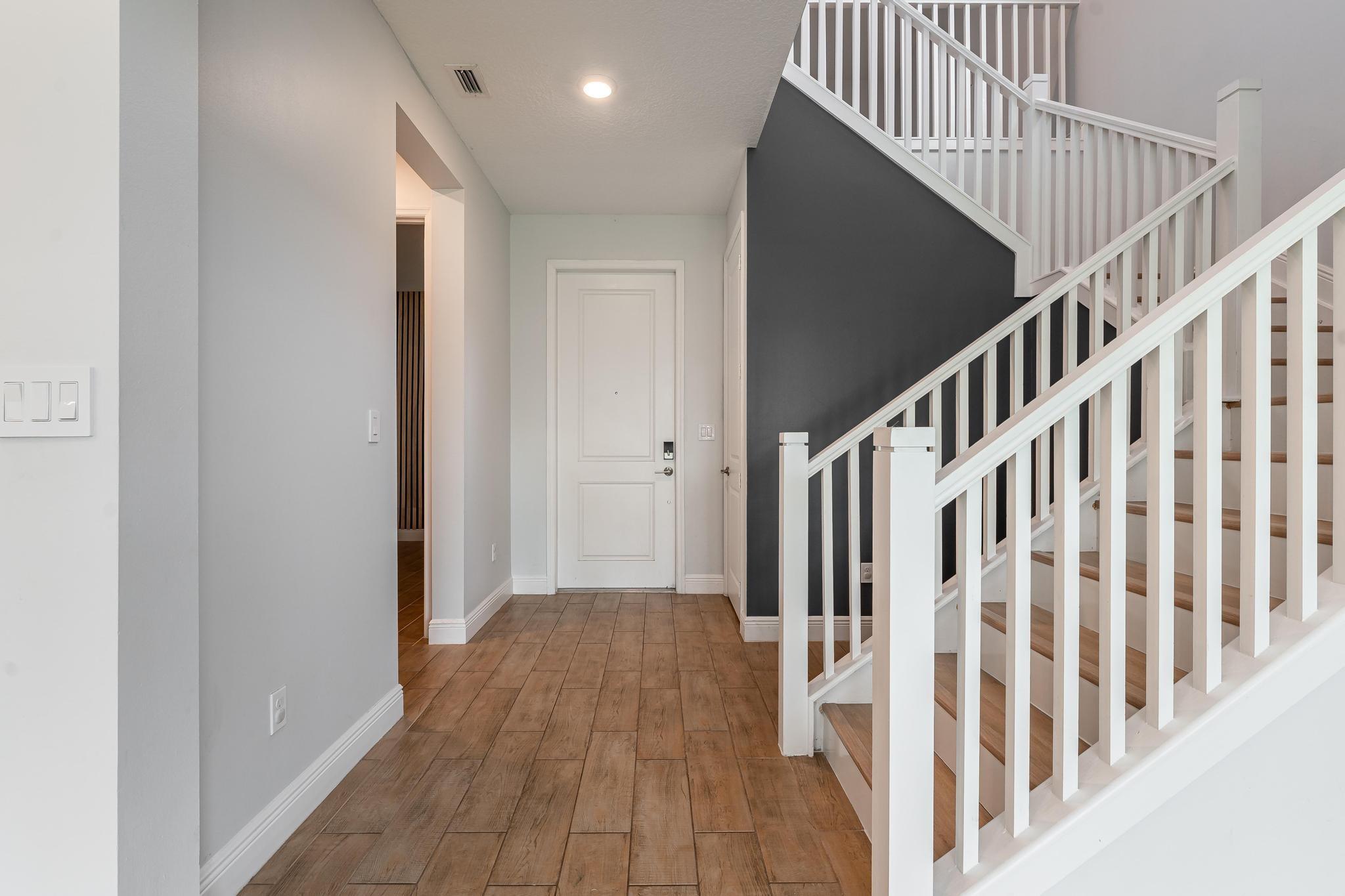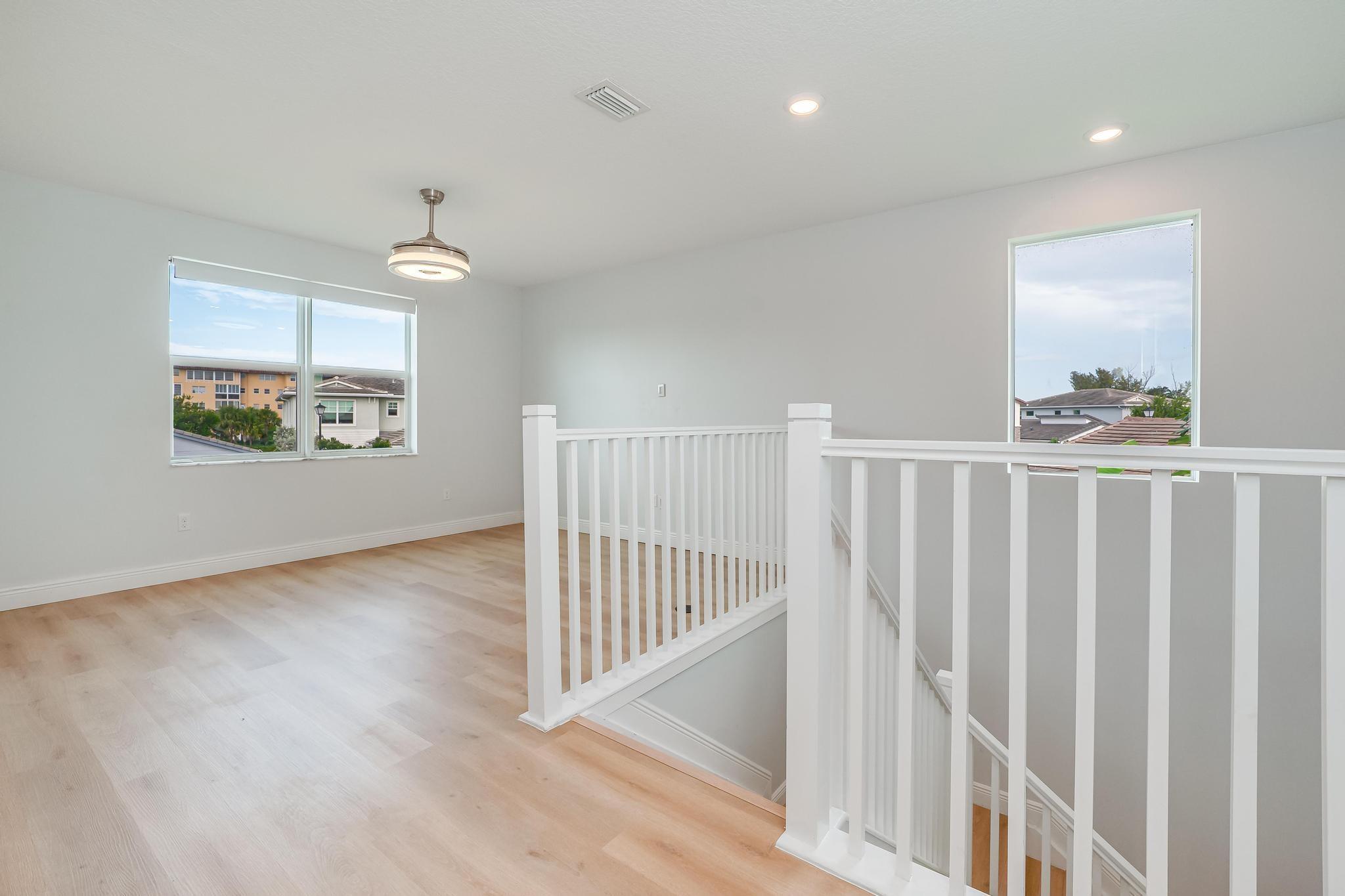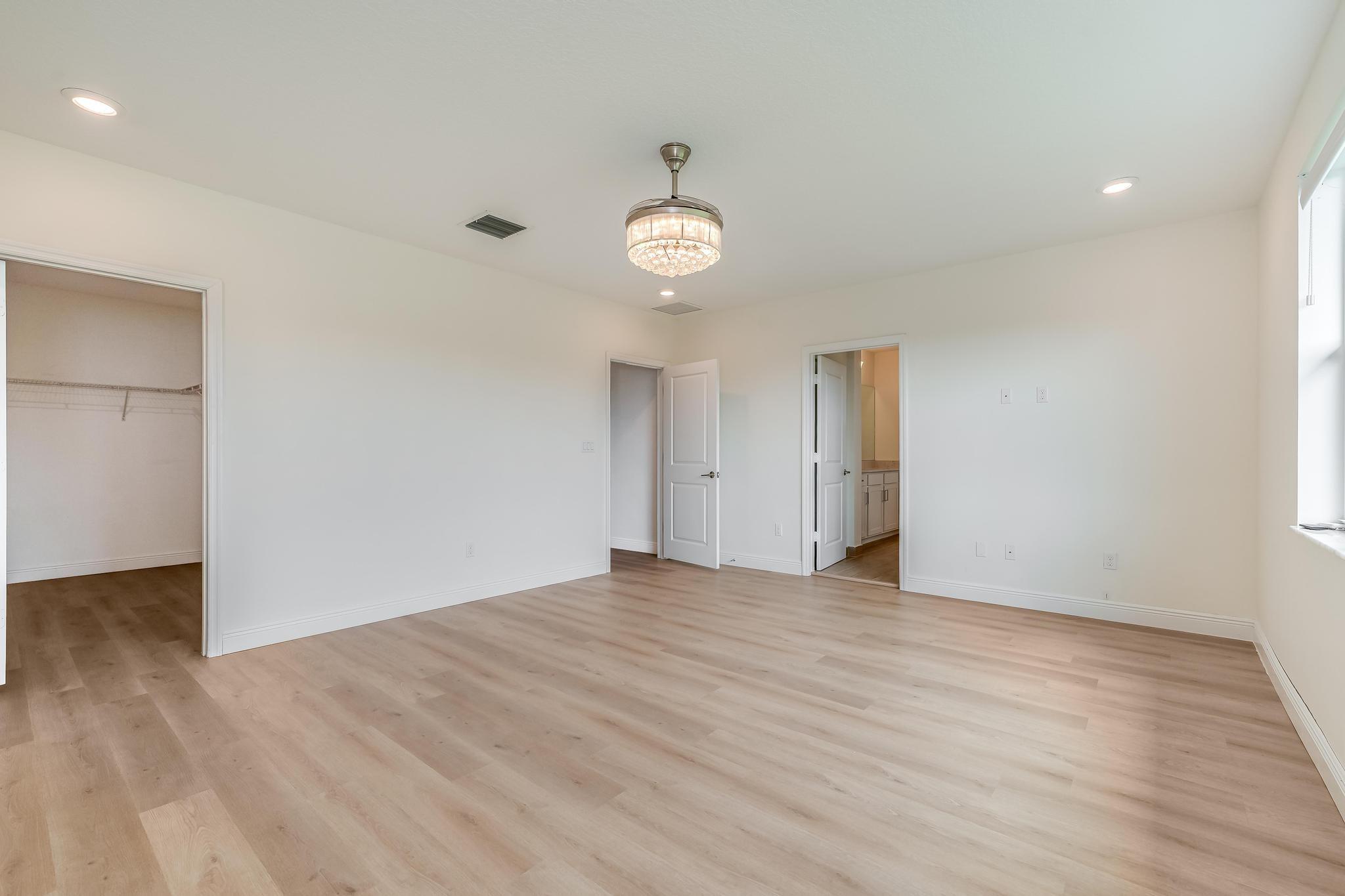 Rare "Rioja" Model w/Ground Level Bedroom & Full Bath is One of the Most Desirable Floorplans on an XL Lot in Gated, Pet-Friendly Veleiros. Covered entry opens to foyer & 1st floor bedroom suite, then onto separate dining & great room. Upgraded Open-plan Kitchen feat. GE Stainless Steel Appliance Suite incl. Wall Convection Oven & Microwave, Cooktop & Hood, Quartz Counters & Island, Pantry. Covered paver patio opens to sizable yard. Lawnmowing included. Upstairs, owner suite w/master bath feat. dual sinks & step-in shower+walk-in closet/dressing rm. Bright loft perfect for den/home office. Laundry rm & 2 more bedrooms + guest bath on 2nd level. Wood-look tile in living area, LVP in bedrooms. Impact windows & sliders, window treatments/lights, SmartHome. 2-car garage. Clubhouse/Pool.