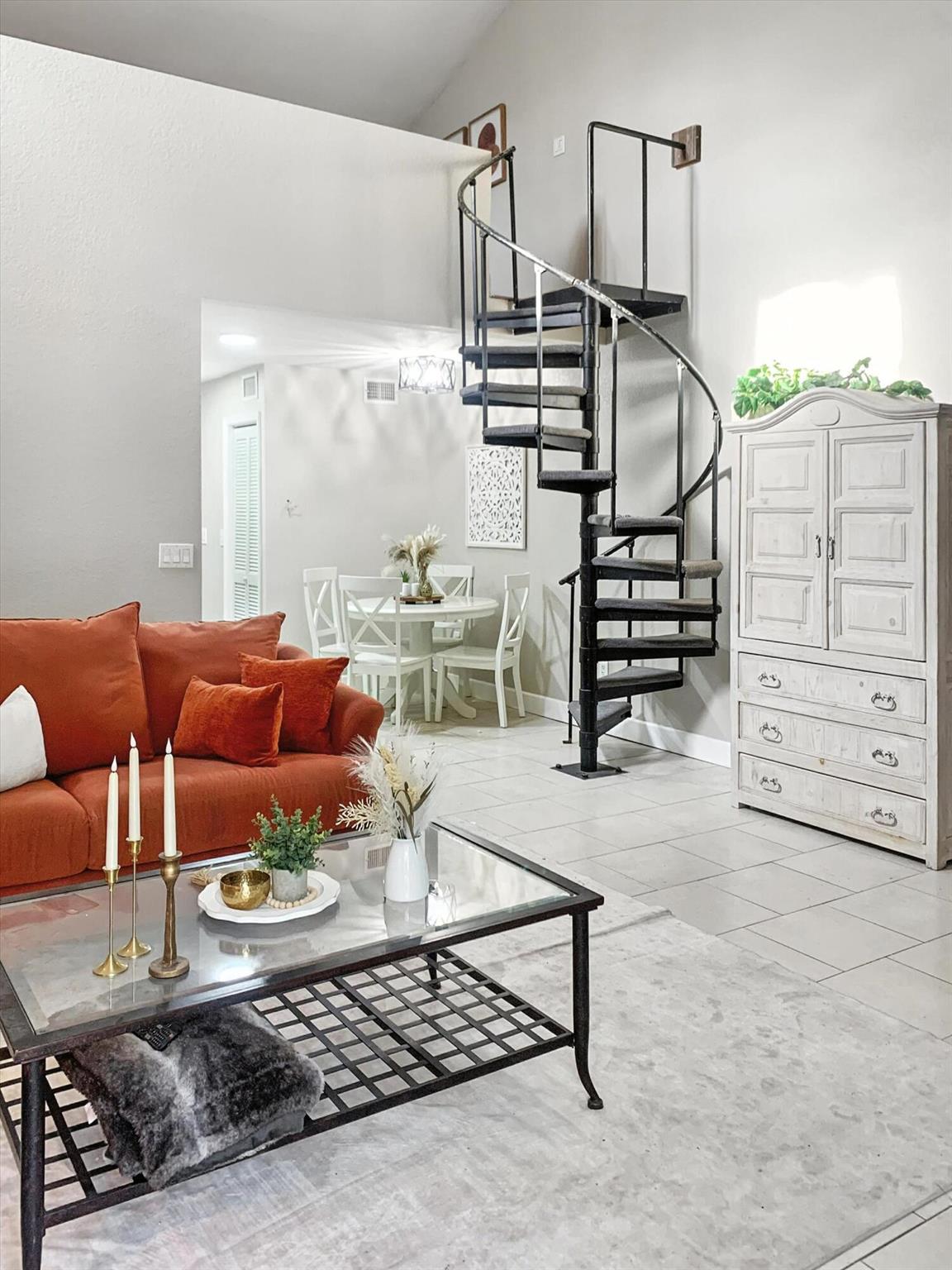 • Интерьер:Attic, BreakfastBar, BreakfastArea, ClosetCabinetry, DualSinks, EntranceFoyer, EatInKitchen, FrenchDoorsAtriumDoors, HighCeilings, KitchenDiningCombo, PullDownAtticStairs, SplitBedrooms, SeparateShower, WalkInClosets, Workshop