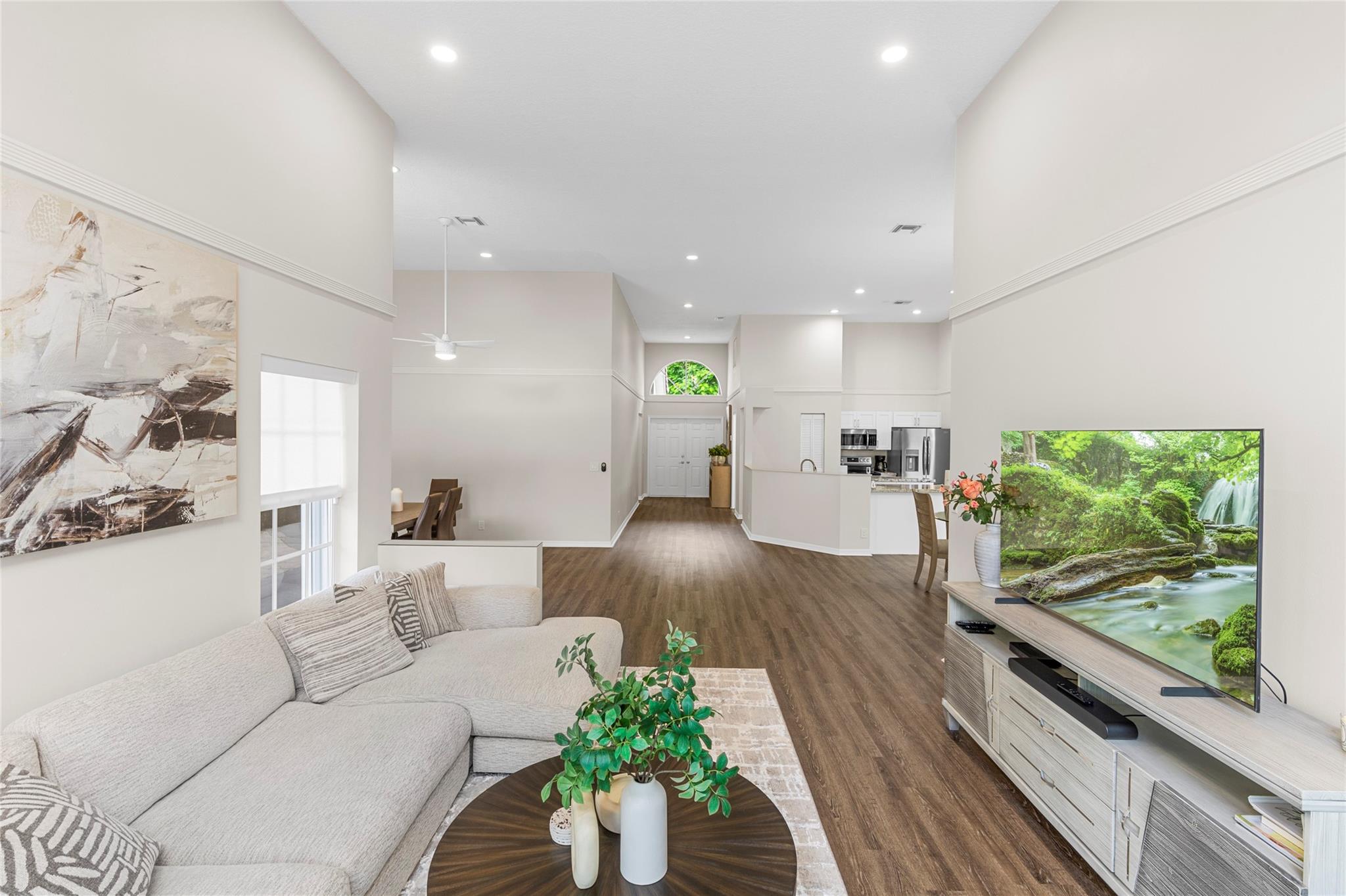 You’ll love this professionally renovated home in Ventura of Mission Bay. Enjoy preparing meals in the all new open air kitchen with granite countertops and tile backsplash stainless steel appliances and beautiful white shaker cabinetry. Discovered a bright interior with fresh paint new flooring. The primary suite offers dual walk in closets in suite bathroom with beautiful, soaking tub and separate shower. Guest bathrooms are all updated as well Guest bedrooms offer large closets and ceiling fans. Backyard offers, sparkling private pool, mature landscaping and ez to secure hurricane shutters. Low Maintenance fee includes gated community lawn care, access to Mission Bay clubhouse, which offers, large pool, private event rooms and gym membership.
