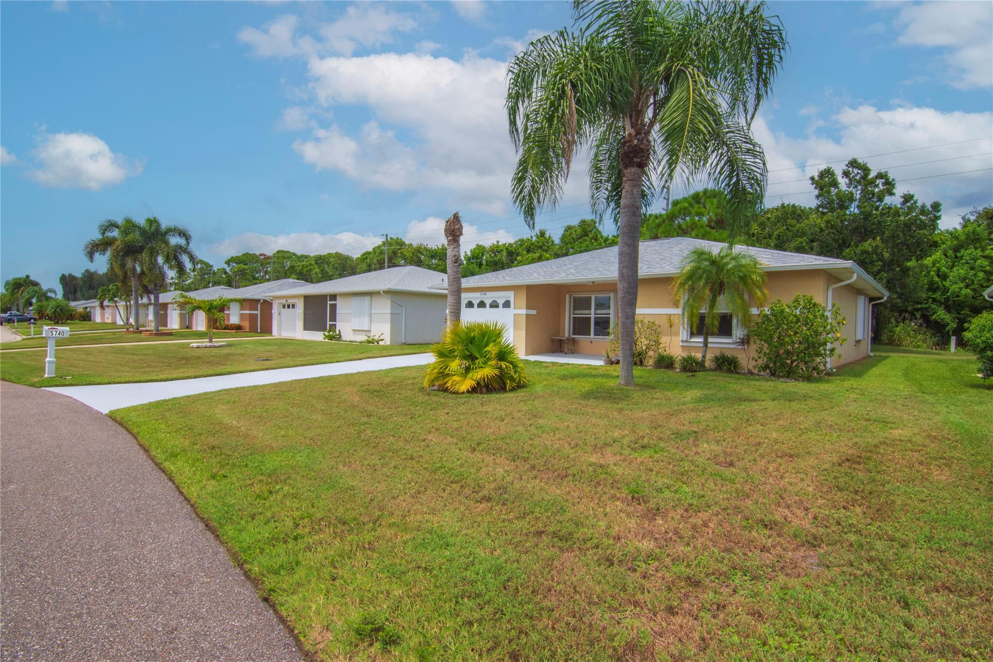 Welcome home to your Beautiful 2BR/2BA with a 1 car garage in PALM GROVE Premier 55+ Community! Enjoy easy, comfort living. Step right outside to your private patio—perfect for relaxing or entertaining. With a year old roof 2024, HVAC 2017, and hurricane shutters. Low HOA: $351/month includes Lawncare, Basic Cable, Wi-Fi, and Water. This house is ready to be called home.