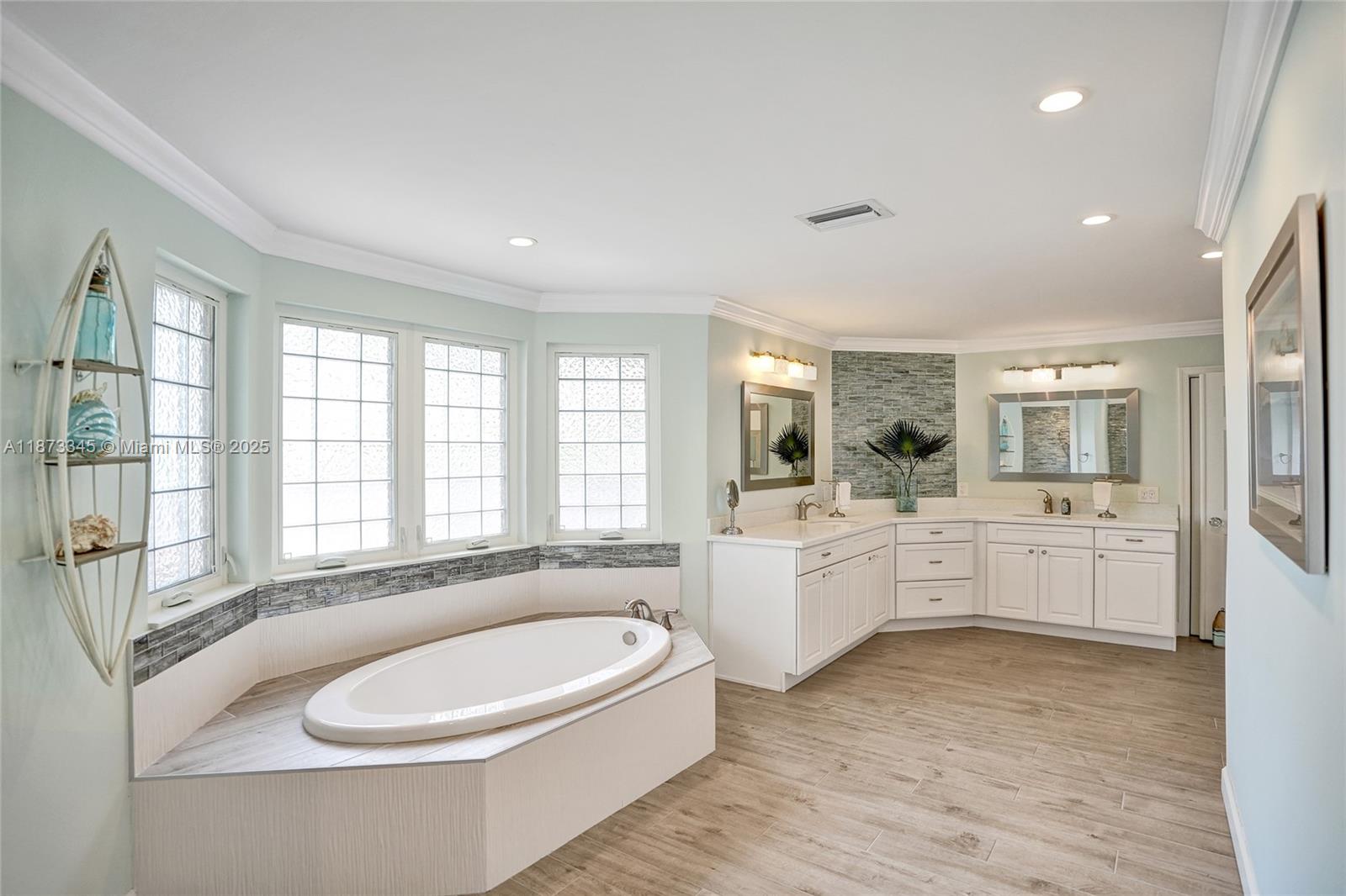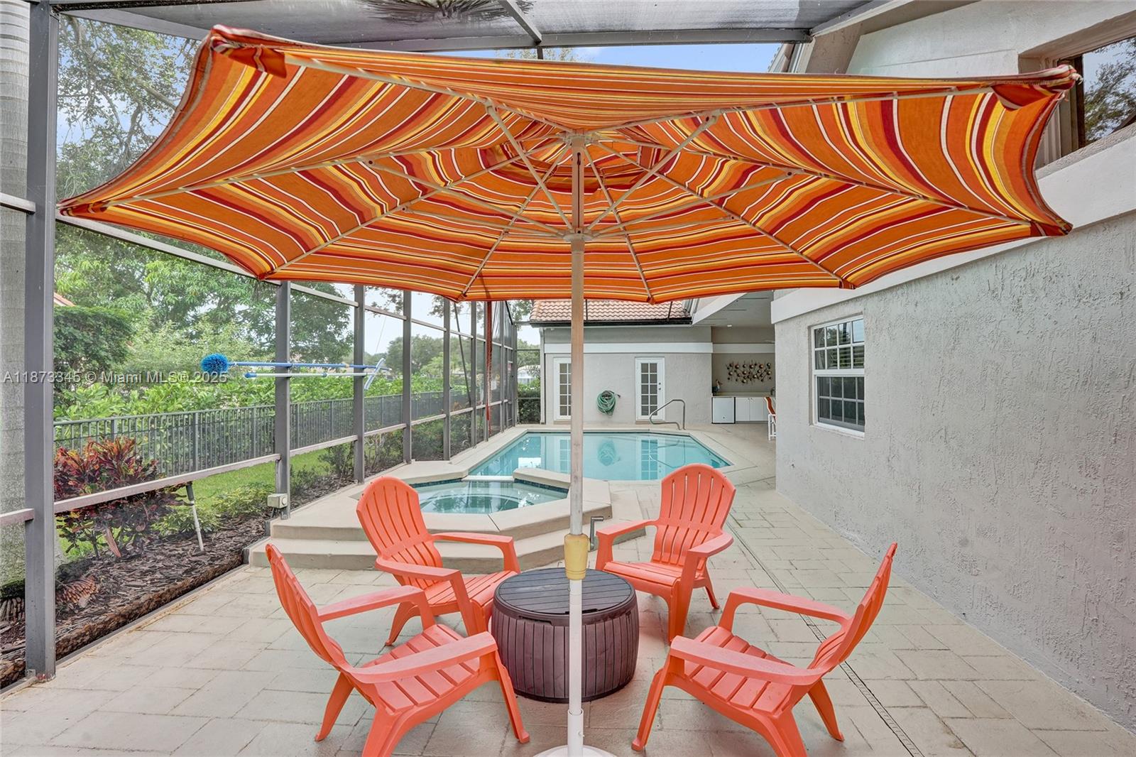 WOW! OUTSTANDING BUY ON THIS RENOVATED HOME IN THE PREMIER “ESTATES” SECTION OF EAGLE TRACE WITH OVER 3,500 SQ FT LIVING AREA! NEW 2023 HIGH END GOURMET ISLAND KITCHEN WITH WHITE/BURLAP TWO TONE CABINETS, “CAMBRIA” QUARTZ COUNTERS, STAINLESS-STEEL APPLIANCES, AND A FULL-SIZED BAY WINDOW BREAKFAST ROOM! 2021 LUXURY BATHS! UPGRADED PORCELAIN TILE AND HARD WOOD FLOORING! HURRICANE IMPACT WINDOWS AND CABANA BATH DOORS! INCREDIBLE UPDATED POOL/PATIO AREA WITH RAISED WATERFALL JACUZZI AND POOL WITH A SEPARATE CABANA BATH AND OUTDOOR KITCHEN! CROWN MOLDING AND CUSTOM CASEMENT FRAME DOOR MOLDINGS WITH ROSETTES AND PLINTH BLOCKS THROUGHOUT! ABSOLUTELY PERFECT MOVE-IN CONDITION! LIGHT, BRIGHT, AND READY TO GO!