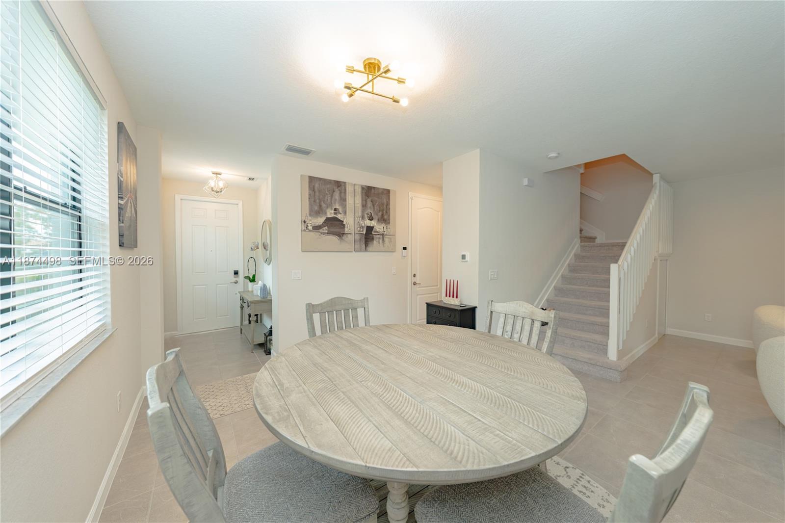 It's your time to own this rarely available corner unit in the newest building in the gated Cambria Parc! Welcome to this spacious 2,008 sq. ft. corner townhome, offering 4 bedrooms and 3.5 bathrooms and WHOLE HOUSE IMPACT WINDOWS AND DOORS (including garage), offering full storm protection and lower HOI premiums. Built in 2020 with durable CBS construction and a classic Spanish-style concrete tile roof, this residence combines modern finishes with thoughtful design. Inside, you’ll find a comfortable floor plan with 18" x 18" ceramic tile flooring on the main level and in all bathrooms. The primary suite impresses with soaring 13' ceilings, a large walk-in closet, dual sinks, a separate shower, linen closet, and a relaxing soaking tub. Upstairs includes two additional bathrooms and a laundry closet. This home is equipped with numerous upgrades, including central A/C and heating, an electric water heater, smoke and carbon monoxide detectors, custom under stairs storage, board and batten, and a sound-reducing gypsum underlayment on the 2nd floor. The kitchen features quality stainless steel appliances, including a 25 cu. ft. side-by-side refrigerator, 30" electric range, over-the-range microwave, and a dishwasher. Unlike other units, this corner lot provides extra natural light and a private, paver-extended patio perfect for 2026 outdoor living. Your low HOA fee includes high-speed internet, cable, lawn care, and access to the heated pool, gazebos, and playground.