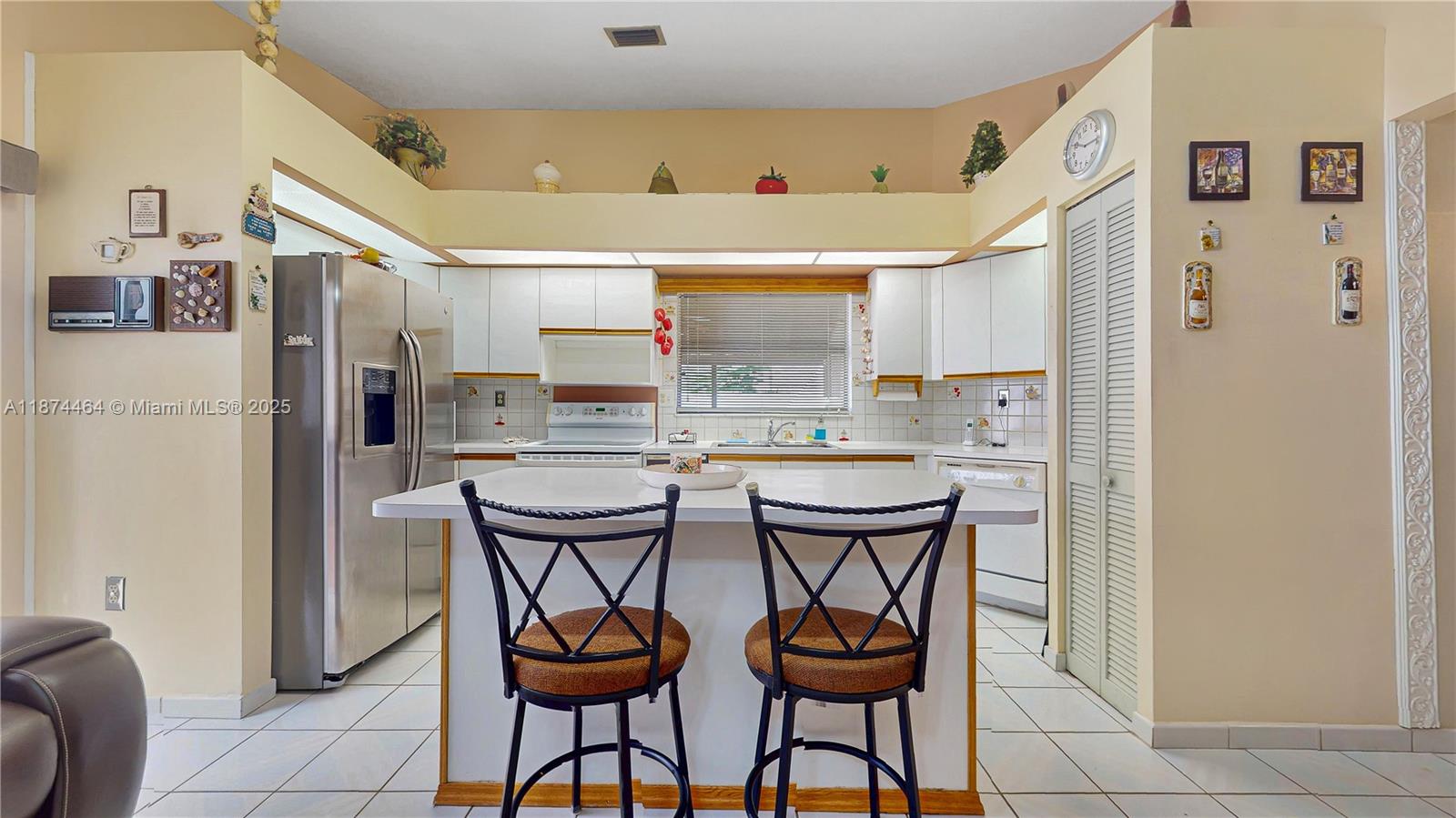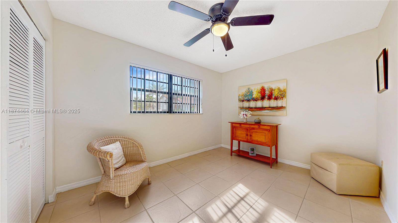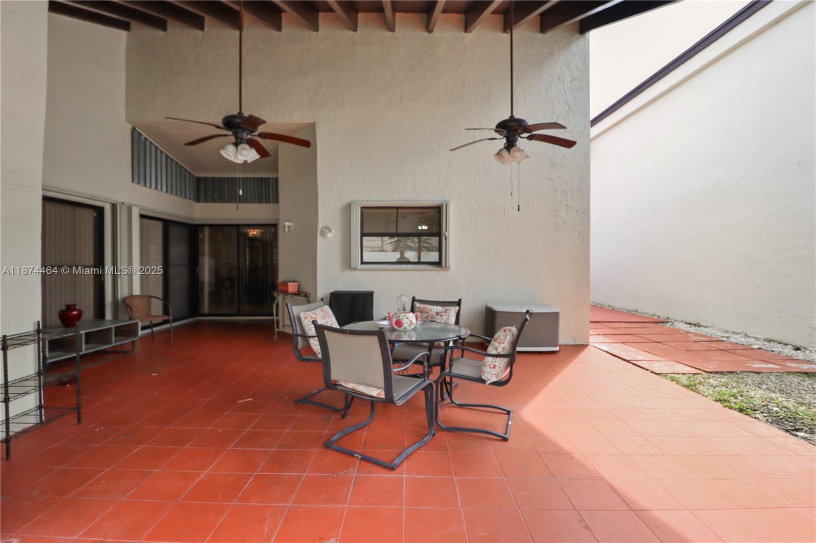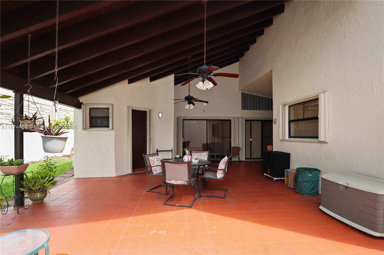 Discover your dream home in this meticulously maintained property, featuring a brand-new roof installed in 2024 for ultimate peace of mind. Designed for comfort and security, this residence boasts a desirable split-bedroom floor plan, ensuring privacy for all occupants. Hurricane shutters provide added protection during storm season, while the home's interior is bathed in natural light thanks to strategically placed skylights. The high ceilings and tile flooring throughout create an open, airy atmosphere. Enjoy abundant storage with large closets in every bedroom. Step outside to a huge, covered patio, perfect for entertaining or relaxing, all within the security of a gated community.