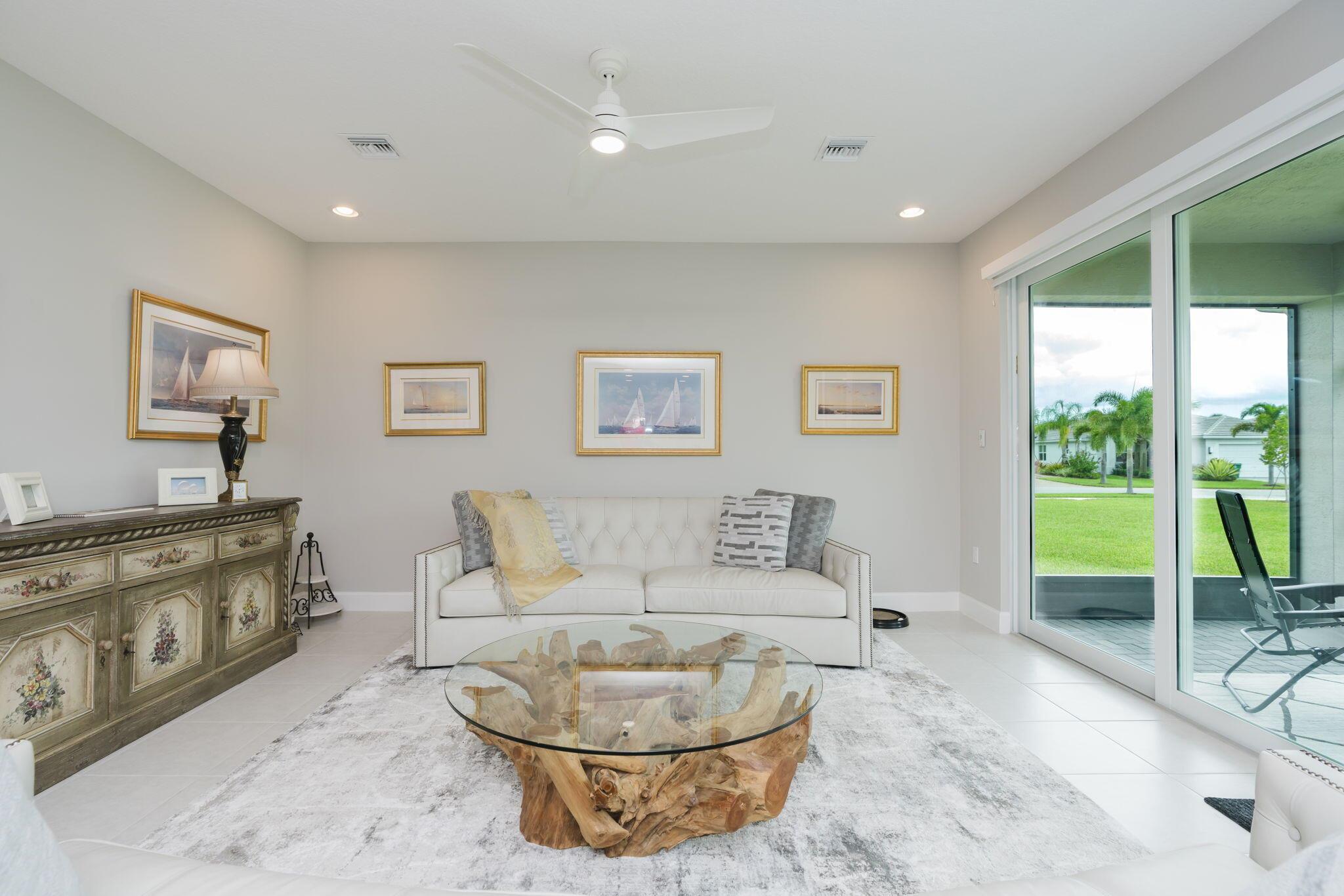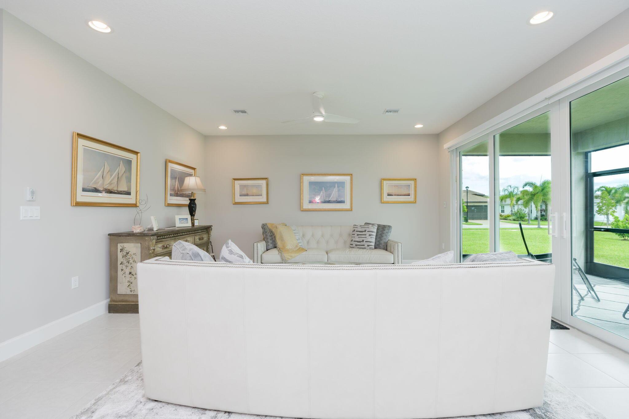 Beautiful ''Sierra'' model in Valencia Grove at Riverland! This 3 bed, 2 bath home includes a flex room perfect for a den or office. Situated on a corner lot with extra green space and a partial lake view. Located in a premier 55+ active community offering resort-style amenities: onsite cafe/bar, resort pool, card rooms, sports lounge, grand social hall, and an incredible sports center with tennis, pickleball, bocce, and a state-of-the-art arts & culture center. Interior features include dark wood cabinets, granite countertops, 18'' tile throughout, and all impact windows and doors. The primary suite offers dual vanities, large walk-in closet, and walk-in shower. Close to dining, shopping, golf, I-95, and Cleveland Clinic.