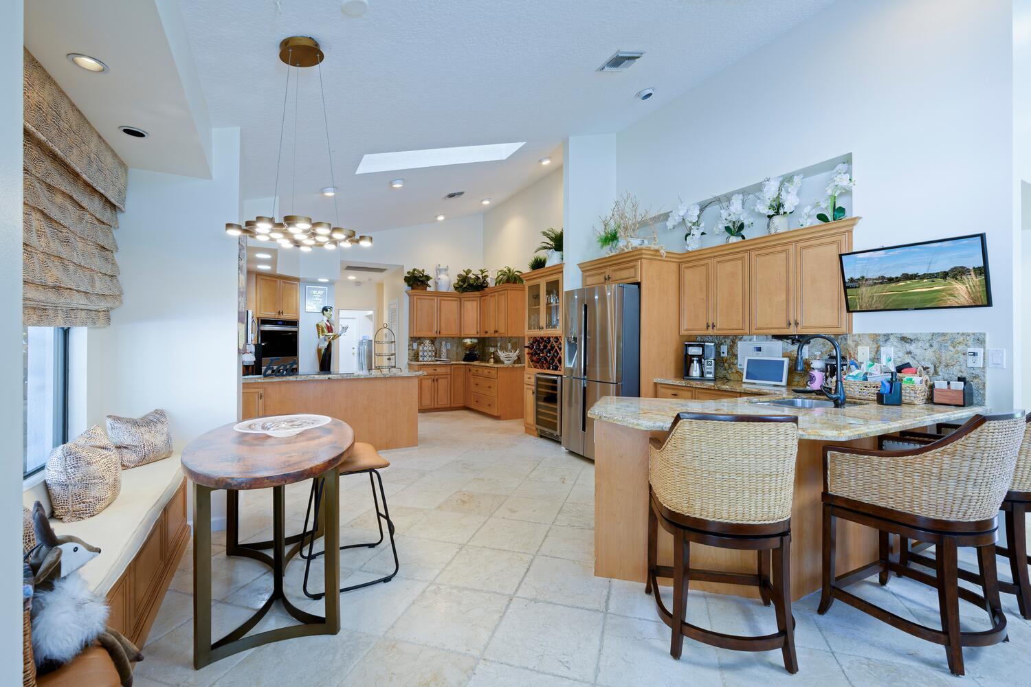 Discover luxury living in the heart of PGA National's prestigious Marlwood. Perfectly situated on the 13th hole of The Match Course, this elegant 5-bedroom, 3 full bath 2 half bath estate (including a private casita) blends timeless design with resort-style amenities offering the ultimate in South Florida living.The main residence features 4 bedrooms, 2 full bath and 2 half baths, with a thoughtfully designed layout ideal for entertaining. A custom wood front door with glass accents welcomes you into marble-clad living spaces, a sunken living room with sliders to the pool, custom wall coverings, designer lighting, recessed lighting, and skylights. A tranquil water feature and artful details, including sculptures that convey, enhance the home's serene ambiance.