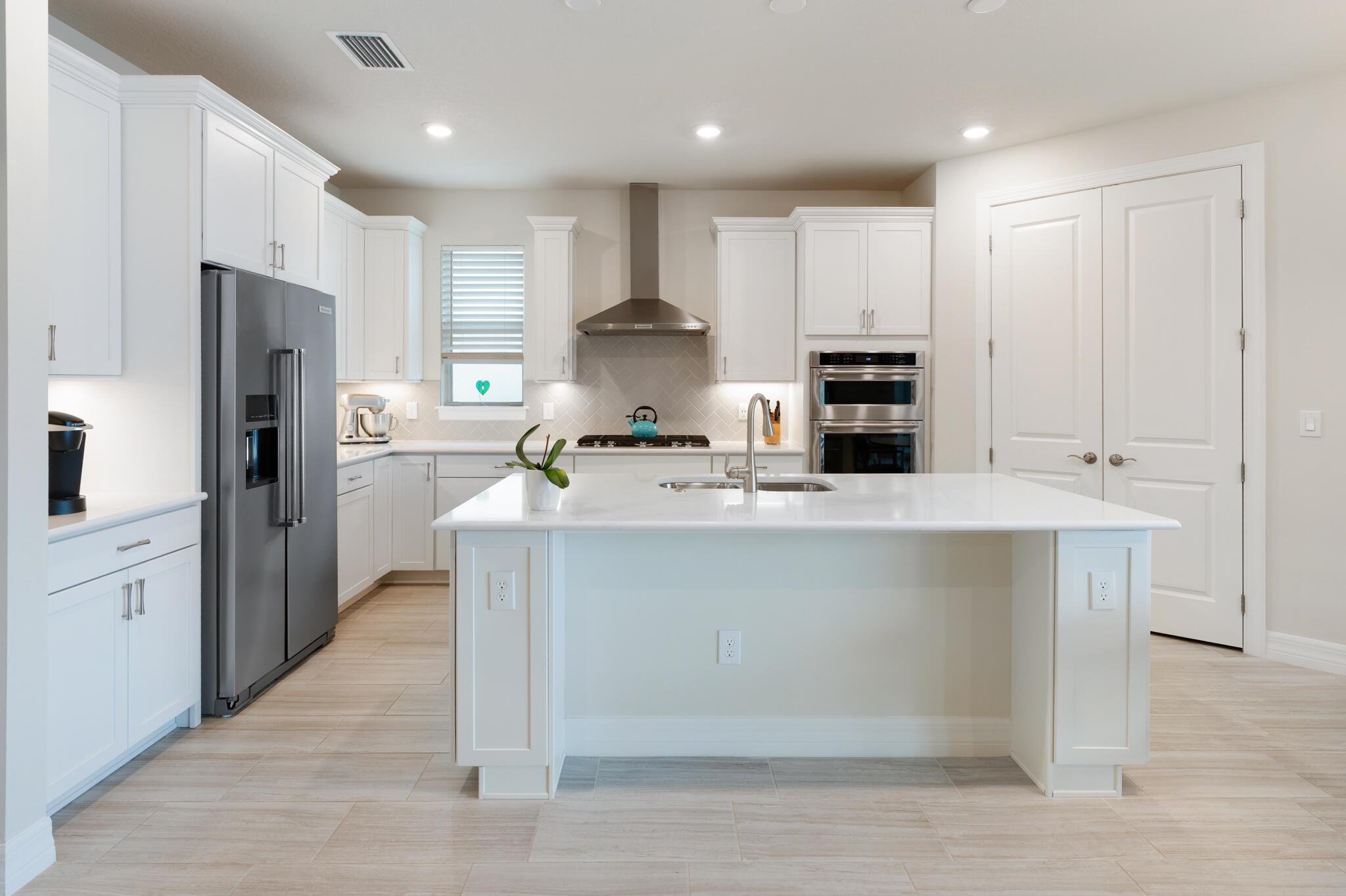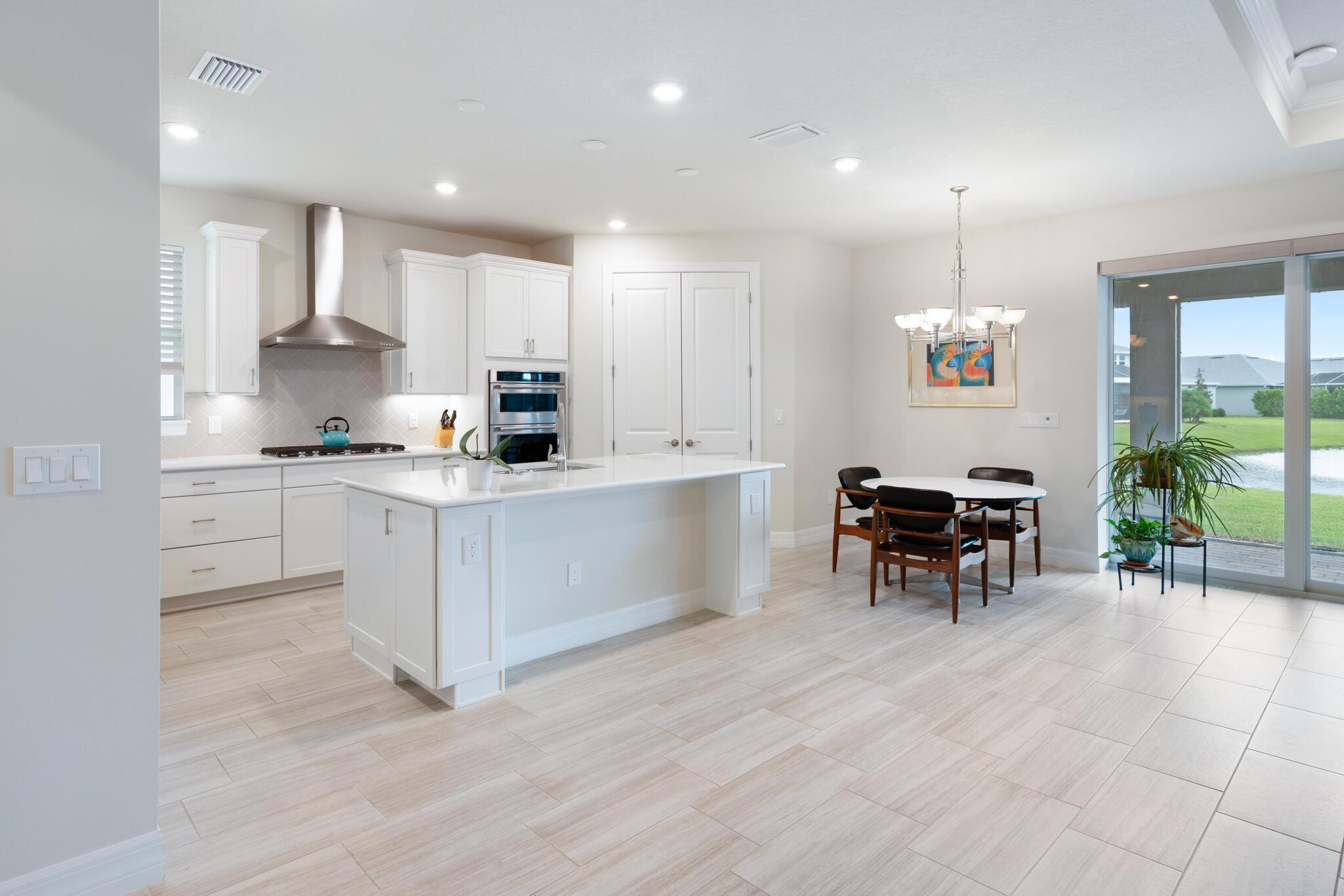 REDUCED $30K Stunning 3 bedroom + den, 3 bath home with 3-car garage in the sought-after gated community of Heron Preserve at Tradition. Enjoy serene lake views from the full-view screened lanai. This home features stylish wood look tile flooring throughout, impact windows & doors, pocketing sliders that disappear when opened and a gourmet kitchen with high end KitchenAid appliances, oversized walk-in pantry, and elegant design elements. Neutral tones and high-end finishes. The primary suite offers custom closet systems for exceptional storage and style. The versatile den has double doors for privacy, while the custom built drop zone by the laundry adds excellent storage. The upscale window treatments complete the polished look.