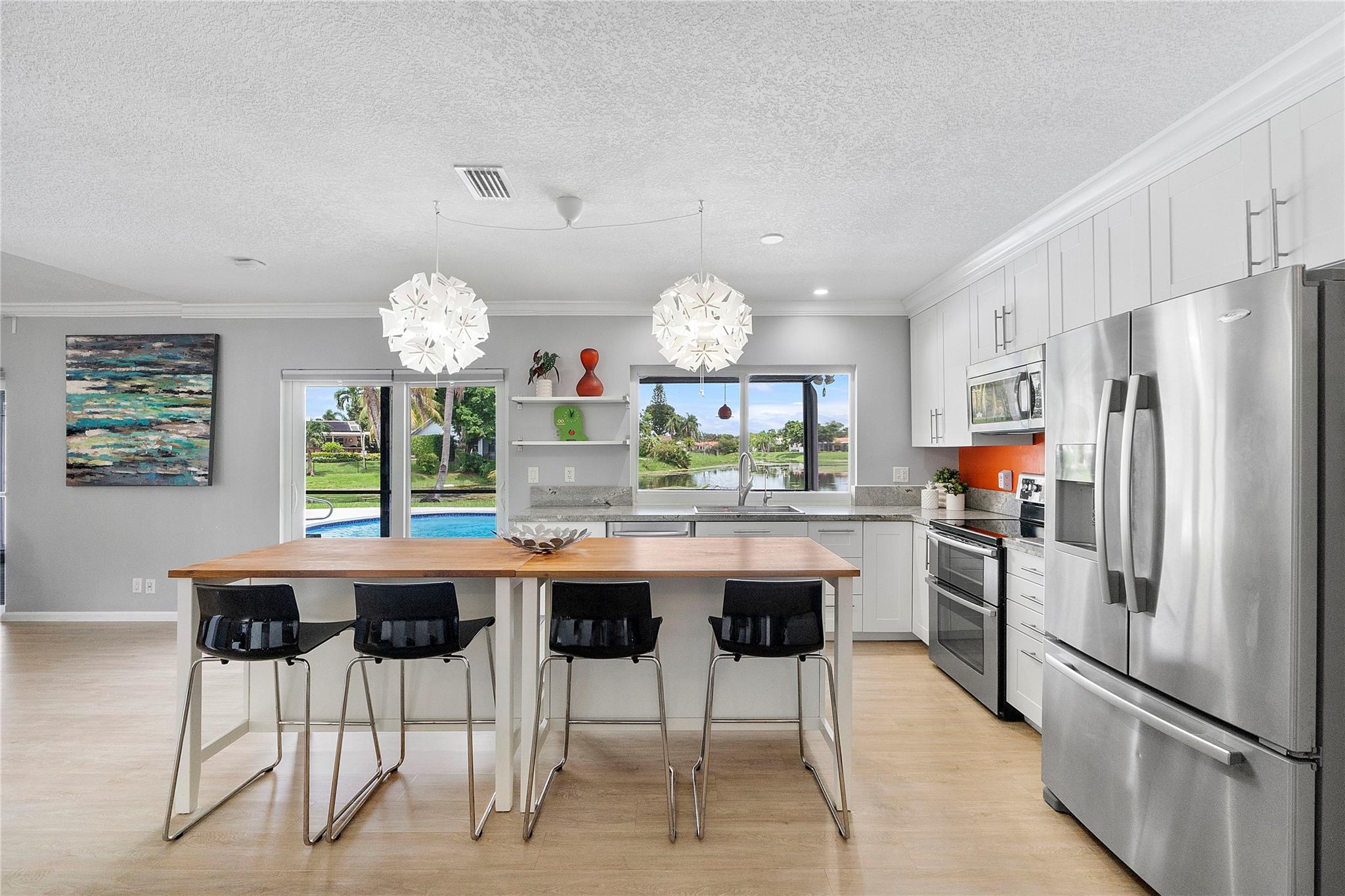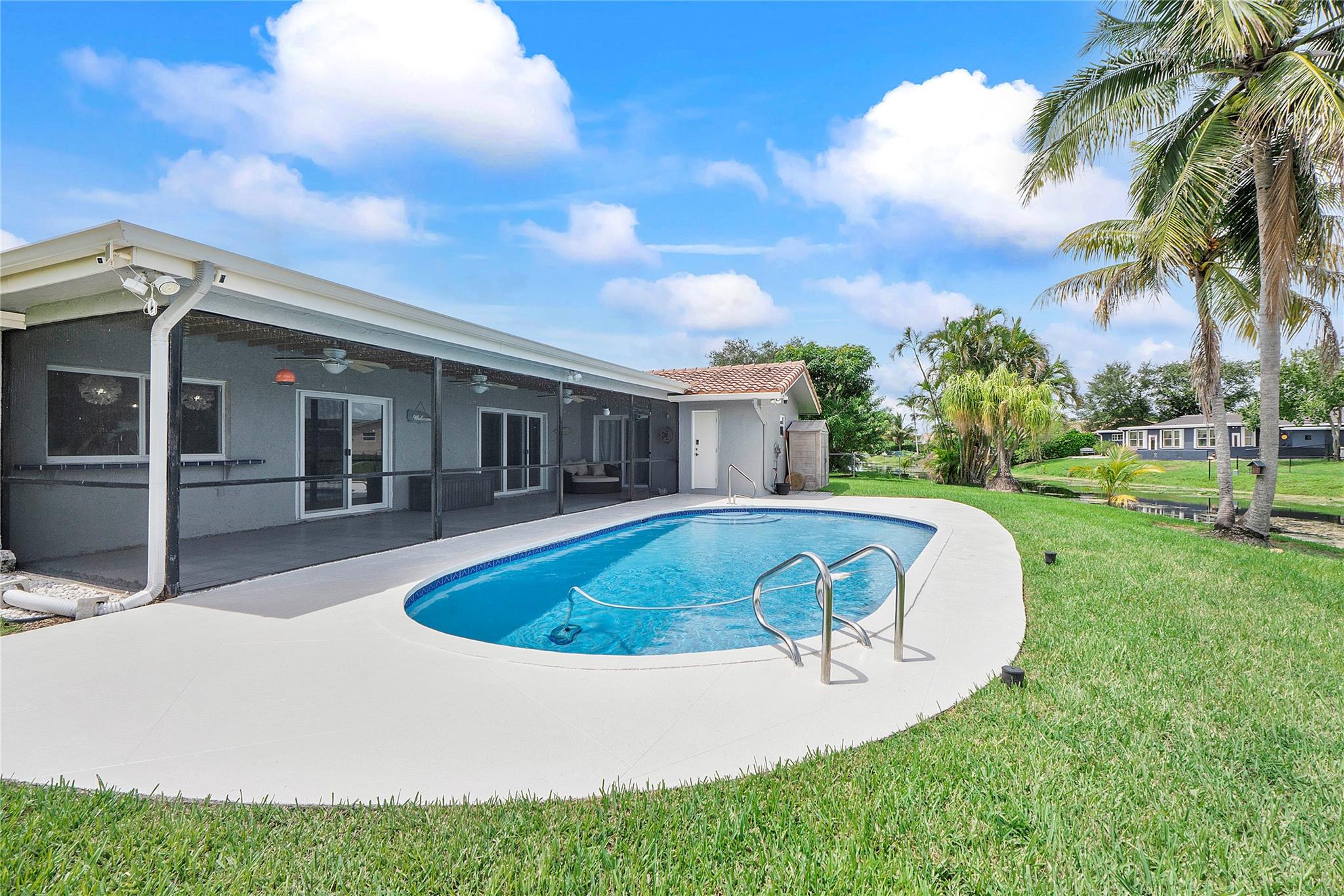 WOW! What an incredible water view in Westchester - west Coral Springs! This private backyard can be your tropical vacation every day! This Remodeled open concept 3 bed 2 bath home + media/bonus room is move-in ready - just waiting for you. Perfect location on a quiet cul-de-sac with NO HOA. Features include: 2012 Roof, 2020 Impact windows/doors, modern kitchen & fixtures, AC system 2018, new exterior electrical panel 2024, new floors 2018, water heater 2023., freshly painted & SO MUCH MORE! Close to: Coral Springs dog park/playground; Incredible Ice, Sawgrass Springs MS, Coral Glades HS, Westchester ES & the Aquatic Center/Fitness Center. This home is perfect for kayaking, canoeing, fishing, floating in your pool & watching wildlife. MUST SEE HOME!