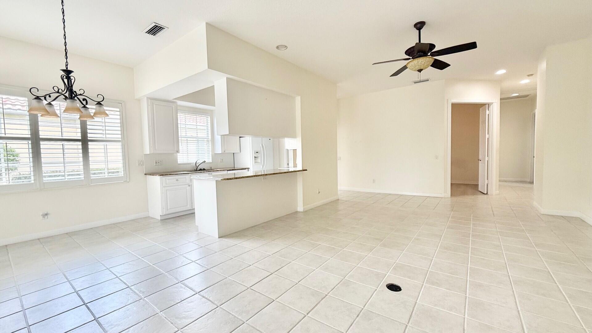 Meticulously maintained 3-bedroom, 2-bath single-family home featuring an open floor plan with 10 ft ceilings and abundant natural light. The spacious glass-enclosed lanai and large screened patio overlook a serene lake, perfect for relaxing or entertaining. Main living areas are tiled, with brand-new luxury vinyl flooring in all bedrooms. The kitchen offers granite countertops and ample storage. Additional highlights include an extra-wide side lot, laundry room with utility tub, accordion storm shutters, central vacuum, and alarm system. Major updates include a new AC (2020) and hot water heater (2021). A move-in ready home with both comfort and peace of mind.
