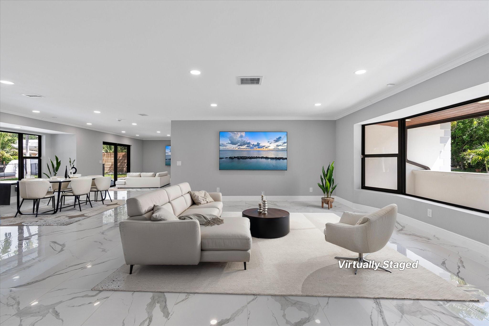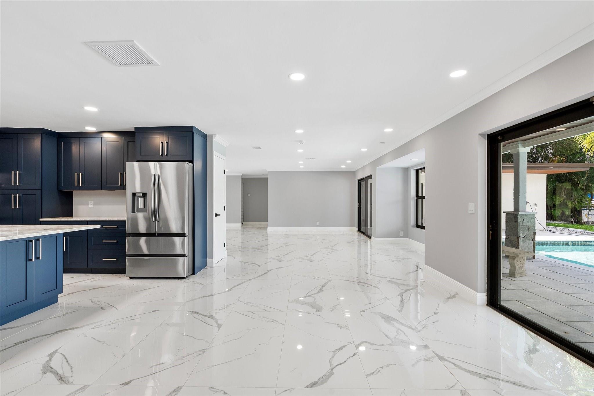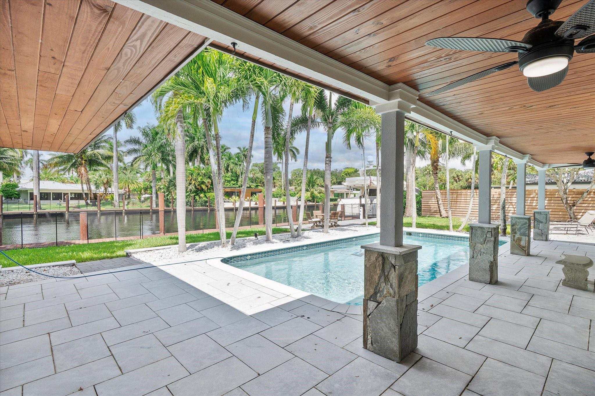 Beautifully renovated waterfront home in the highly coveted Riverland Woods Community. This modern stunner has a 100-foot dock on a deep water canal with no fixed bridges out to the ocean. It also sits on a 13,000 sq ft lot that's at the end of a cul-de-sac with NO HOA! The bright open floor plan features 4 bedrooms, 2 baths, designer closets, tiled floors, and a custom kitchen with top-of-the-line appliances. Note that it also has impact windows and doors, a 2-car garage, and a heated pool. Now is your time to join this boating community in Riverland. Here you'll be minutes to the beach, Las Olas, Dining, Entertainment, the Hardrock, & the Airport.