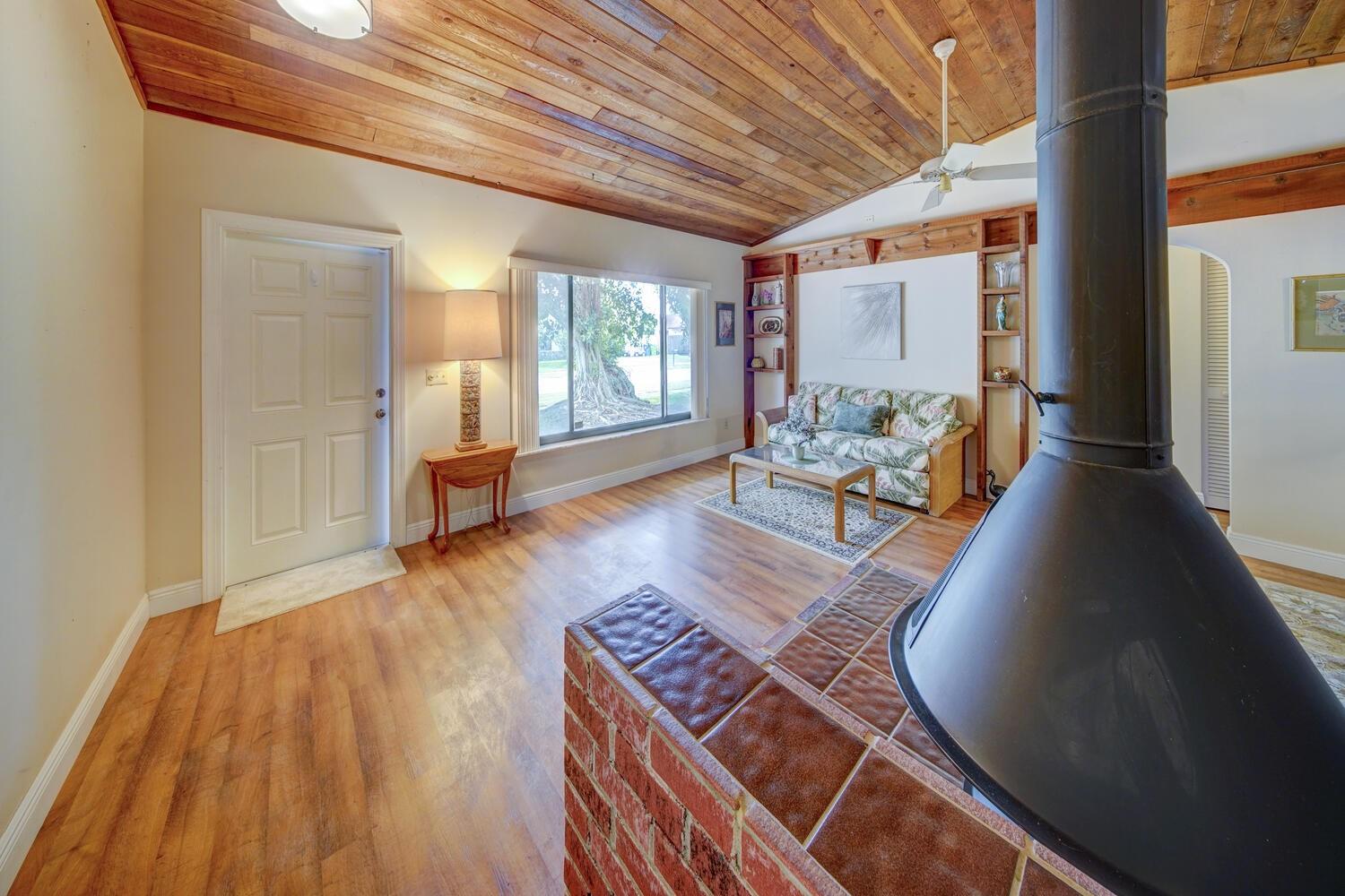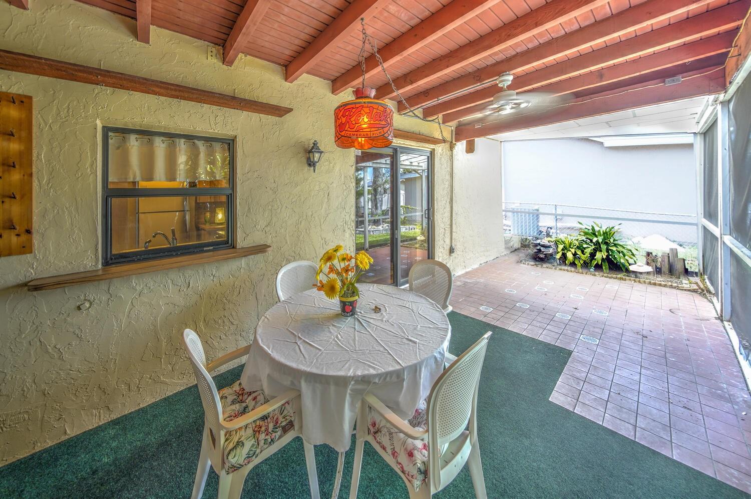 Welcome to this small community of homes with one way in and one way out! This 3-bedroom 2-bath home is situated at the end of a cul-de-sac, perfect for pets. From the moment you enter you are greeted with vaulted ceilings and lots of natural light. The split floorplan is great for privacy. The primary bedroom boasts 2 walk-in closets. The large family room and dining room both have access to the patio. Enjoy the Florida lifestyle on your oversized patio having your morning coffee or entertaining family members for holiday gatherings. Impact windows and doors throughout the home. Located near all major highways, restaurants and shopping.