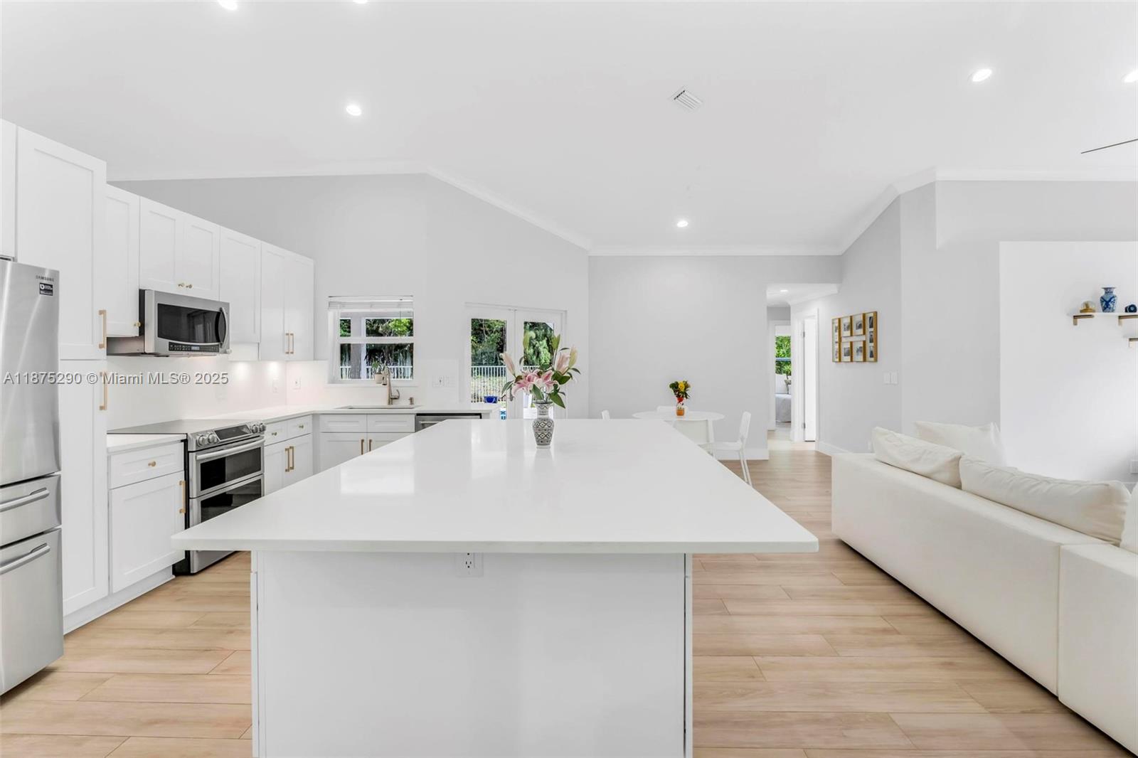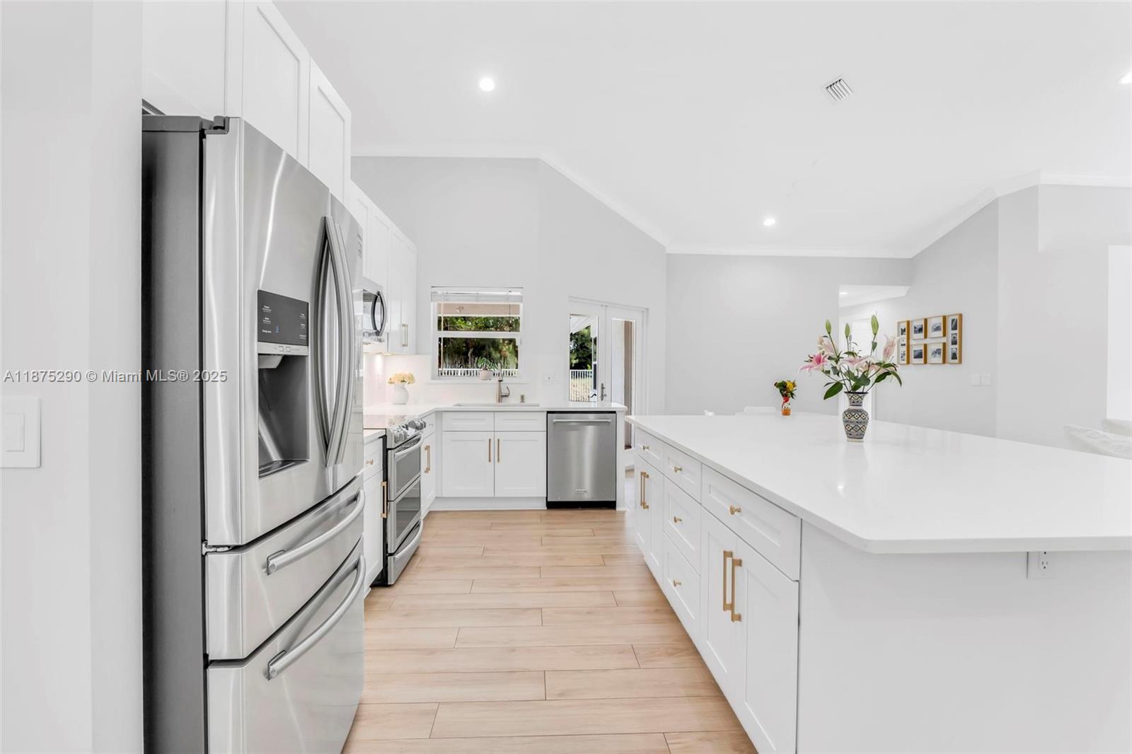 Beautiful 4BR/2.5BA pool home in sought after neighborhood of Fox Run! This home sits on a 9000+ sq. ft. lot with serene water and lush greenery views - no back neighbors! Home features: wood-plank porcelain floors and soaring ceilings that create a bright, open feel. Remodeled kitchen has an expansive island with white quartz countertops, wood cabinets, stainless steel appliances and breakfast nook that opens to the family room - Perfect for gatherings. With a functional layout, PGT impact windows and doors, renovated bathrooms, and a private backyard retreat, this home is truly Move-In Ready!