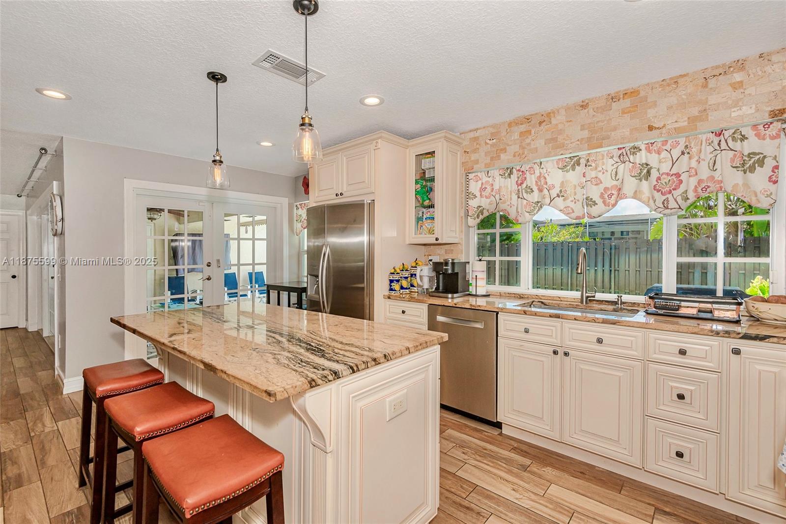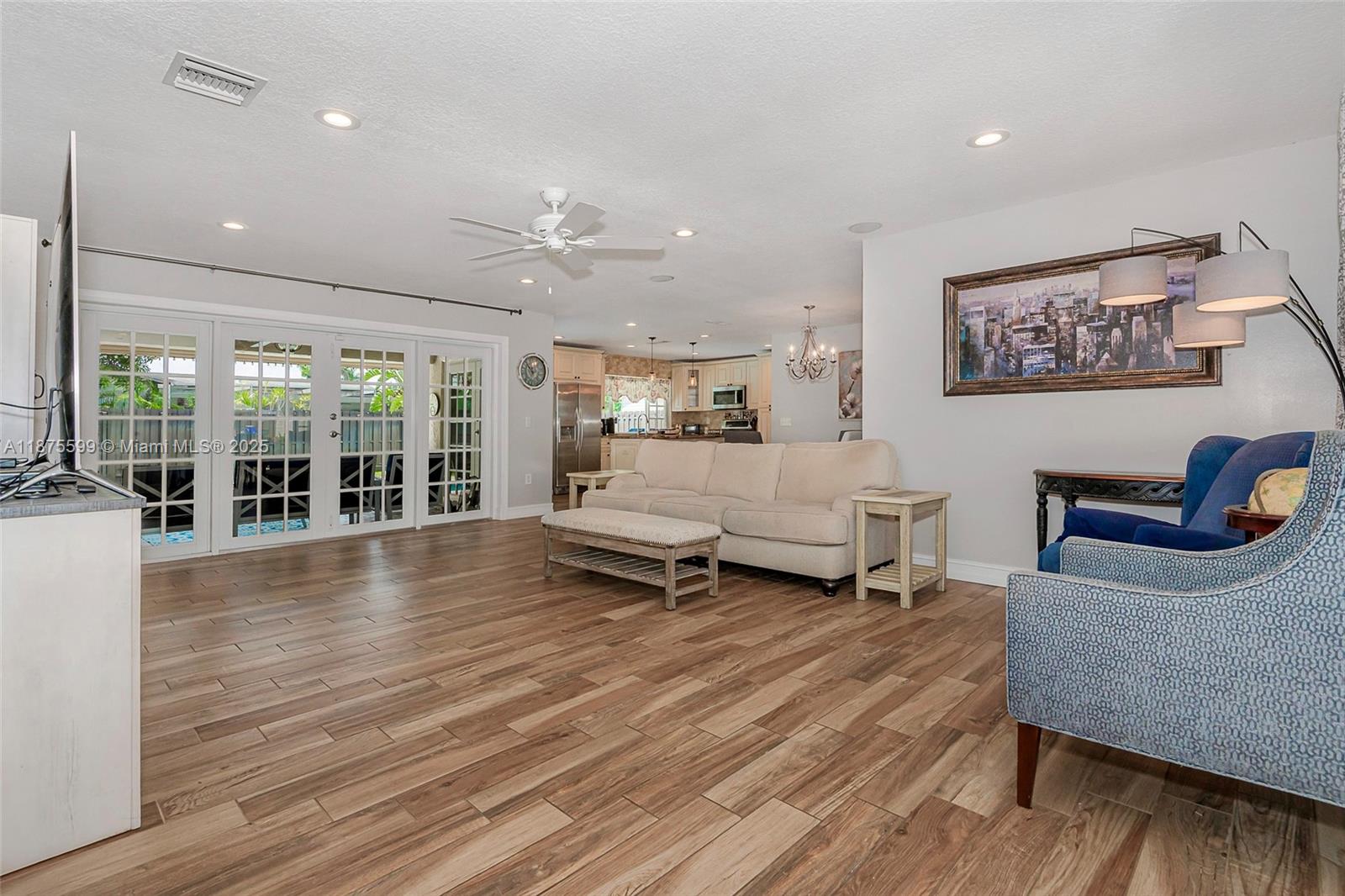 This fully remodeled 3-bedroom, 2-bathroom home is ready for a family to make it their forever home. Designed for comfort and entertaining, it’s perfect for hosting family gatherings, barbecues, and holiday celebrations. Step outside to a covered back patio overlooking the pool area — an ideal spot to enjoy your morning coffee or watch the birds. The stamped concrete driveway provides plenty of parking, while ALL IMPACT WINDOWS AND DOORS ensure safety and efficiency. Inside, you’ll find porcelain floors in the living areas and wood-look vinyl in the bedrooms. The home boasts a BRAND NEW ROOF (2025), beautifully remodeled kitchen and bathrooms, a tankless water heater, public sewer.