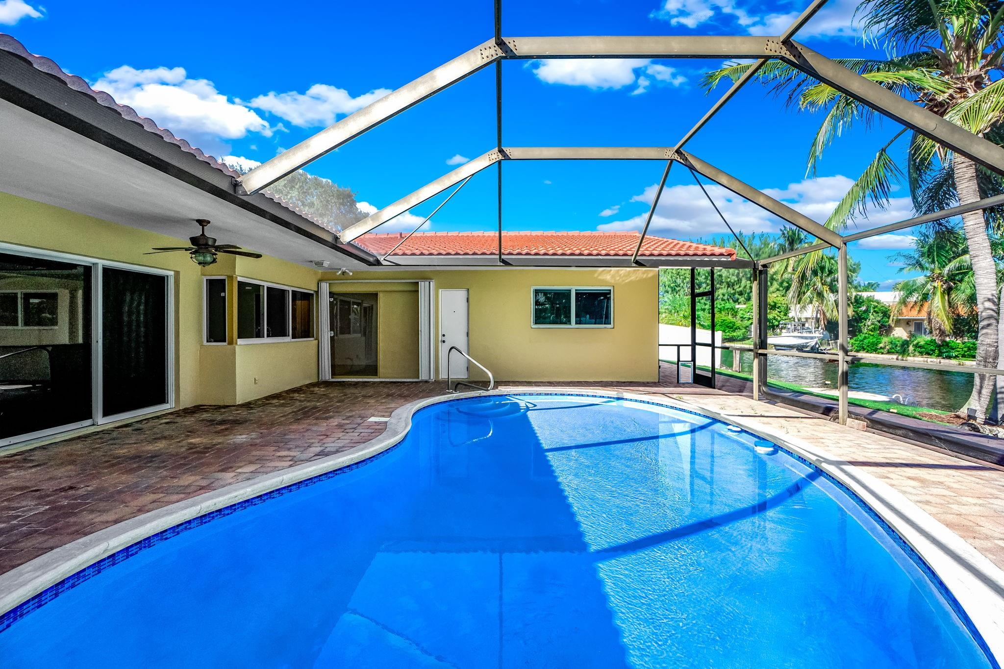 Experience the essence of waterfront living neighboring The Landings. This 3 bedroom, 3 full bathroom pool home with 2-car garage and circular driveway offers 80 feet of canal frontage with ocean access. The home features 2 primary suites, open living areas with impact windows and doors, timeless updates including a 2019 roof, 2020 A/C, and newer electrical panels. Designed for entertaining, the split-level outdoor retreat offers a resurfaced heated pool, paver deck, and sweeping canal views. This home is tucked away on a quiet street that offers both privacy and a peaceful setting. Perfect for boaters or land lovers alike, this residence captures the coveted South Florida lifestyle with convenient access to the Intracoastal, beaches, dining, and all that Fort Lauderdale offers.