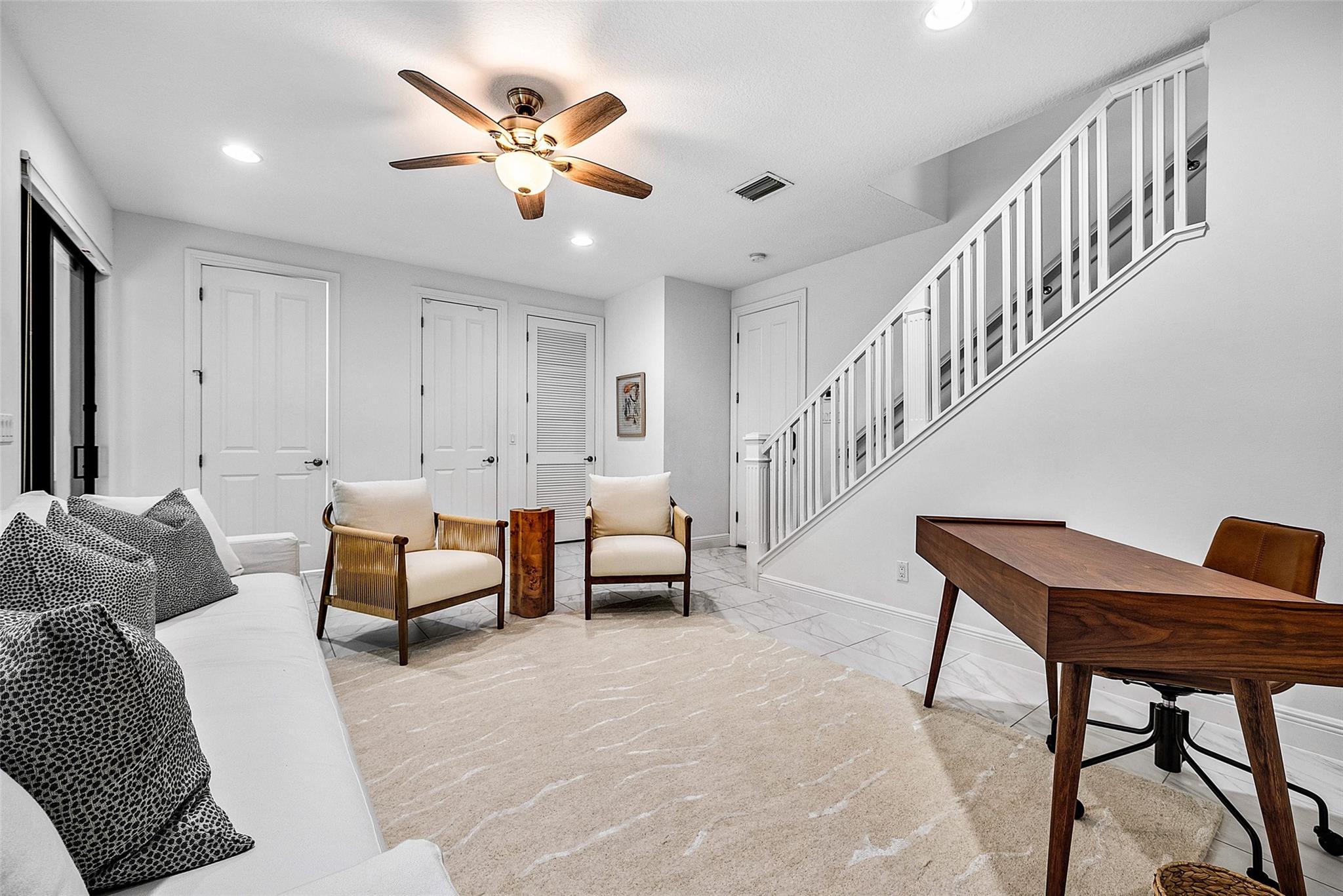 Discover the epitome of luxury living in East Boynton's exclusive Intracoastal enclave, Casa Del Mar. This elegant, tri-level townhome spans an impressive 3,294 total sq. ft. of thoughtfully designed living space, featuring 3 spacious bedrooms, 2 full/2 half baths, and a 2-car garage with additional storage. Every detail has been meticulously crafted to deliver modern comfort, style, and sophistication. Luxury living on three floors with tropical views. Step into the first floor, where a versatile bonus room with a private bathroom awaits. Ideal for a home office, guest suite, or media room, this space offers privacy and functionality to suit your lifestyle needs. The second level showcases a bright, open-concept living area with soaring ceilings and refined finishes.