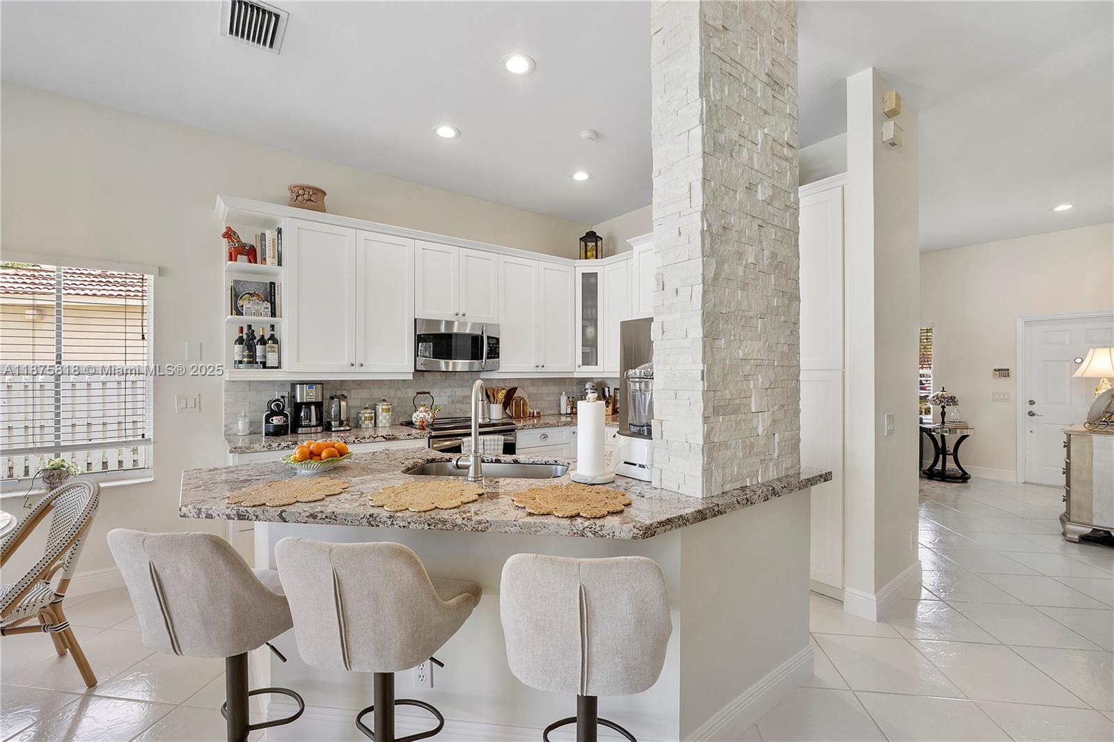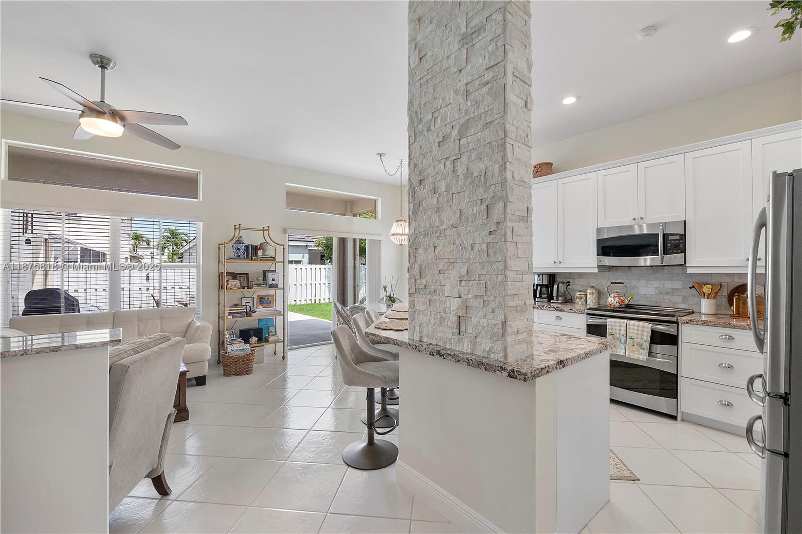 Welcome to this 3/2, 2 car garage in Weston. Located in the exclusive Meadows neighborhood, on a cul-de-sac with oversized pie-shaped lot. Kitchen upgraded, NEWLY UPGRADED SECOND BATHROOM, and BRAND NEW 2025 ROOF. Freshly painted interior and exterior. Neutral white tile throughout the living areas. Homey front porch. Accordion shutters throughout entire house for maximum hurricane protection. Fully fenced backyard. Quiet street with minimal drive-thru traffic. Neighborhood features manned 24-hour guard gate, community pool, playground, basketball/pickle ball court area, walking trail along the lake, and grassy field area. A-rated schools nearby.