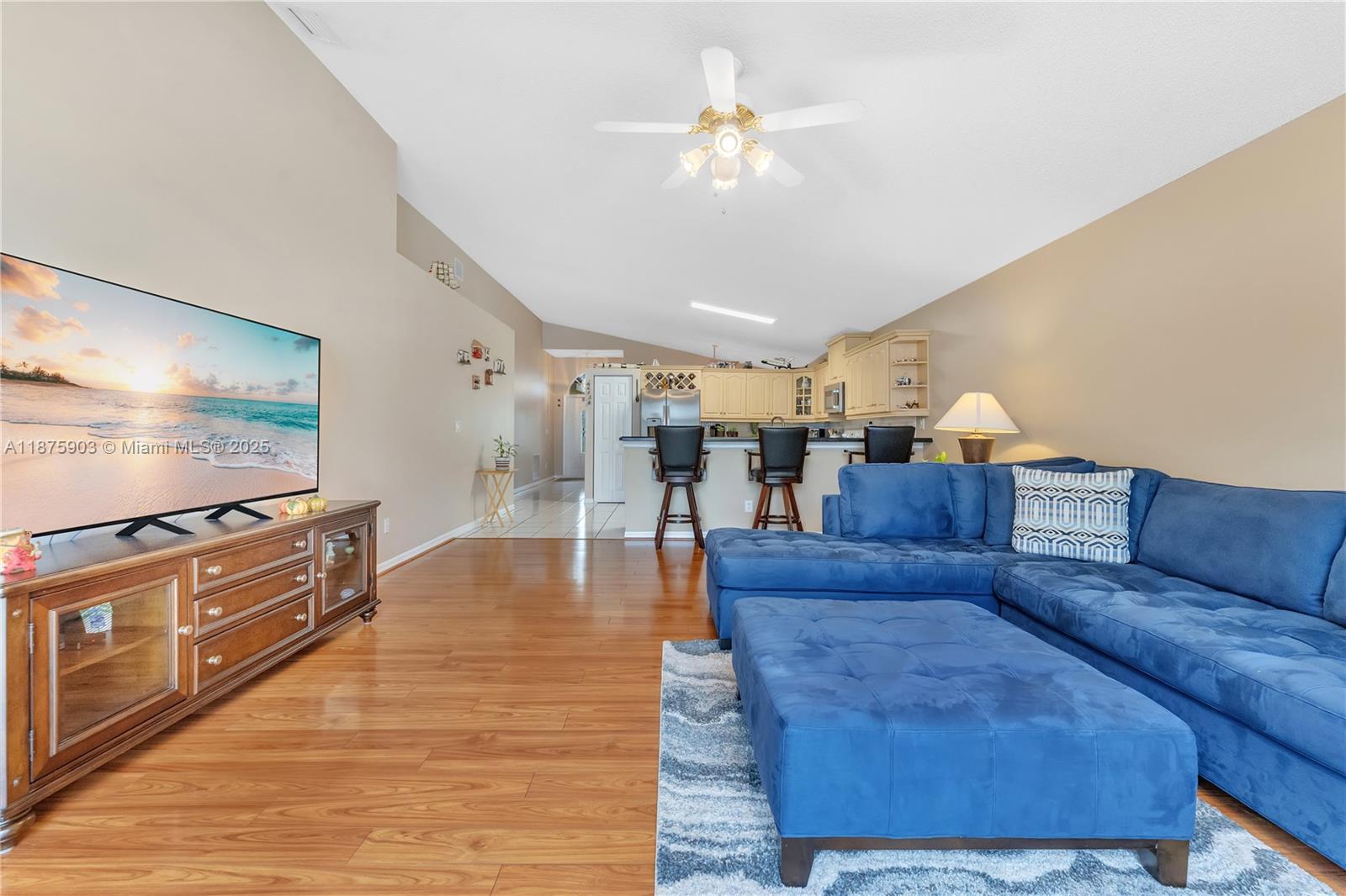 Welcome to Silver Lakes, Coconut Bay. Beautiful charming one story well maintained 3 bed + den/2 bath Home. Spacious Kitchen with granite counter tops. Stainless steel refrigerator. Tile floors and laminate wood floors in living area, dining area and kitchen. A/C (2023) and Water Heater (2022). The home features spacious bedrooms, large walking closet in master room, bright living room, formal dining room, and a laundry room for your comfort. Nice backyard with space for a pool and entertainment for barbecues and parties. Two car garage with extended driveway for extra parking. Gorgeous Silver Lakes Club House with 2 Community pools and playground. Located just minutes from I-75, close to Grade A schools, multiple parks, shopping centers, and Memorial Hospital Miramar.