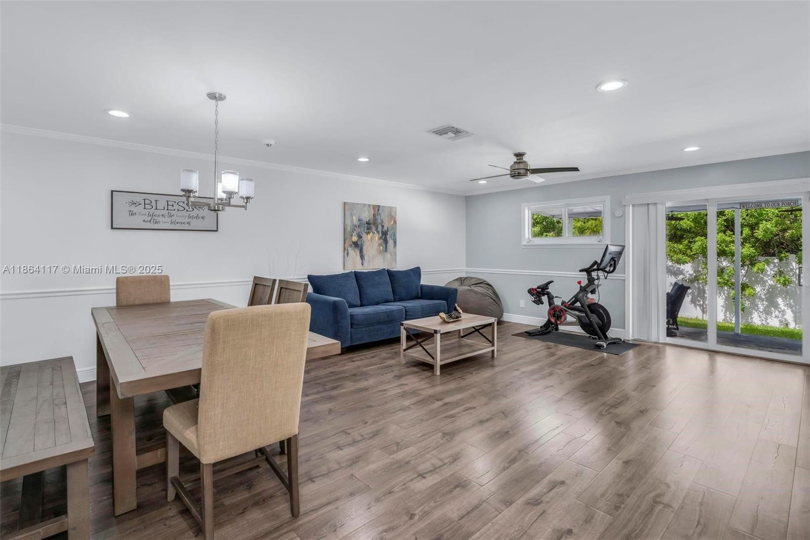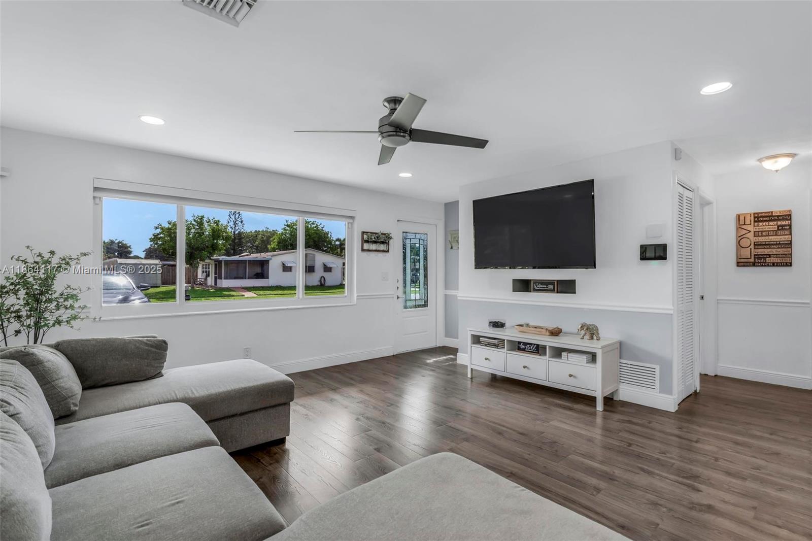Completely remodeled 3/2 single-family home in the heart of Cooper City w/ NO HOA. This stunning residence features luxury vinyl flooring throughout, impact windows, recessed lighting, & modern zebra blinds for your convenience. The open-concept kitchen boasts sleek stainless-steel appliances, white shaker cabinets, quartz counters, & soft-close drawers. Enjoy a spacious layout w/ two living areas, one perfect for a 4th bedroom, home office, or game room. The master suite offers two walk-in closets & a resort-style bath w/ elegant finishes. Abundant natural light flows through every room. Spacious laundry room in the home for your convenience. The property is fully enclosed with PVC fence for privacy. Full 1 car garage. A covered outdoor patio with ceiling fans, perfect for entertaining.