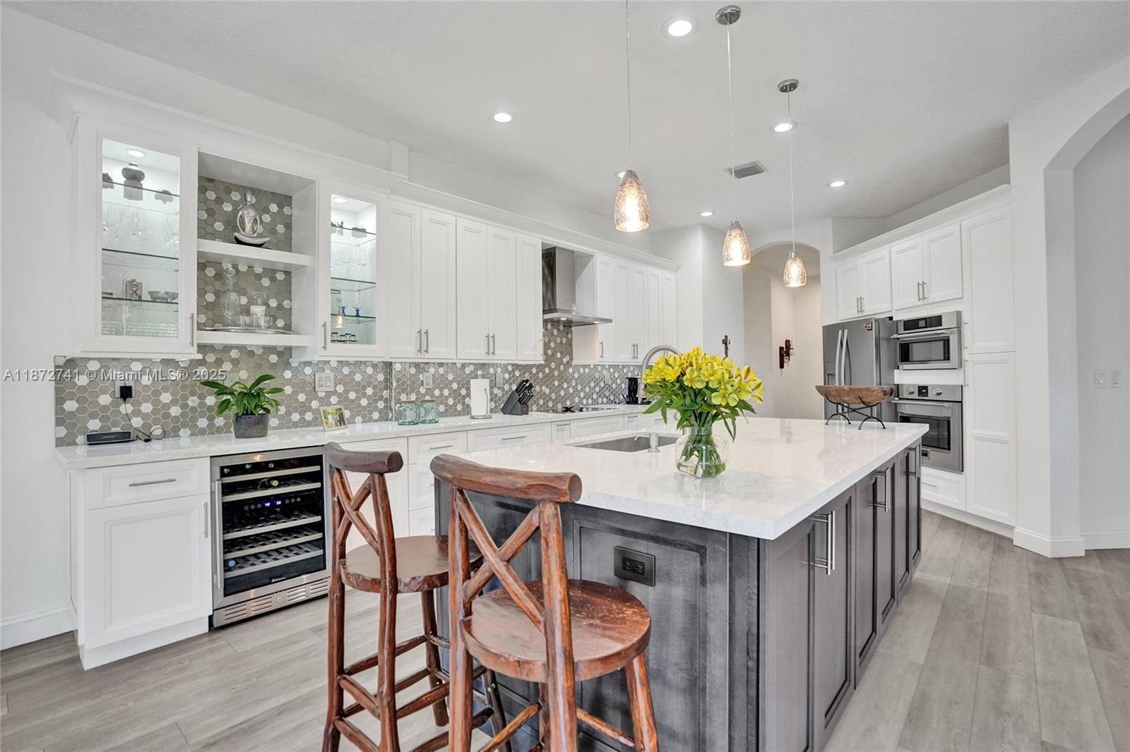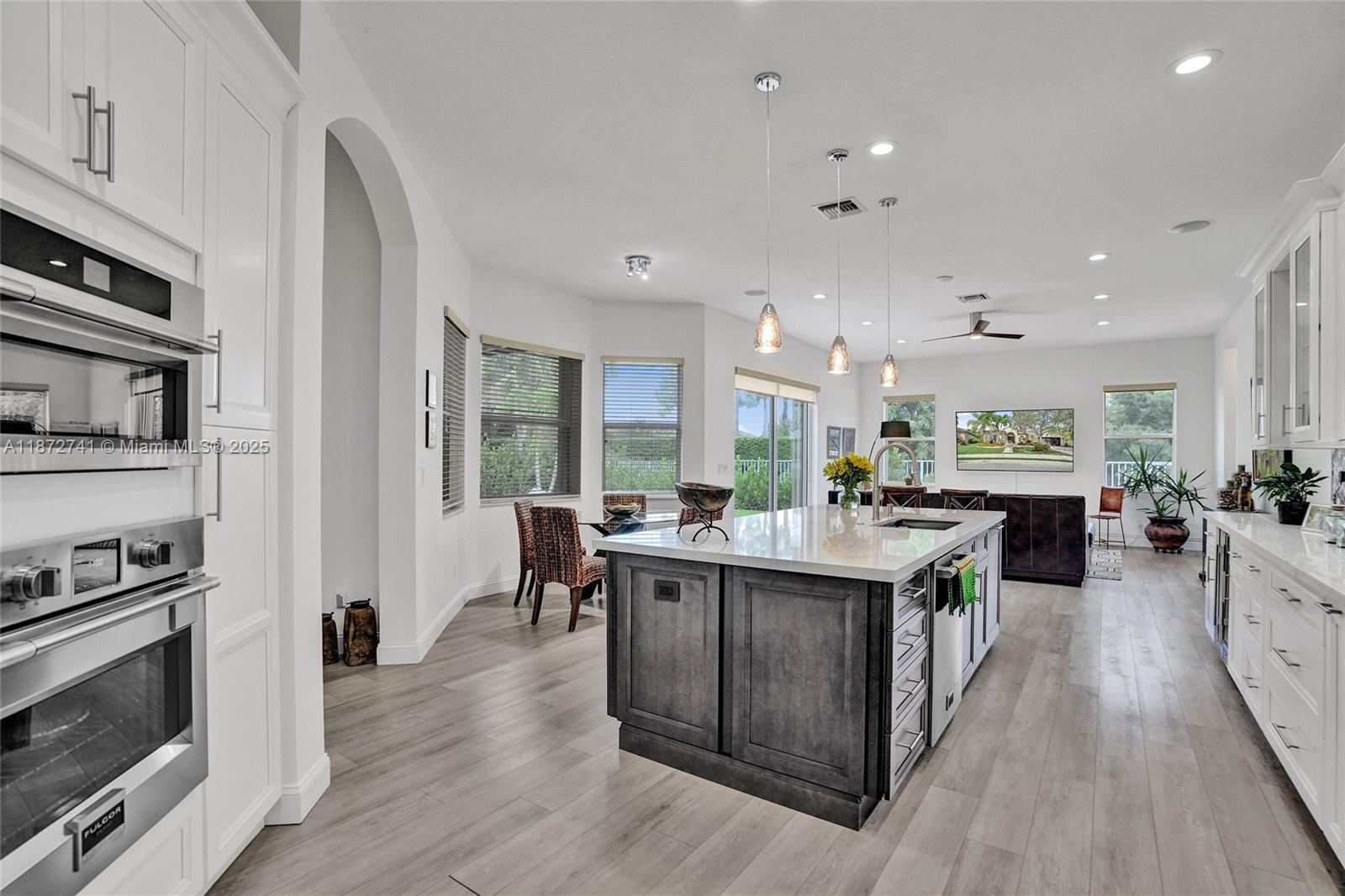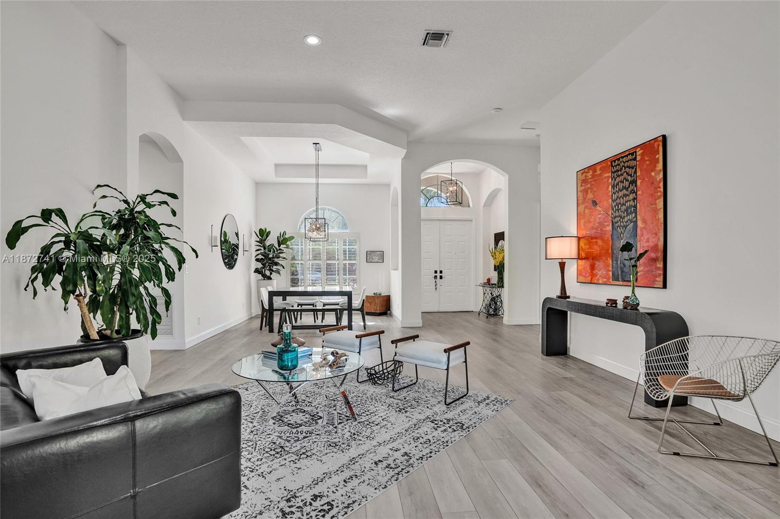 Welcome to Isles at Weston ...Just Listed! Experience luxury living in the prestigious Isles at Weston. This freshly painted 4-bed, 3-bath home features soaring 14-ft ceilings, brand-new flooring, and a chef’s kitchen with quartz island, wet bar, wine cooler, double oven, flat cooktop, and custom 42” cabinetry with stainless-steel appliances. Situated on an oversized cul-de-sac lot, enjoy serene lake views, extended patios, a fenced backyard with room for a large pool, and accordion shutters. Resort-style amenities include a renovated clubhouse, fitness center, pools, and 24/7 security. Walking distance to Weston’s A+ rated schools, this home blends elegance, comfort, and convenience. Your dream lifestyle awaits.