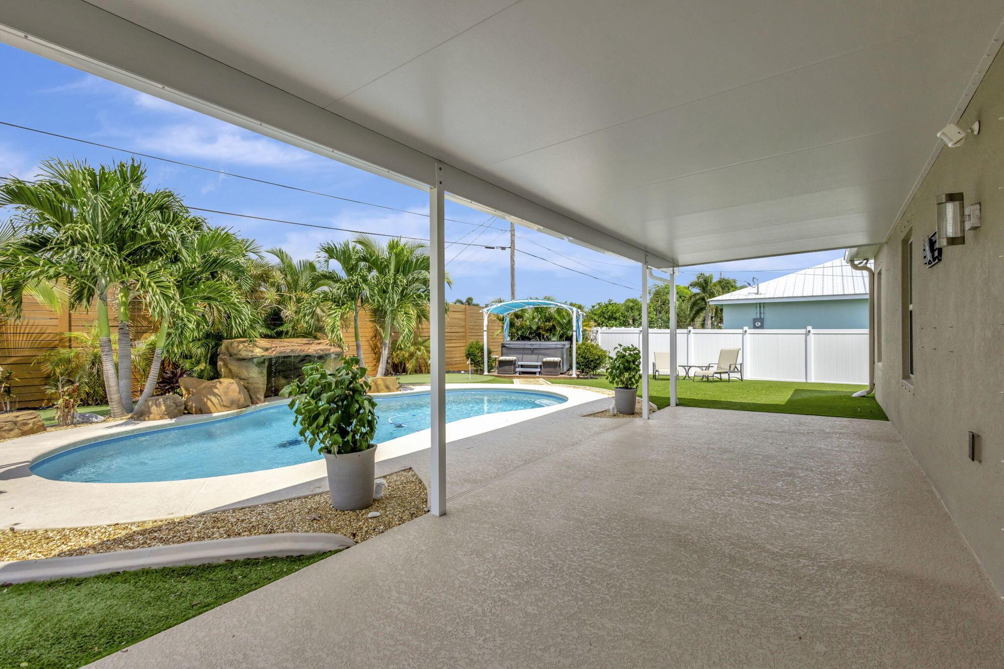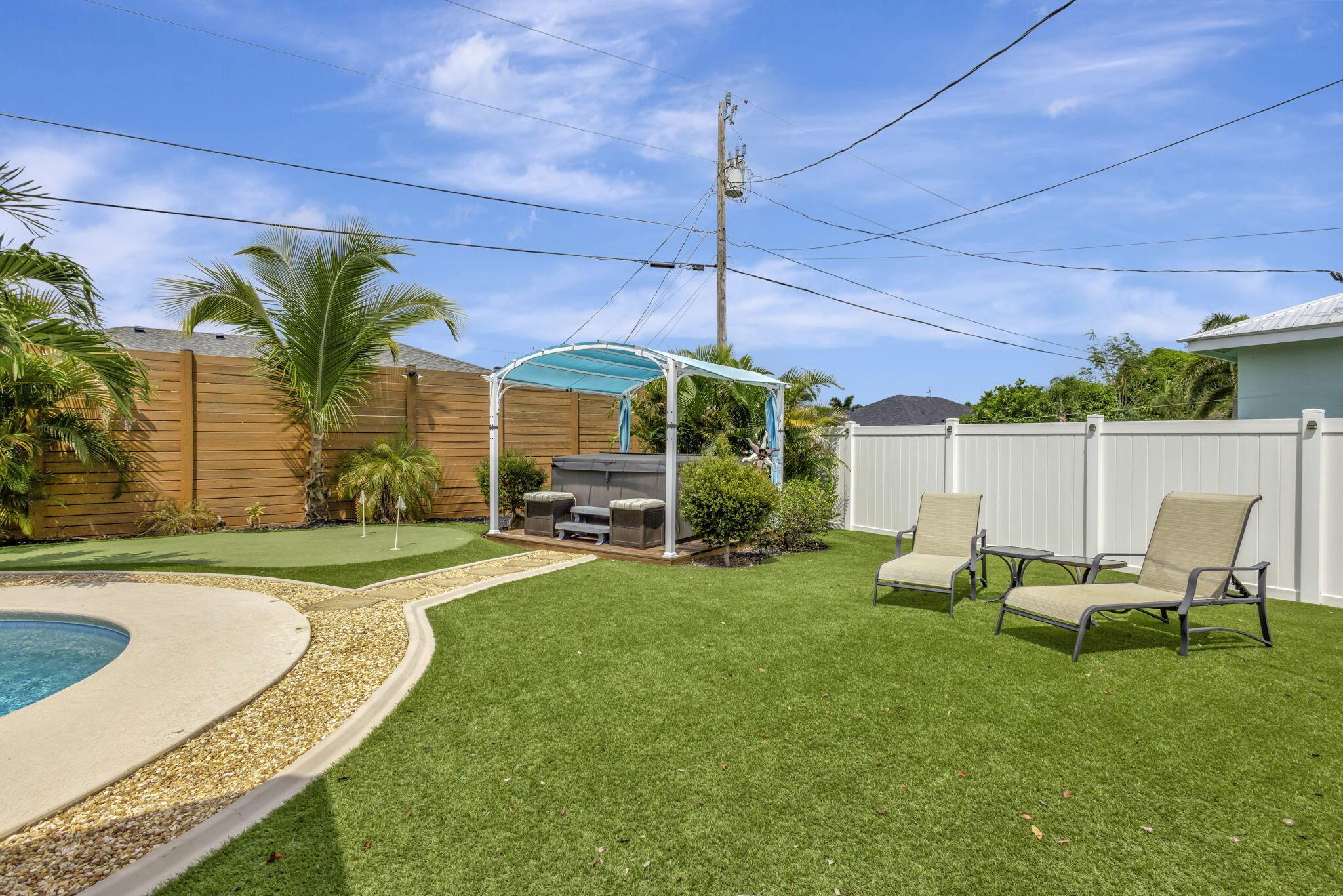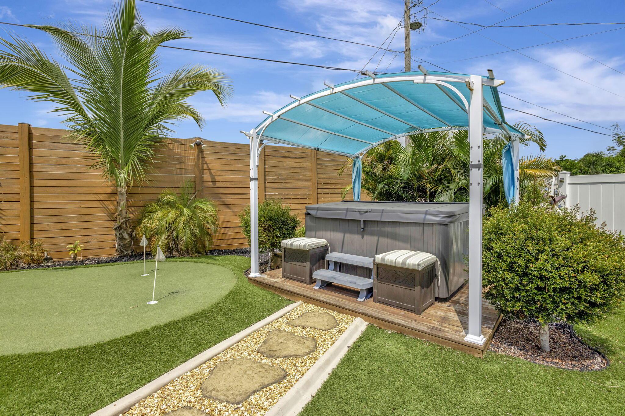 Lovely 4 BR/2BA/POOL home with privacy fenced yard! This home is in move in condition and ready for you to enjoy your Florida lifestyle! Open floor plan features a spacious kitchen with island, espresso kitchen cabinets and stainless appliances. This home also includes solar panels, which means great savings on your utility bills! But really makes this home shine is its back yard oasis! Relax on your spacious back yard covered patio, or plan a BBQ on your detached deck with cover as well!!n The sparkling pool with stonework and waterfall is ready for you to enjoy! Or perhaps relax on your back lawn or practice your golf swing on the putting green! No matter how you choose to relax, your back yard is super private and fully fenced in. Hot Tub, negotiable!