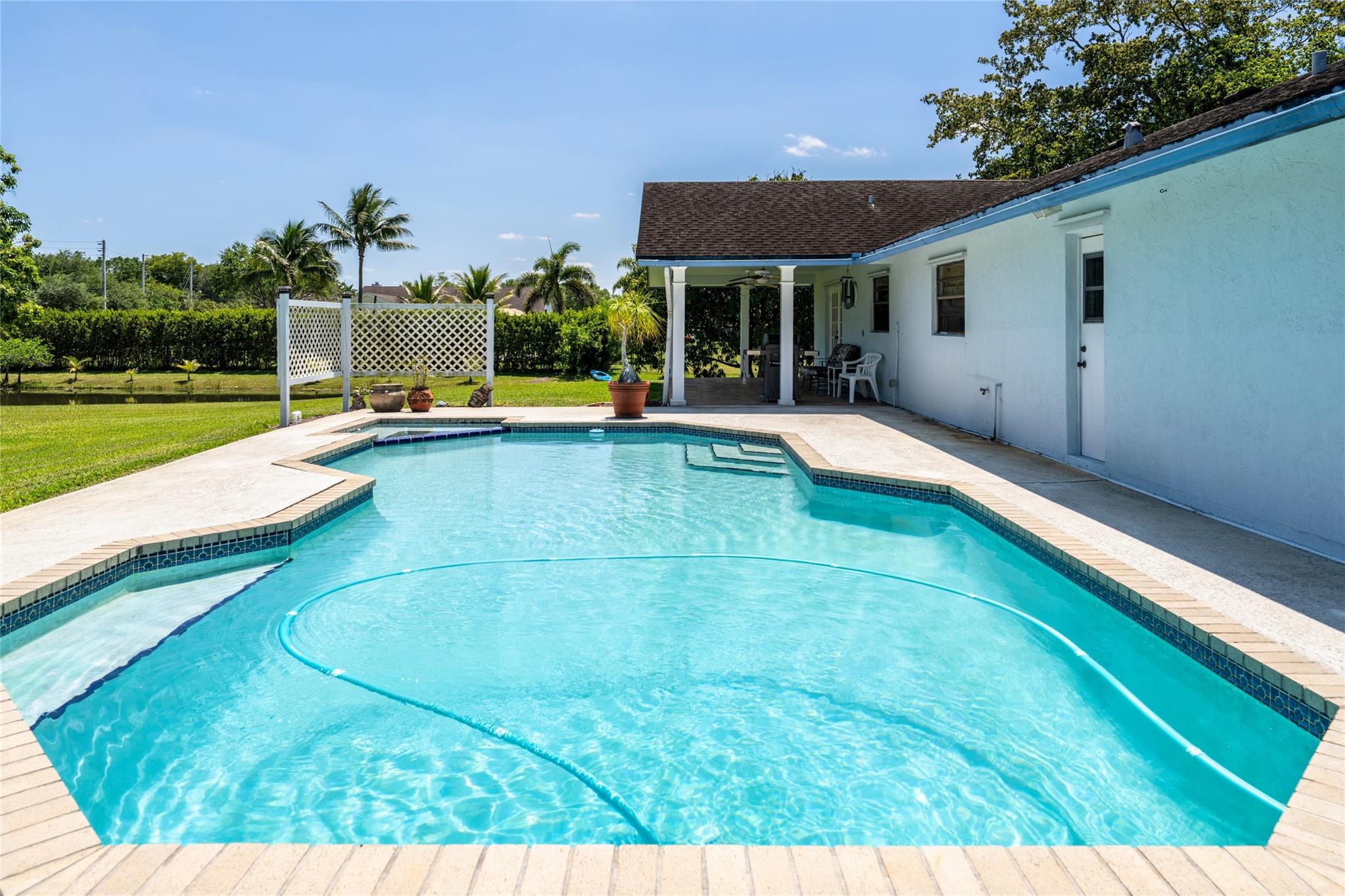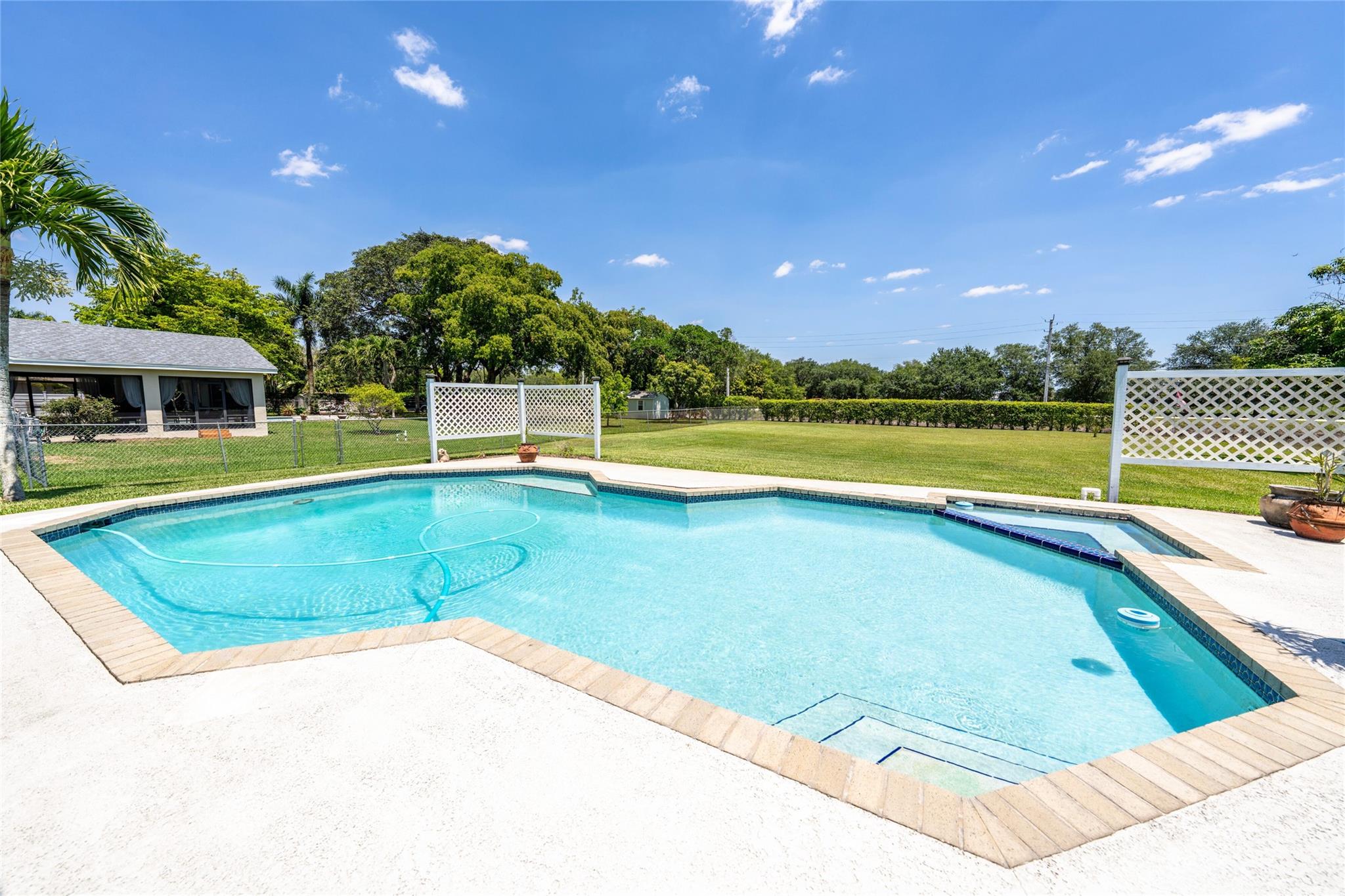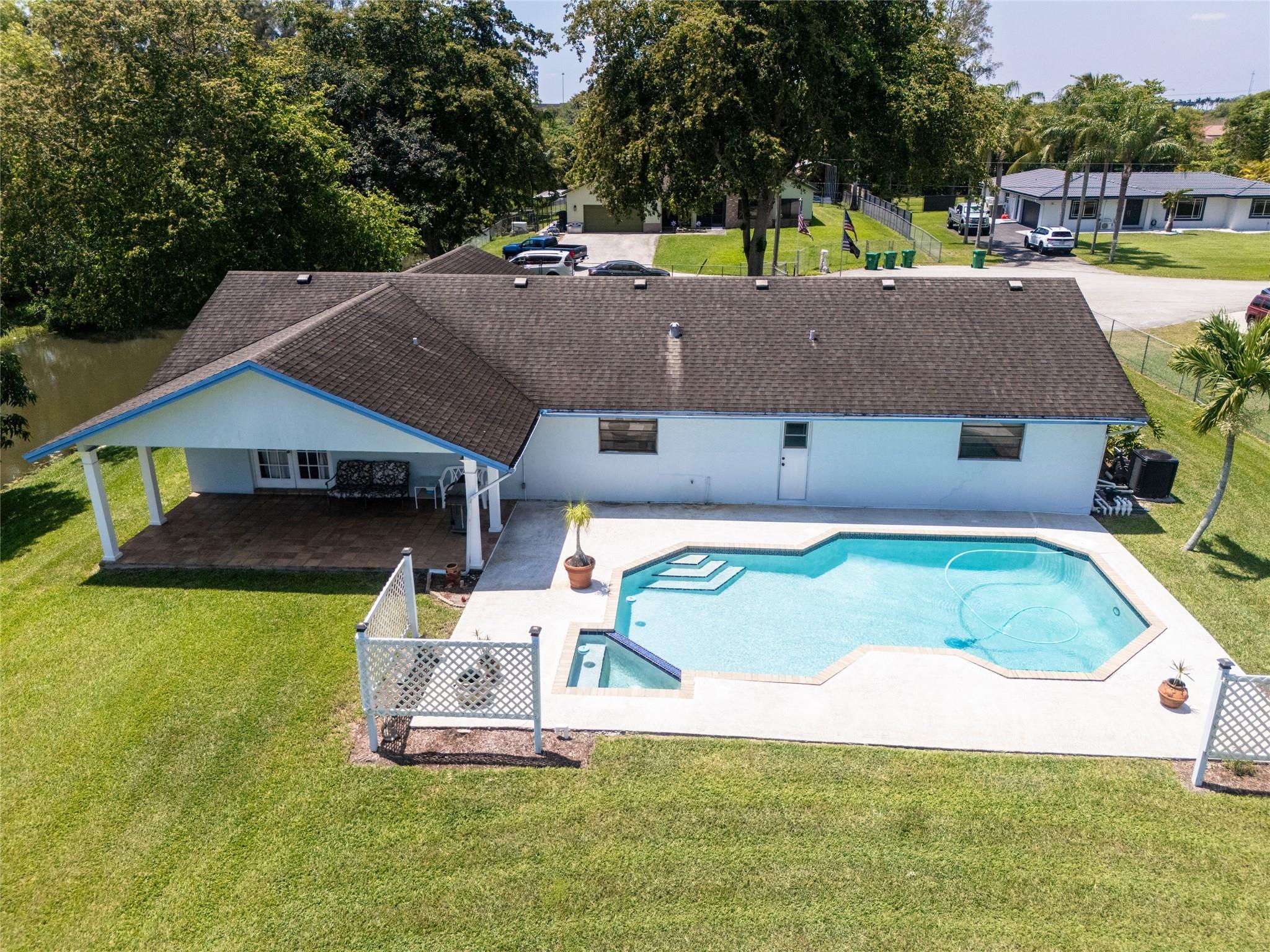 $889,000!! HURRY! WEST DAVIE'S HORSE COUNTRY! WONDERFUL ACRE HOME NESTLED IN A PRIVATE CUL-DE-SAC! LARGE LIVING & FORMAL DINING ROOMS, LARGE ISLAND KITCHEN OPENS TO FAMILY ROOM ALL WITH VAULTED CEILINGS, EASY TO CREATE OPEN CONCEPT LIVING! LARGE MASTER WITH WALK IN + ADD'L WALL CLOSET. FRENCH DOORS OPEN TO LARGE COVERED PATIO WITH WHITE ALUMINUM COLUMNS. HEATED POOL/SPA! NEW SEPTIC IN 2022. MANICURED DEEP YARD HAS ROOM FOR BIG TOYS, HORSES, GARDENS & HOSTING FAMILY GATHERINGS! ENJOY LOTS OF NATURE ON PRIVATE CANAL! SPRINKLER SYSTEM IS CANAL FED SO NO RUST! EXCELLENT SCHOOLS: COUNTRY ISLES IN WESTON! EASY ACCESS TO DAVIE'S RECREATIONAL TRAIL SYSTEM, VISTA VIEW PARK, I-75, 595, WESTON'S TOWN CENTER, SAWGRASS MALL, CLEVELAND CLINIC, HOUSES OF WORSHIP, AMERICAN HERITAGE, ETC. ALL MINUTES AWAY.