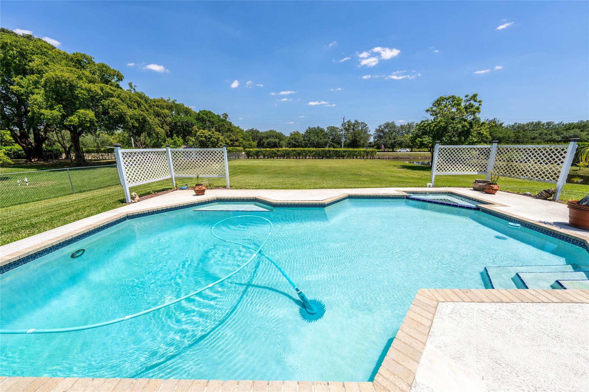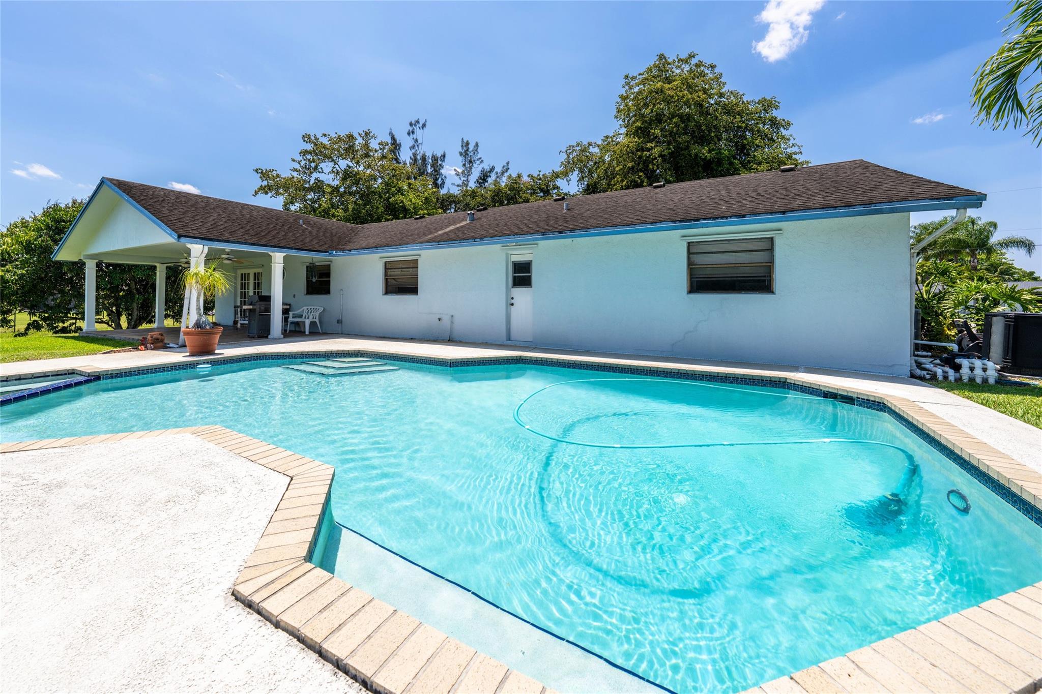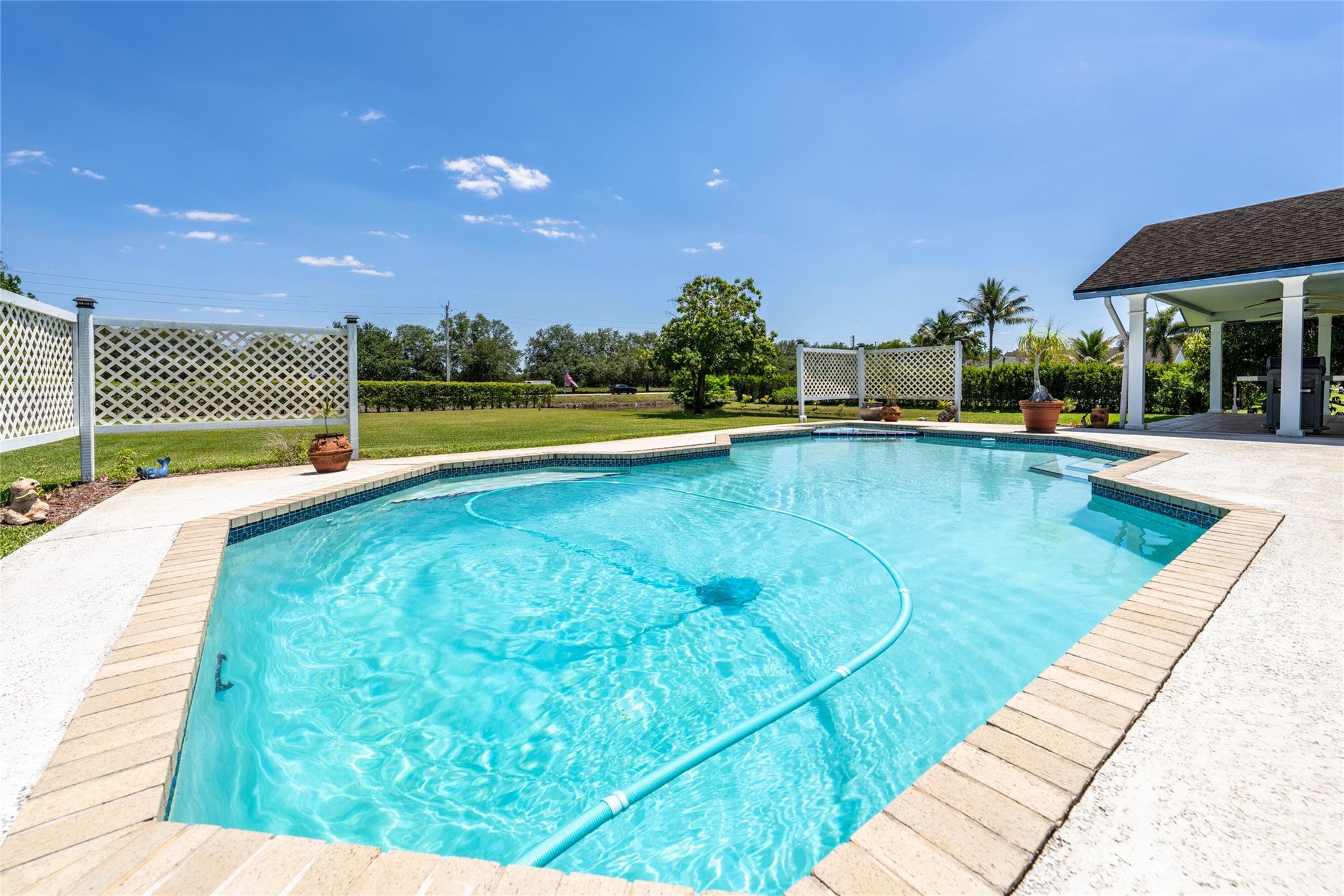 $889,000!! HURRY! WEST DAVIE'S HORSE COUNTRY! WONDERFUL ACRE HOME NESTLED IN A PRIVATE CUL-DE-SAC! LARGE LIVING & FORMAL DINING ROOMS, LARGE ISLAND KITCHEN OPENS TO FAMILY ROOM ALL WITH VAULTED CEILINGS, EASY TO CREATE OPEN CONCEPT LIVING! LARGE MASTER WITH WALK IN + ADD'L WALL CLOSET. FRENCH DOORS OPEN TO LARGE COVERED PATIO WITH WHITE ALUMINUM COLUMNS. HEATED POOL/SPA! NEW SEPTIC IN 2022. MANICURED DEEP YARD HAS ROOM FOR BIG TOYS, HORSES, GARDENS & HOSTING FAMILY GATHERINGS! ENJOY LOTS OF NATURE ON PRIVATE CANAL! SPRINKLER SYSTEM IS CANAL FED SO NO RUST! EXCELLENT SCHOOLS: COUNTRY ISLES IN WESTON! EASY ACCESS TO DAVIE'S RECREATIONAL TRAIL SYSTEM, VISTA VIEW PARK, I-75, 595, WESTON'S TOWN CENTER, SAWGRASS MALL, CLEVELAND CLINIC, HOUSES OF WORSHIP, AMERICAN HERITAGE, ETC. ALL MINUTES AWAY.