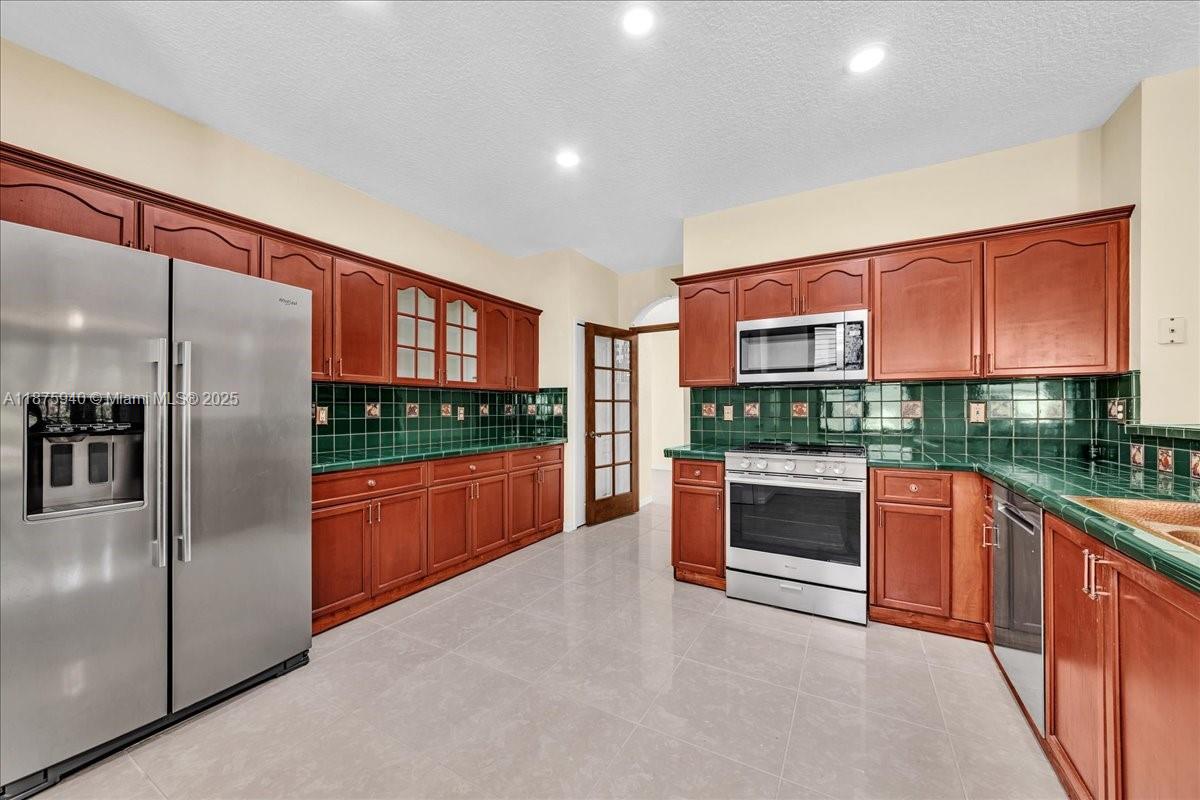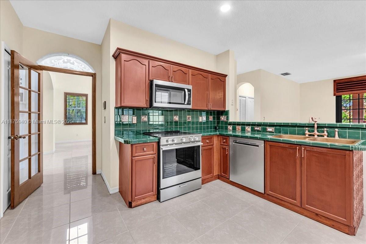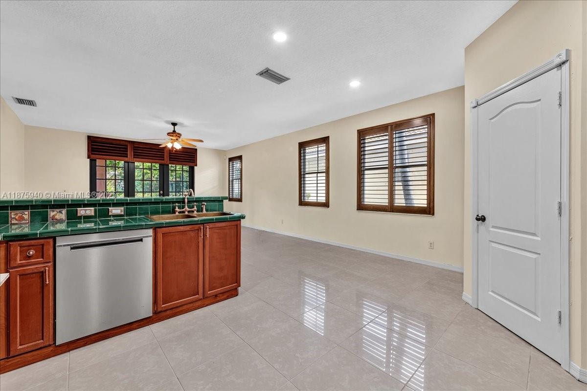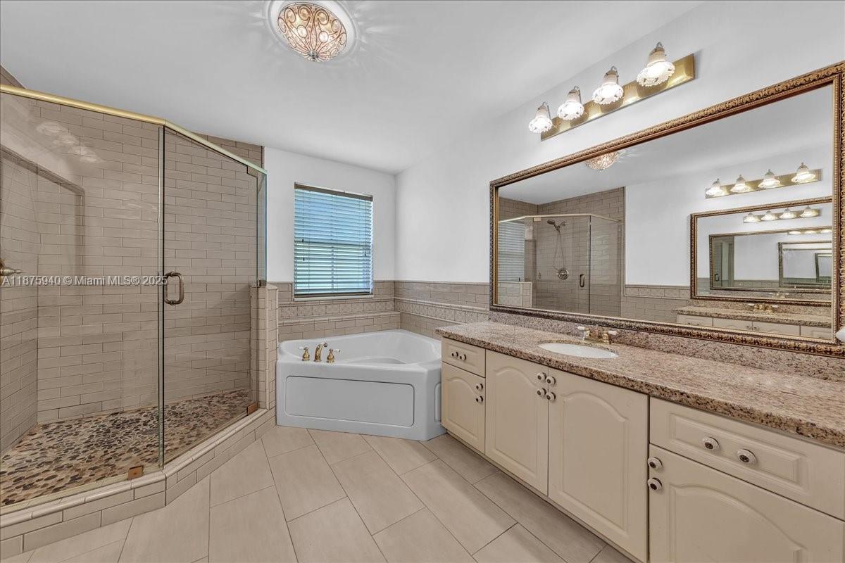 Welcome to this spacious 4-bedroom, 2.5-bath home located in a desirable gated community. The expansive kitchen with wood cabinetry seamlessly flows into the oversized family room, creating the perfect setting for entertaining or everyday living. Downstairs features elegant plantation shutters, while upstairs boasts impact windows and impact French doors both front and back for peace of mind. The primary suite offers a renovated bathroom with dual granite-top vanities and a frameless glass-enclosed shower. Neutral colors throughout and abundant windows allow natural light to flood the home, highlighting its open and inviting design.
