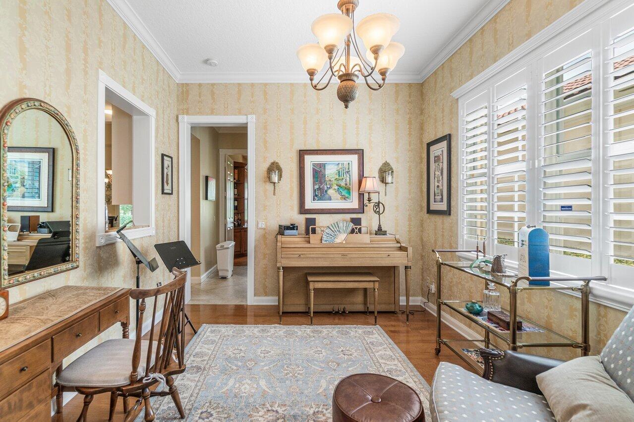 Enjoy peaceful lake views from this immaculately maintained Carlyle model, on a quiet cul-de-sac in the coveted Isles at Palm Beach Gardens. Boasting a brand new roof (Aug 2025), updated baths with marble vanities and nickel finishes and an inviting front porch, this light-filled 4BR/3BA home features formal and informal living areas, soaring ceilings, diagonal porcelain tile, and a screened-in lanai perfect for outdoor relaxation. The 4th bedroom is set up as a home office with custom built-ins. The spacious kitchen with granite counters and abundant cabinetry flows seamlessly into the family room. Large primary suite offers dual baths and generous closets. Pristine 2 car garage and laundry. Enjoy resort-style amenities including pool, tennis, pickleball, clubhouse, and fitness center.