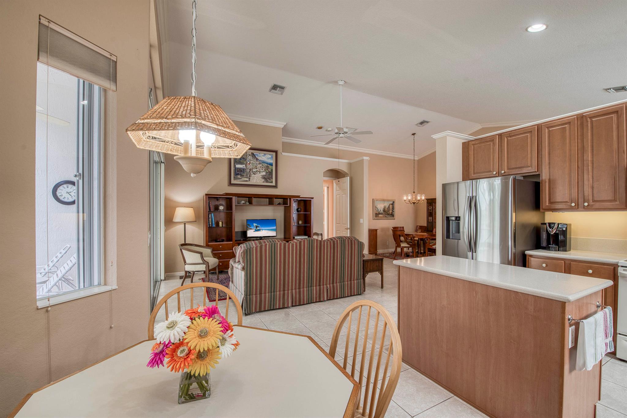 Welcome to Baywinds - a 55+ active adult community situated in West Palm Beach. This lakefront home features 3 bedrooms, 2 full bathrooms and an extended screened-in patio with expansive views. With 2,184 living square feet, this home offers a split floorplan that provides comfort and flexibility for your family and guests. The diverse layout features a formal living sitting area, family room, eat-in kitchen and dining space with direct waterviews. In addition, you will find high ceilings, a large primary suite & bathroom, interior laundry room and a two car garage. Known for its beautifully designed clubhouse and amenities, the exterior grounds feature three pools & hot tub, five tennis courts, four pickleball courts, four bocce courts and four shuffleboard courts. The clubhouse provides