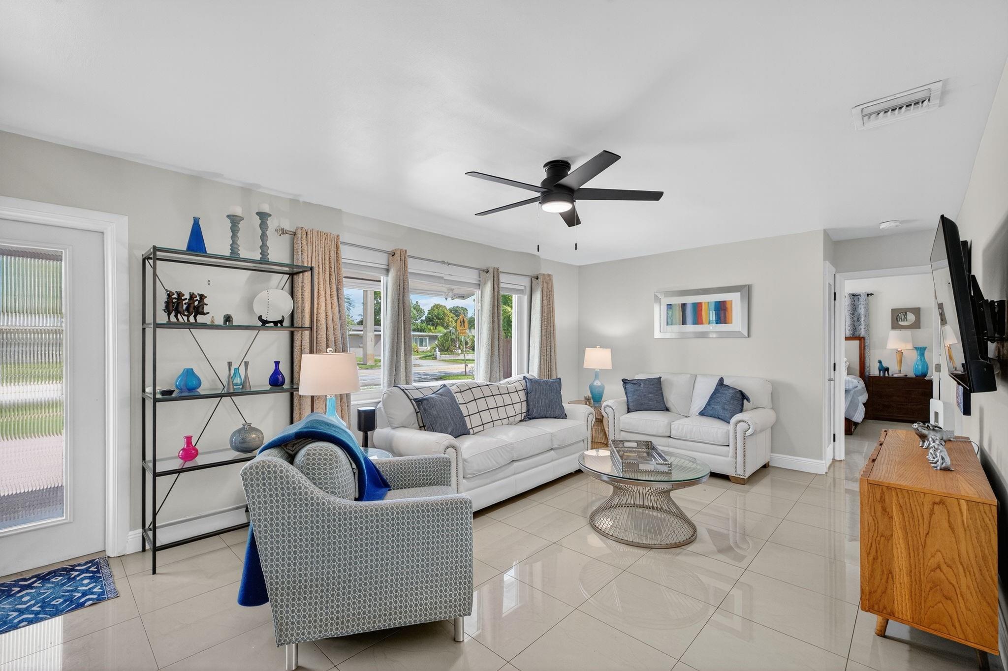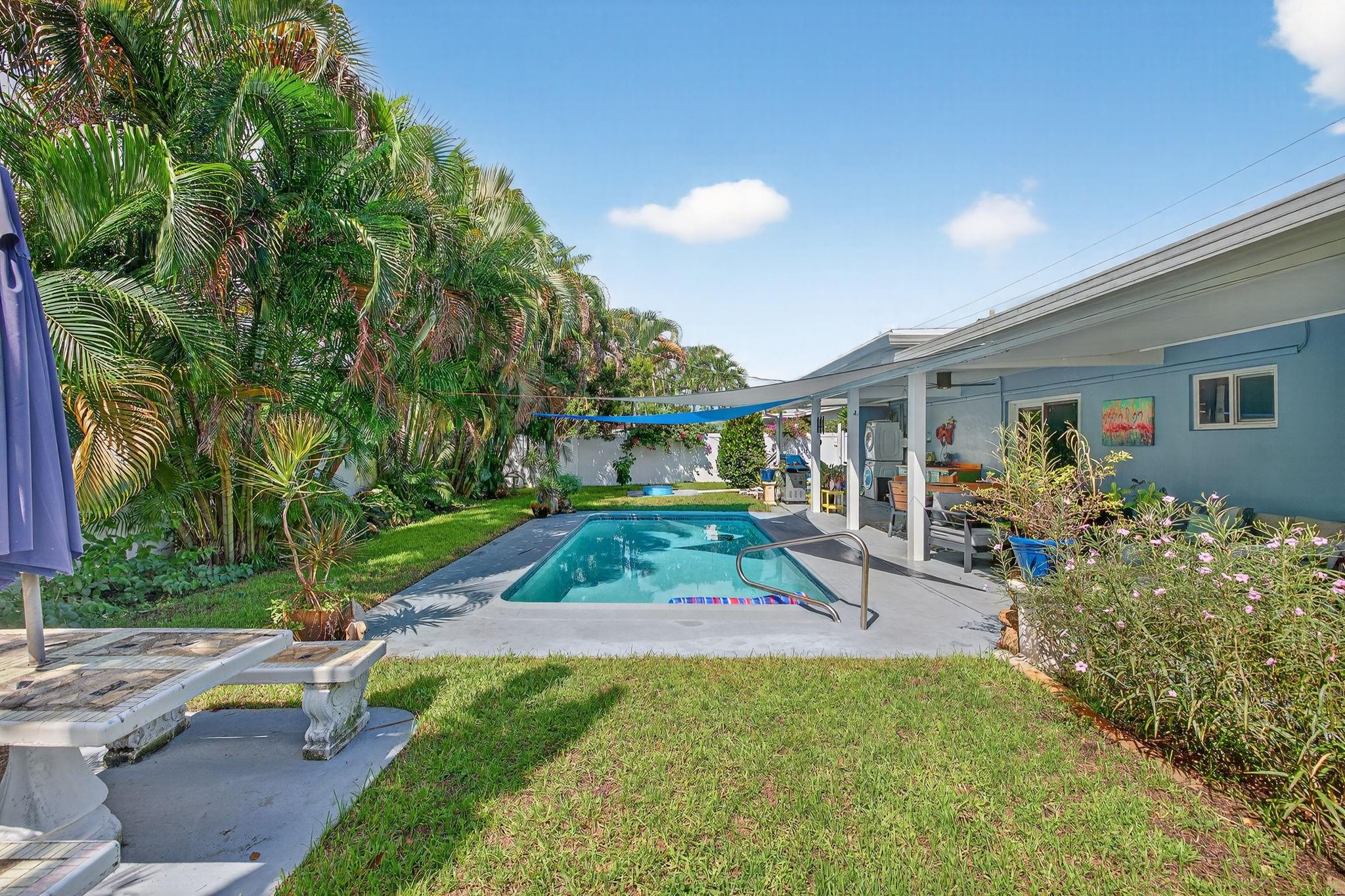 Your turnkey pool home awaits. In 2024, this stunning home got a brand new roof, appliances and AC, and was painted inside AND out! In 2025, the pool was resurfaced, both bathrooms renovated, kitchen updated, and a new pool pump. The in-law suite was completely updated. This gorgeous home has 2 large bedrooms and 1 bath in the main house and 1 large bedroom, 1 bath, and kitchenette in the in-law suite - just bring your style and belongings. Some of the new furniture is negotiable. In-law suite has a separate entrance and could convert back to garage. Backyard is private with a gorgeous pool & new landscaping. Lanai runs the entire length of the house and has new ceiling fans. Electrical panel 2019. Pool heater 2020. Pull up to this gem with its sweeping circular driveway & ample parking.