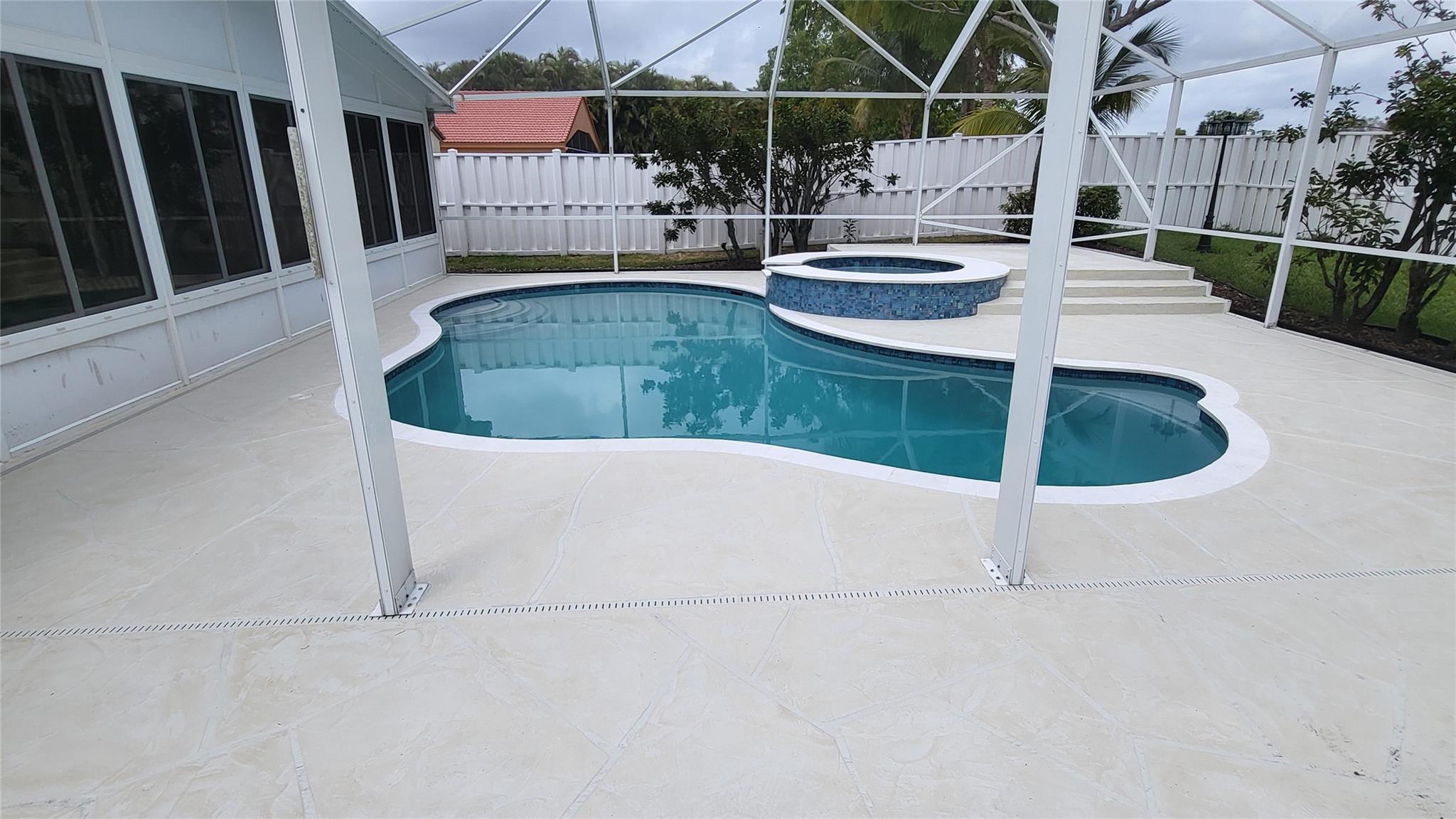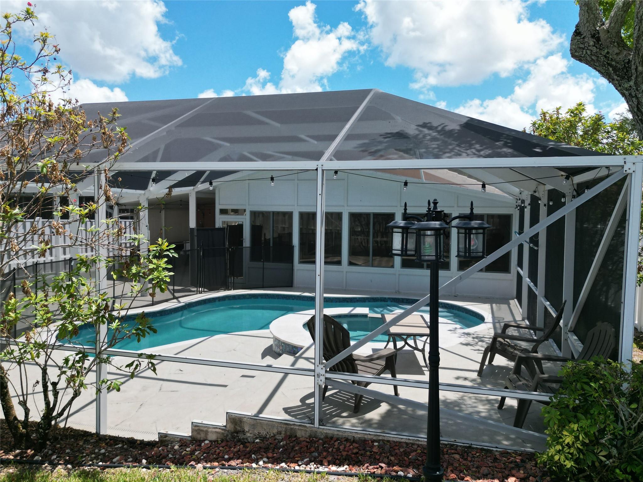 MOVE RIGHT IN THIS FULLY RENOVATED WELL MAINTAINED 4 BEDROOM 2/1/2 BATH. NEW AC. SCREENED POOL/SPA AND PATIO REMODELED LAST YEAR INCLUDING POOL AND SPA SURFACE, MARBLE COPING, GLASS TILE, STAMPED CONCRETE, SALT SYSTEM POOL EQUIPMENT, NEW SCREENS AND KIDS FENCE. FRENCH DOOR LEADS TO THE HUGE FLORIDA ROOM WITH SUN-SHADES IN EACH 12 WINDOWS, SPACIOUS MASTER SUITE HAS A SLIDING DOOR TO THE POOL AREA, CUSTOM WALK IN CLOSETS. WHIRLPOOL JETTED TUB WITH LIGHTS AND SEPARATE SHOWER IN THE MASTER BATH. IMPACT WINDOWS AND DOORS, HURRICANE SHUTTERS. EAT-IN KITCHEN MAPLE CABINETS GRANITE COUNTERTOPS. FORMAL DINING AND LIVING, FAMILY ROOM. LARGE CLOSET IN GARAGE. PRIVACY FENCE. NO NEIGHBORS IN THE BACK. BEAUTIFUL NEIGHBORHOOD, GREAT LOCATION! TENANT OCCUPIED UNTIL APRIL 30, 2026 WITH $5,900 RENT INCOME.