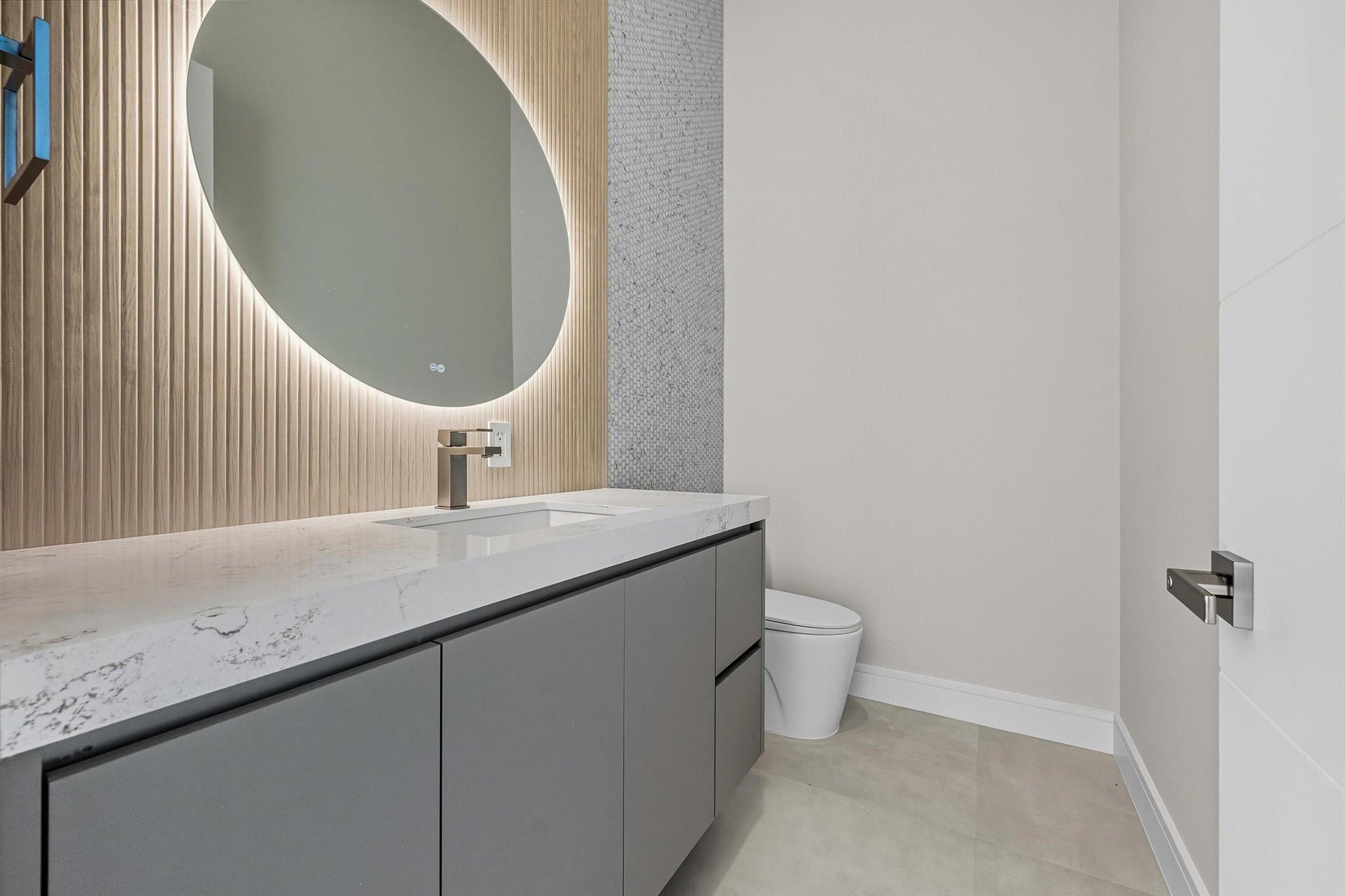 Newly built coastal contemporary residence in the heart of East Delray Beach. Just a short walk to the beach and minutes from vibrant Atlantic Avenue. Part of a neighborhood undergoing a complete transformation with brand-new multimillion-dollar homes, this property blends modern design, sustainable living, and resort-style amenities.With 3,800 square feet of living space and over 4,600 total square feet, the home offers soaring 12-foot ceilings on the main level and 10-foot ceilings upstairs, creating an airy and open atmosphere. The chef's kitchen is a true showpiece with a dramatic waterfall quartz island, high-end appliances, and custom cabinetry.