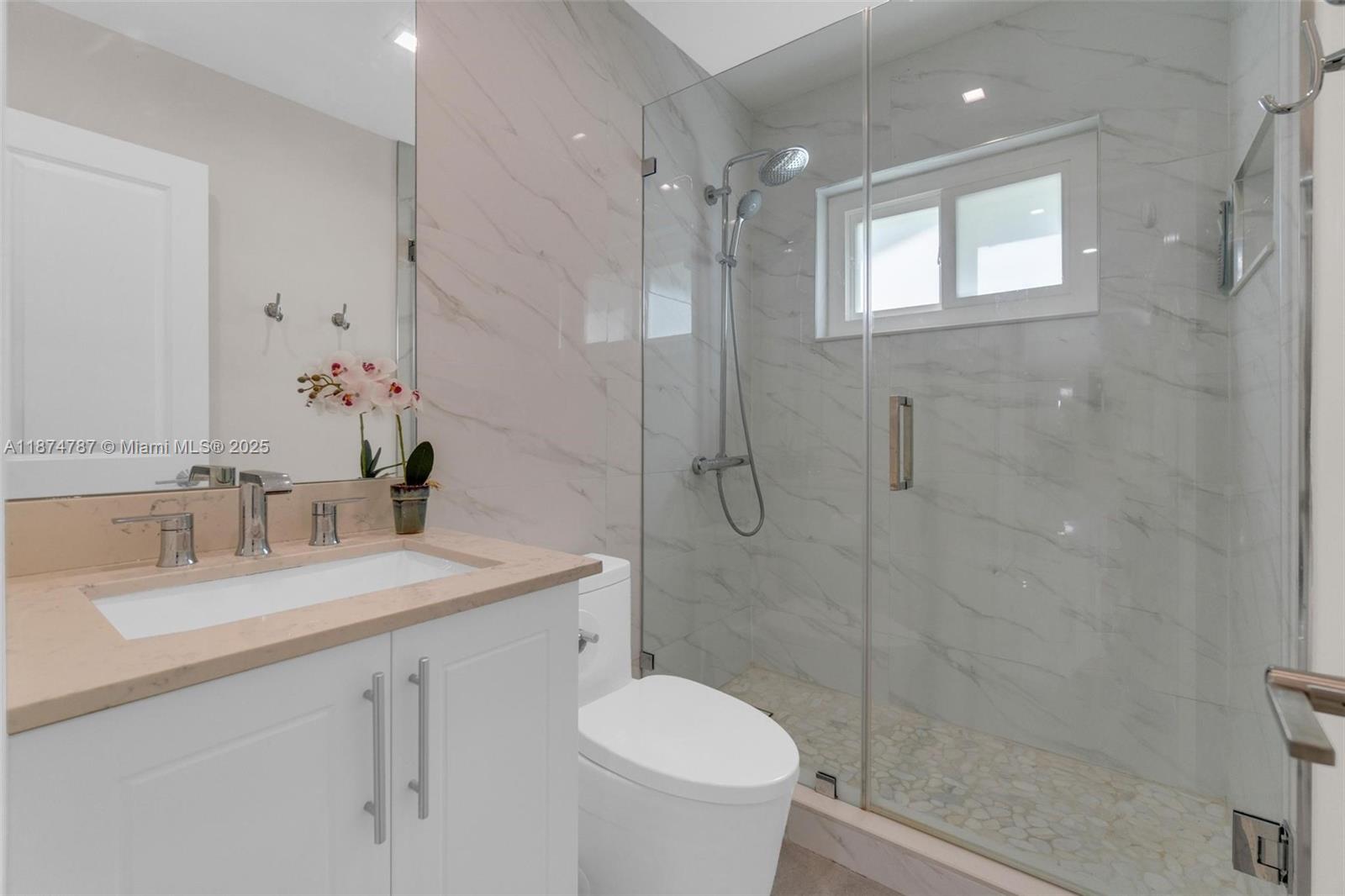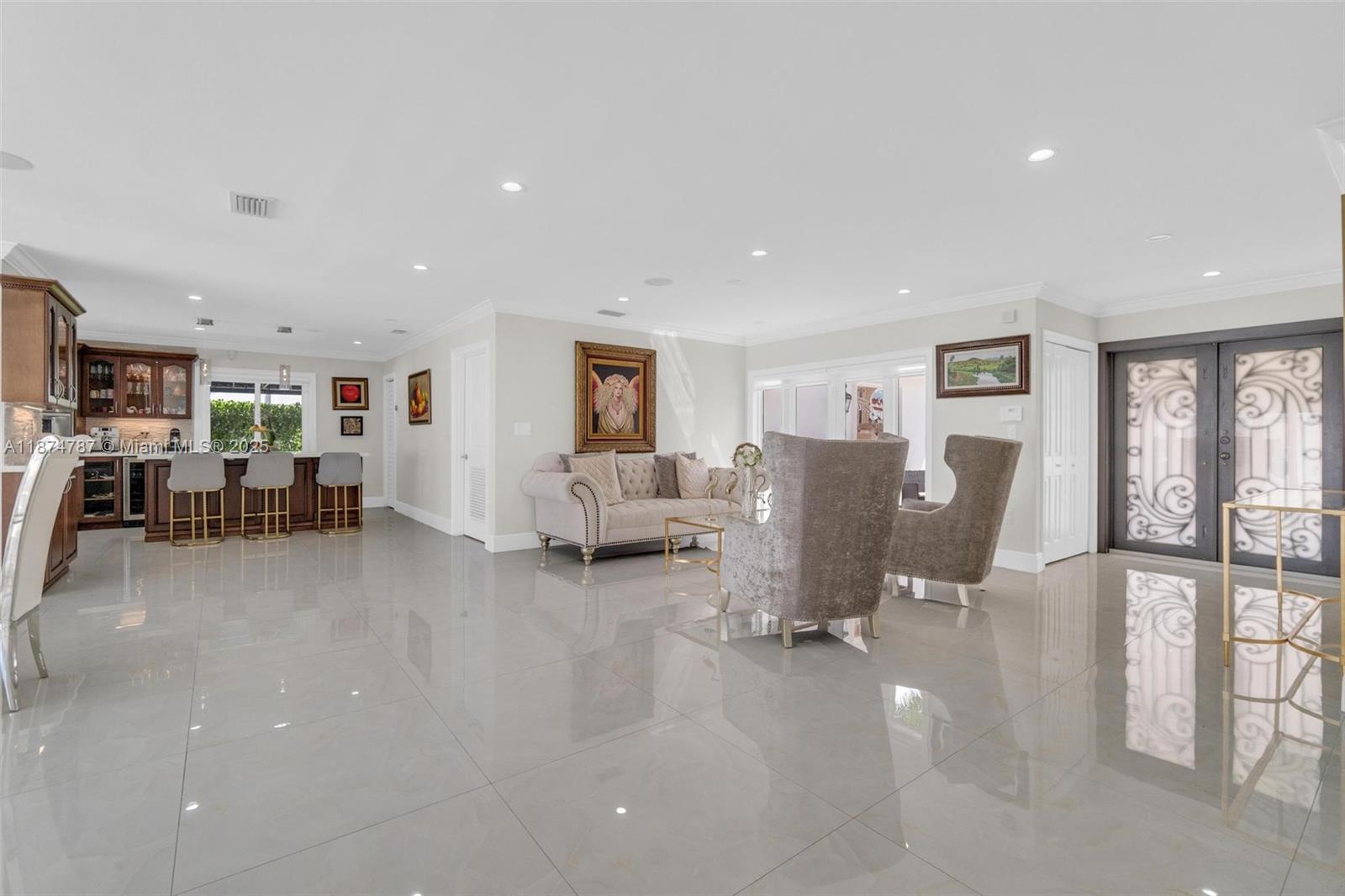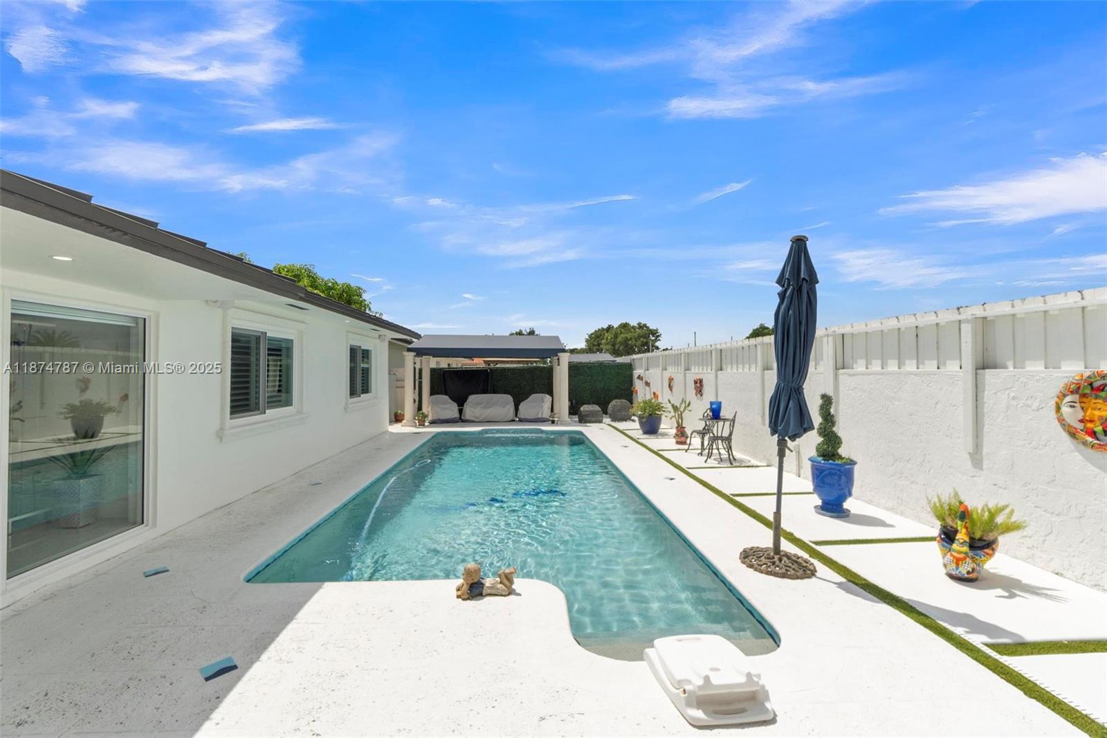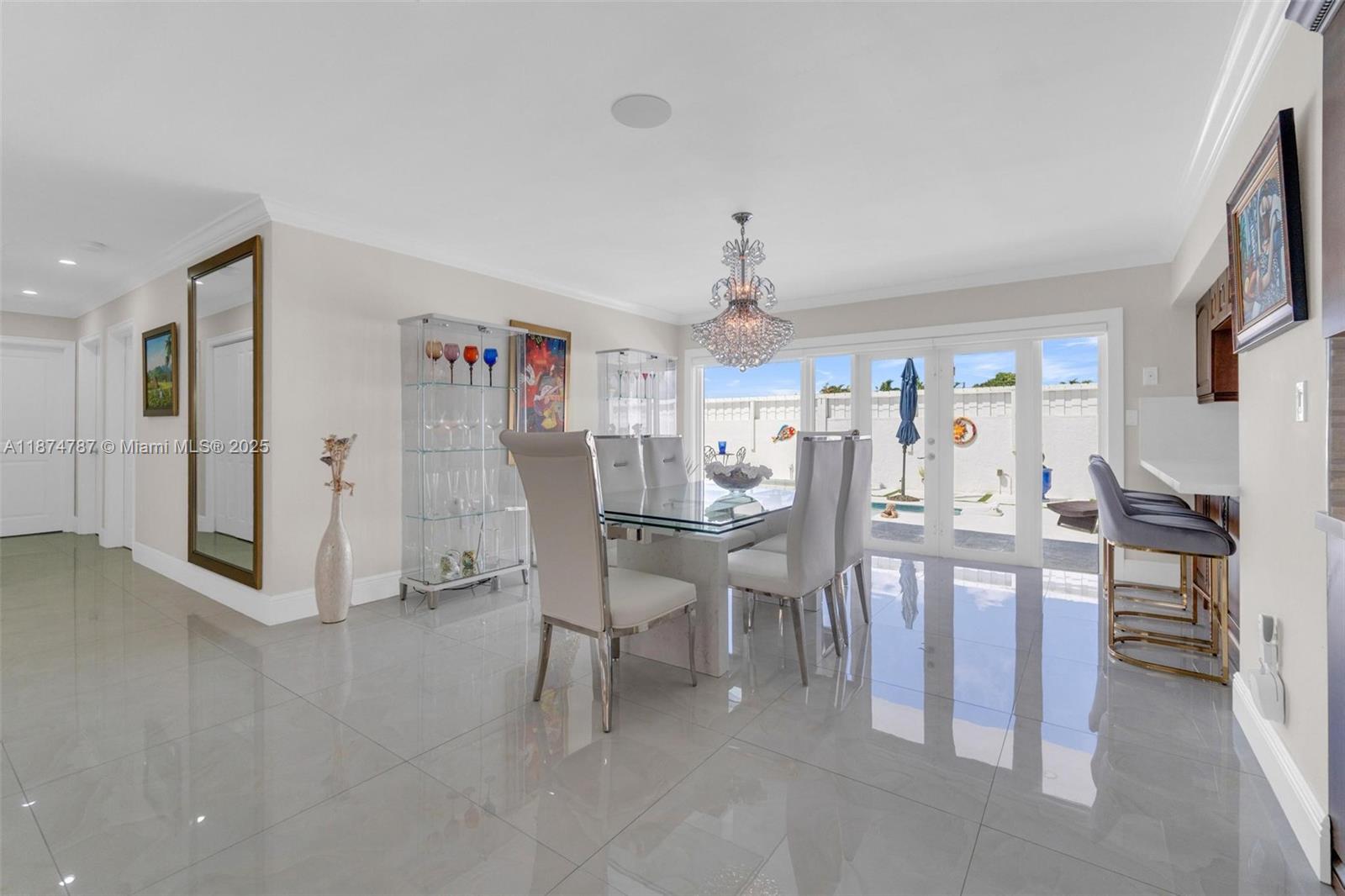 Step into a light-filled, pristine home that blends modern design with the space & comfort families need for everyday living & gatherings. The paved & landscaped front sets the tone for the home. High-end porcelain tile & carefully selected finishes create a refined atmosphere, expansive windows & sparkling pool views enhance the open layout. This renovated 4 BR home includes a converted garage/flex room for a guest suite, gym, office, or playroom. The primary suite offers an en-suite bath & oversized walk-in closet. A dedicated laundry room adds convenience. Outdoors, enjoy a salt-water heated pool with seating for parties, a redesigned patio with lighting, & gazebos with fans. With a new roof, impact windows & doors, & a prime location near FIU & the Turnpike, this home is move-in ready.