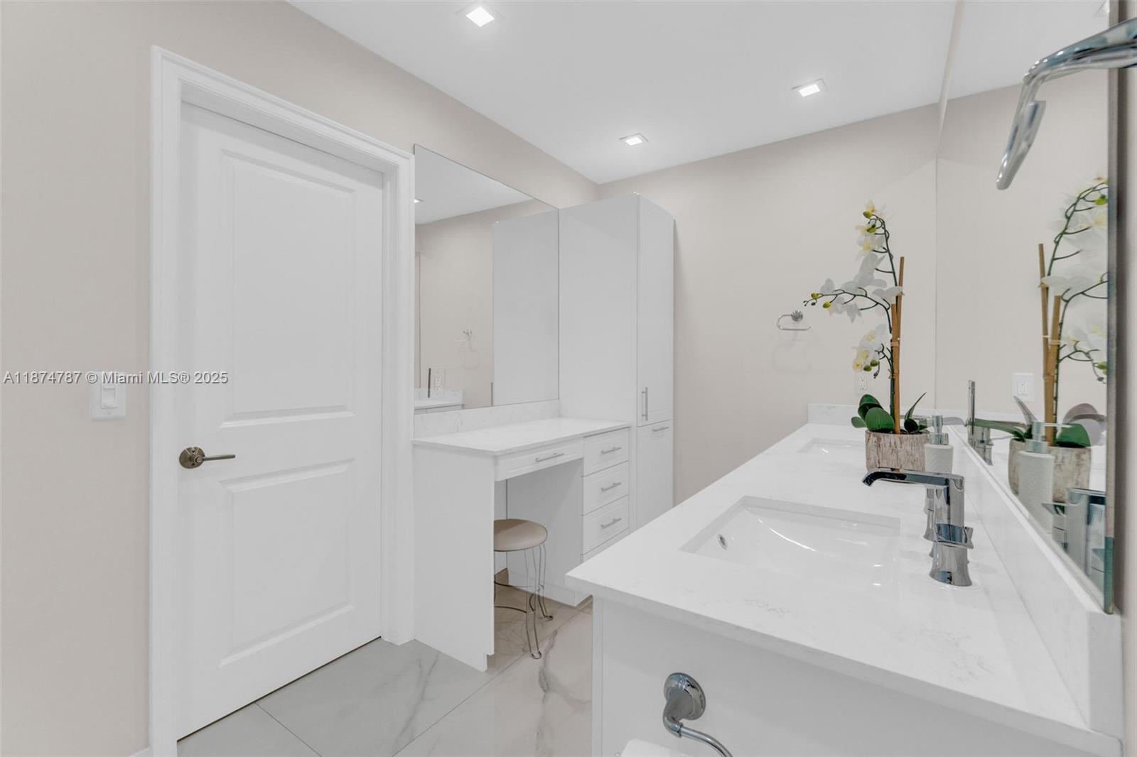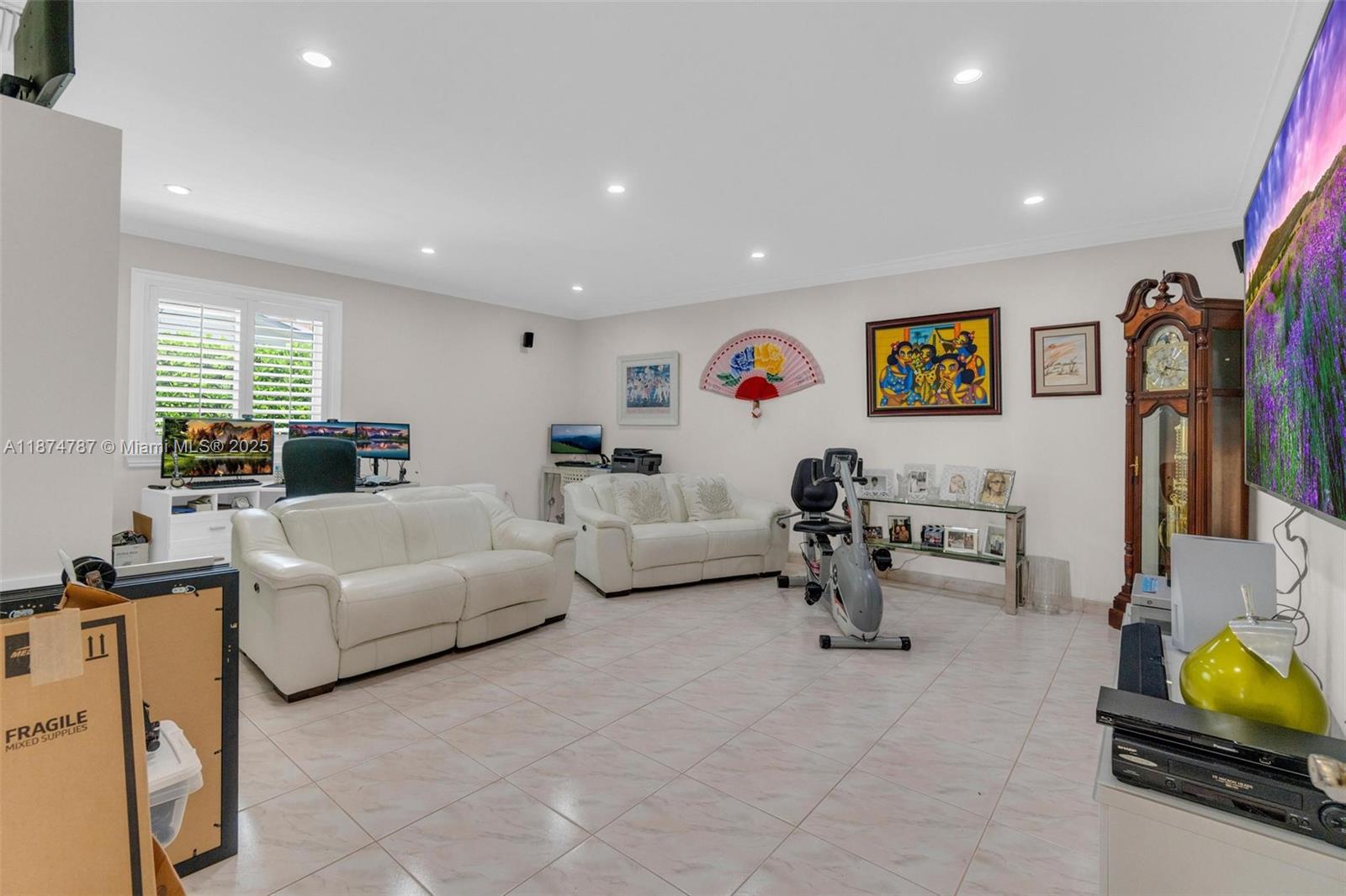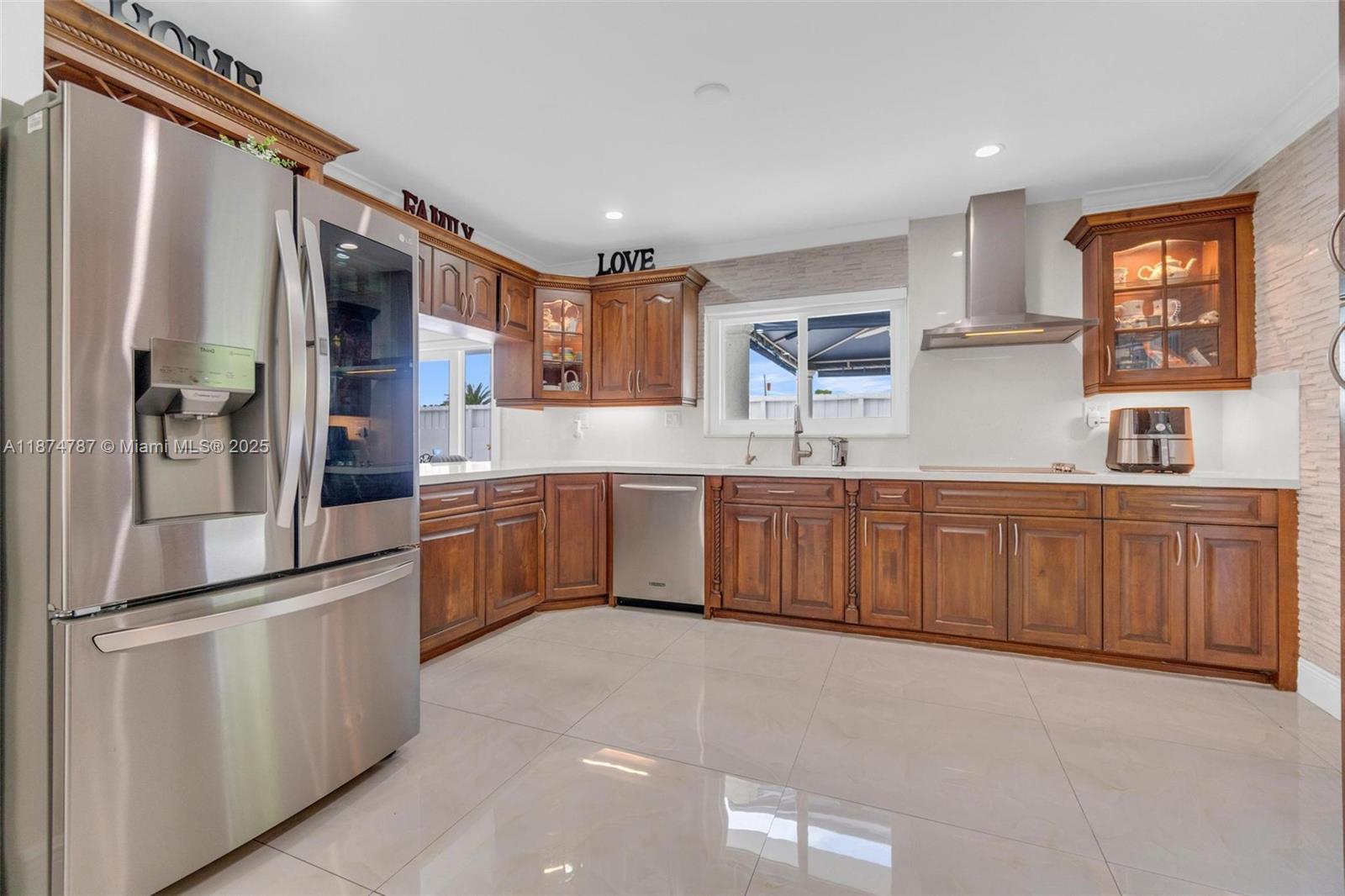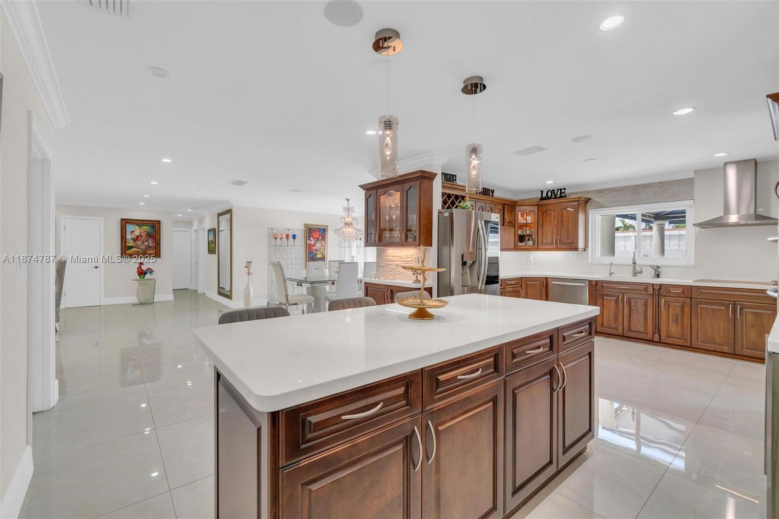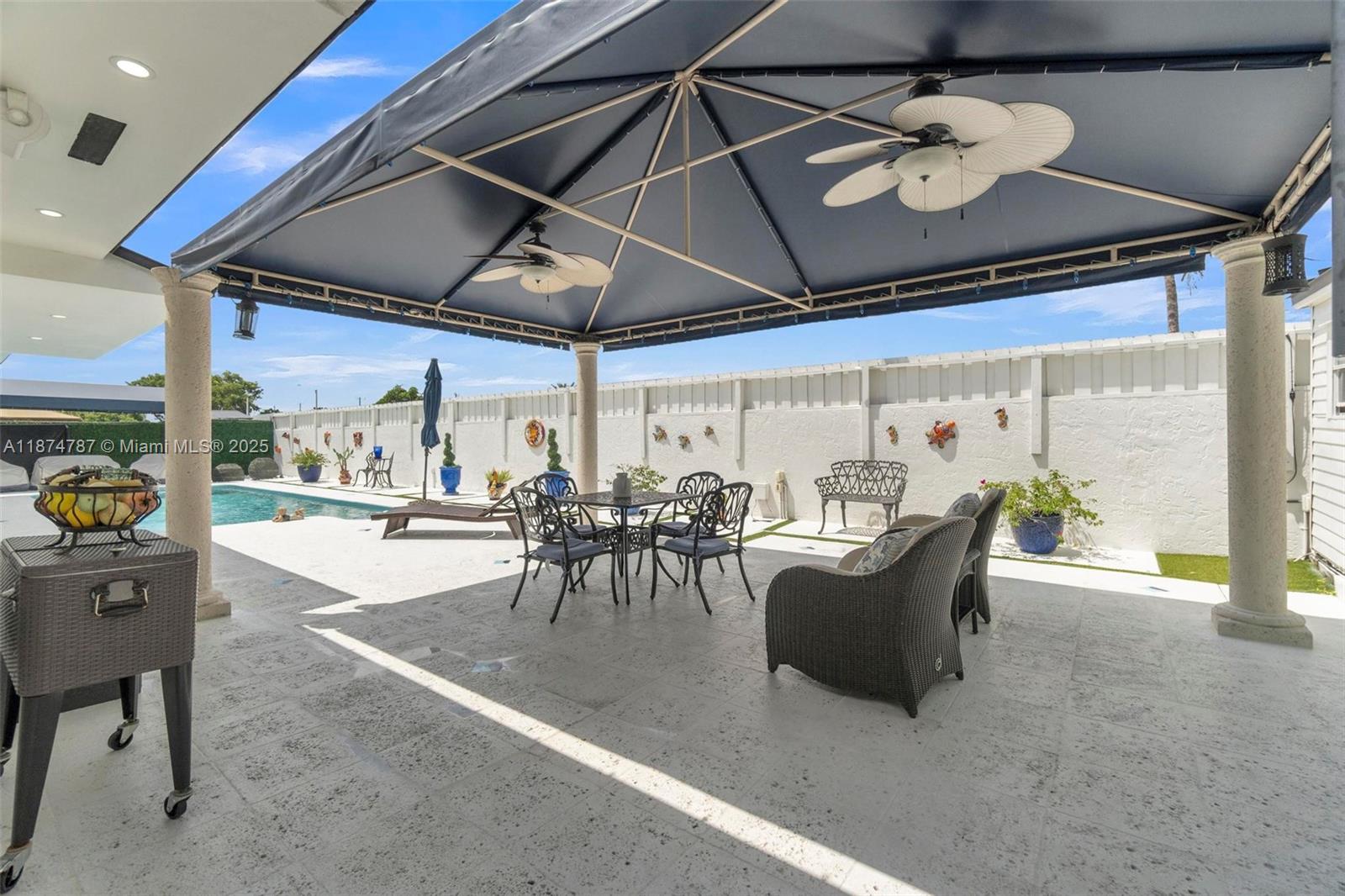 Step into a light-filled, pristine home that blends modern design with the space & comfort families need for everyday living & gatherings. The paved & landscaped front sets the tone for the home. High-end porcelain tile & carefully selected finishes create a refined atmosphere, expansive windows & sparkling pool views enhance the open layout. This renovated 4 BR home includes a converted garage/flex room for a guest suite, gym, office, or playroom. The primary suite offers an en-suite bath & oversized walk-in closet. A dedicated laundry room adds convenience. Outdoors, enjoy a salt-water heated pool with seating for parties, a redesigned patio with lighting, & gazebos with fans. With a new roof, impact windows & doors, & a prime location near FIU & the Turnpike, this home is move-in ready.