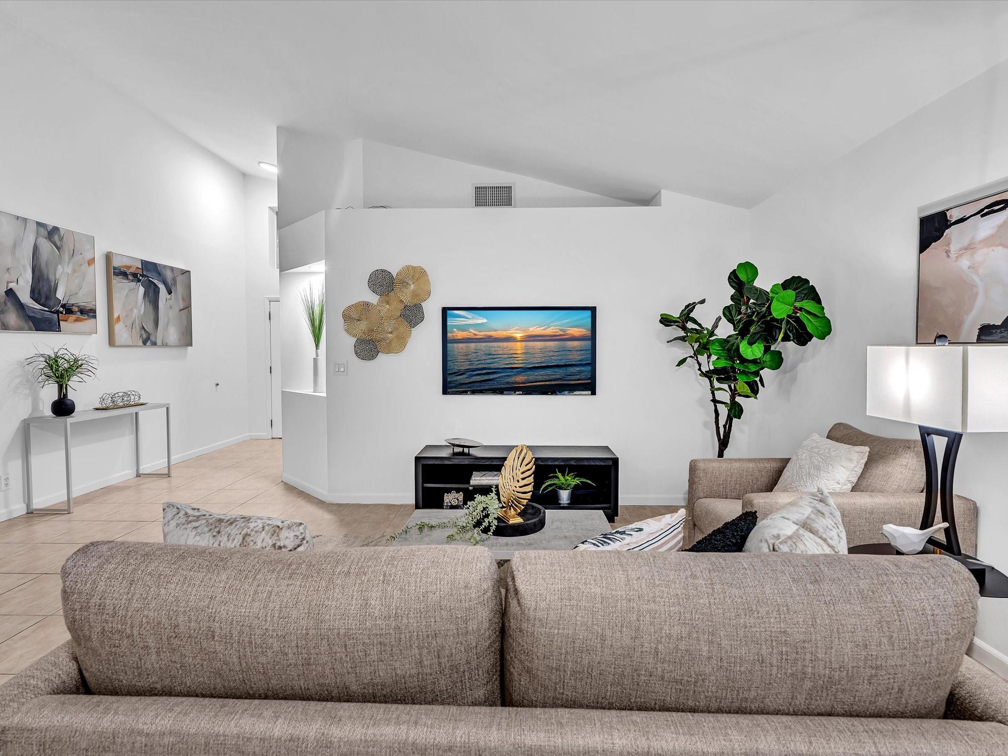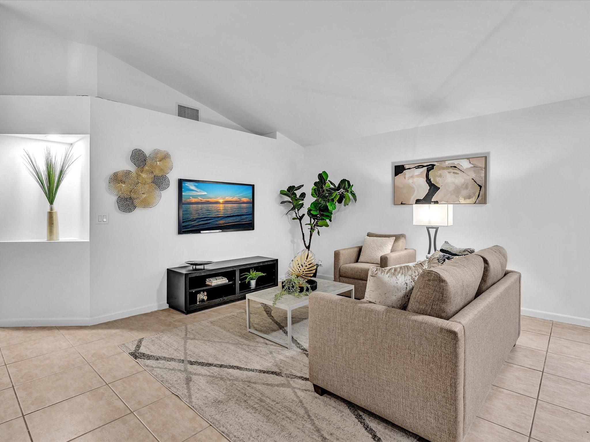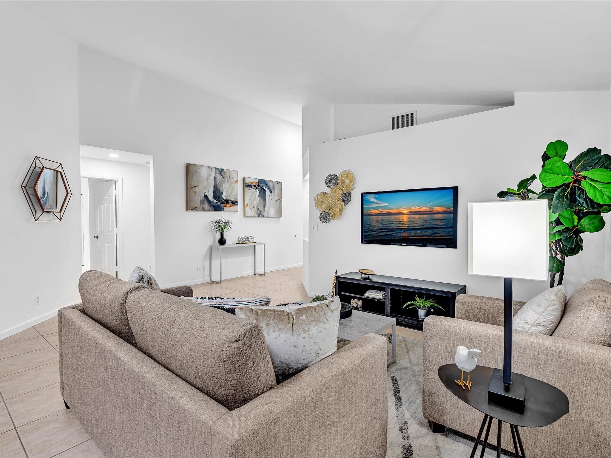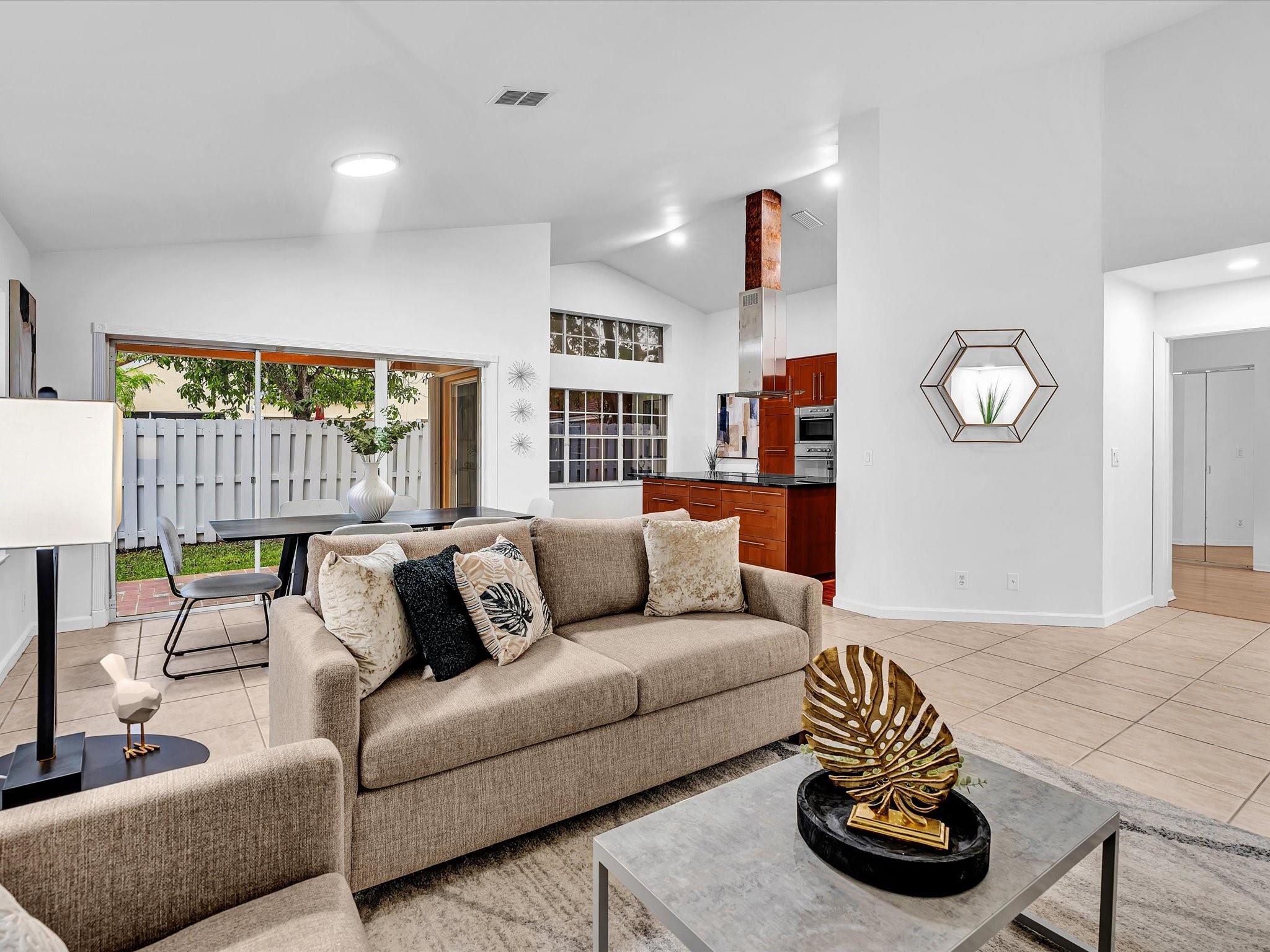 NEWER 2023 TILE ROOF! Low HOA. Zoned for Cypress Bay. Located on a peaceful street that ends in a cul-de-sac, this residence features freshly painted interiors, smooth vaulted ceilings, and a naturally bright great room that gives the home a clean and airy feel. The expanded kitchen—with abundant cabinetry, large island, induction cooktop, and smart-panel stainless steel refrigerator—sets the stage for preparing and enjoying dinner together. The split layout offers a spacious primary suite with its own bath, two additional bedrooms with a beautifully remodeled second bath, plus laundry room, two-car garage, pavered driveway and entry, and accordion shutters. Photos have been added simulating one solid floor throughout. Close to parks, shopping, top-rated schools, and I-75.