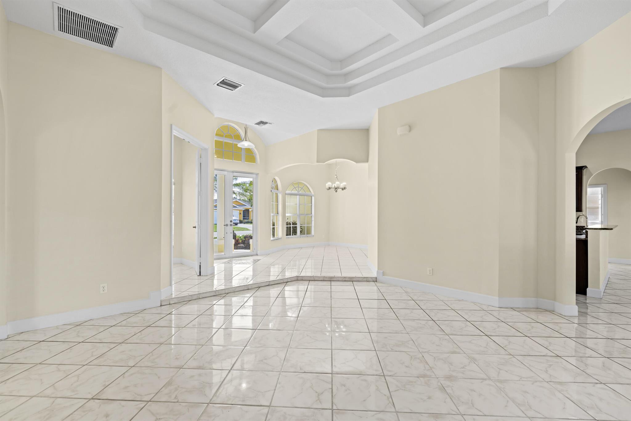 Nestled in the desirable east area of Port St. Lucie, this beautiful custom home with a Mediterranean Style flair offers the perfect blend of elegance, space, style and comfort. Home Features: 4 BR,3 Full baths, a den/office, formal dining, living and family room, Impact windows and doors and resort style pool. As you step inside, you'll be welcomed by an open concept layout, tile flooring throughout and custom triple tray/ volume ceiling, creating a seamless and modern feel from room to room. Kitchen has granite countertops,Built-in Island,SS appliances, Owner Finiancing available . Master bedroom includes his and hers closets,open Walk-In shower and a separate jacuzzi tub. Home is closer to Jensen Beach/Martin County, minutes away to beaches,shopping,restaurants,hospital and schools.