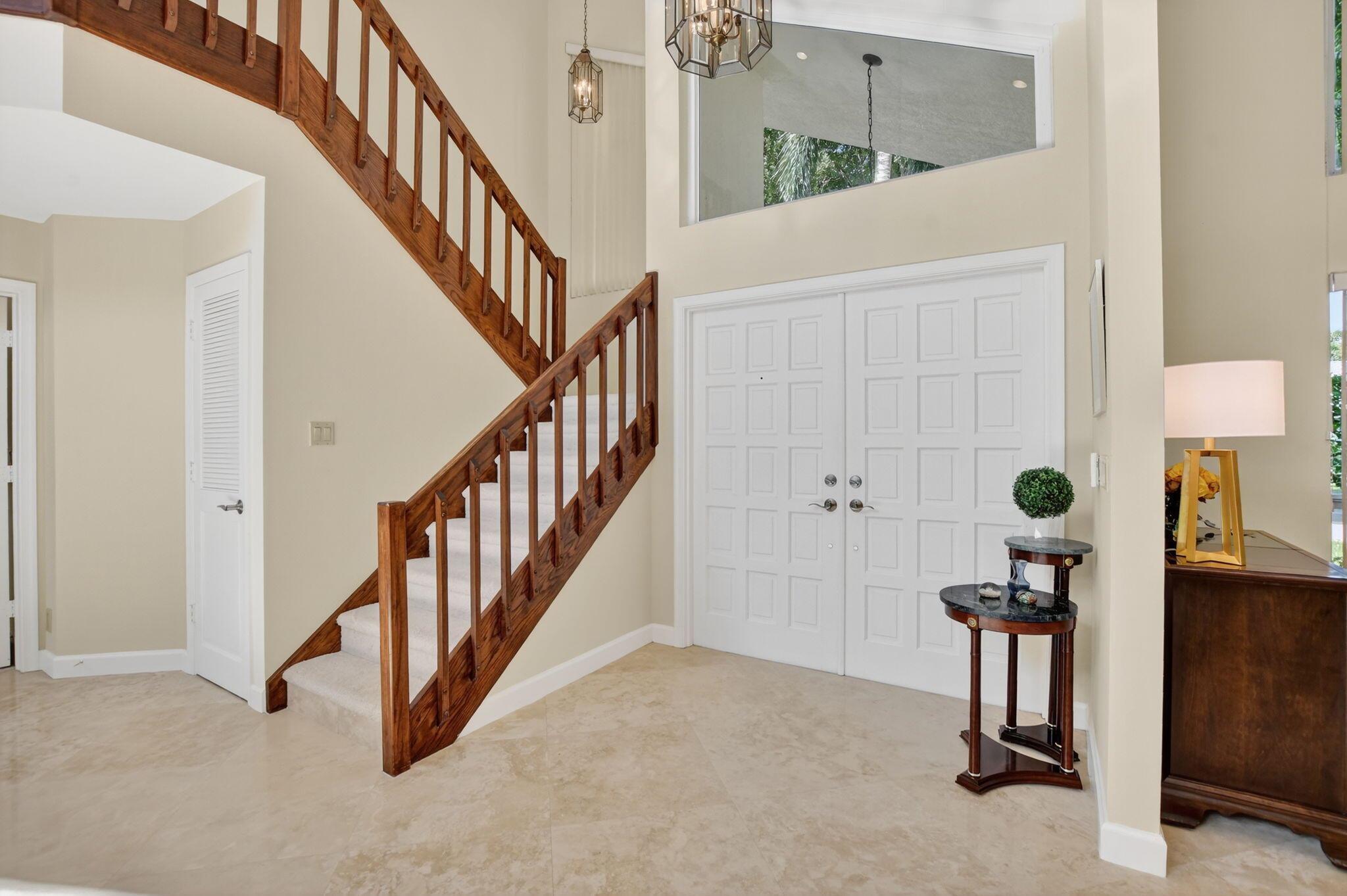 Don't miss this opportunity! Own your dream home in Colonnade, the highly sought-after & beloved non-gated community in central Boca Raton. From the moment you enter, you'll be captivated by the soaring ceilings, dramatic two-story windows & abundant natural light that fills every corner of the open-concept layout, neutral tones & expansive ceilings create a bright, airy & serene ambiance--perfect for both everyday living & stylish entertaining. This pristinely maintained move-in ready residence spans nearly 3,000sf of thoughtfully designed living space featuring a generously sized primary bdrm & bath + 1 additional bdrm & cabana bath downstairs; 2 spacious bedrooms with a jack & Jill bath upstairs, all nestled on a lush private lot with views of the sparkling pool, huge deck & green space