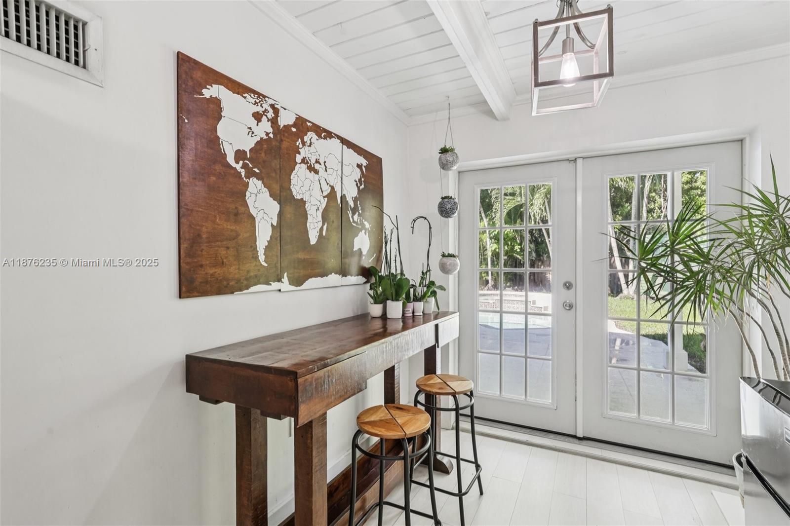 Charming 3-Bedroom 2-Bathroom South Miami Home with Oversized Heated Pool. This beautifully updated home features nearly 1,900 SqFt of living space on a 9,991 SqFt Lot with soaring wood-beam ceilings and rich cedar finishes. Enjoy a newer roof, new A/C, updated PVC plumbing, and a modern kitchen with gas stovetop and breakfast nook. The master suite opens to a fully fenced covered patio with a heated oversized pool and spa. Additional highlights include a circular driveway, covered carport, and attached storage shed. Ideally located near the University of Miami, Coral Gables, and South Miami Hospital — the perfect blend of charm, space, and convenience. Act fast – homes in this serene, in-demand community go quickly!