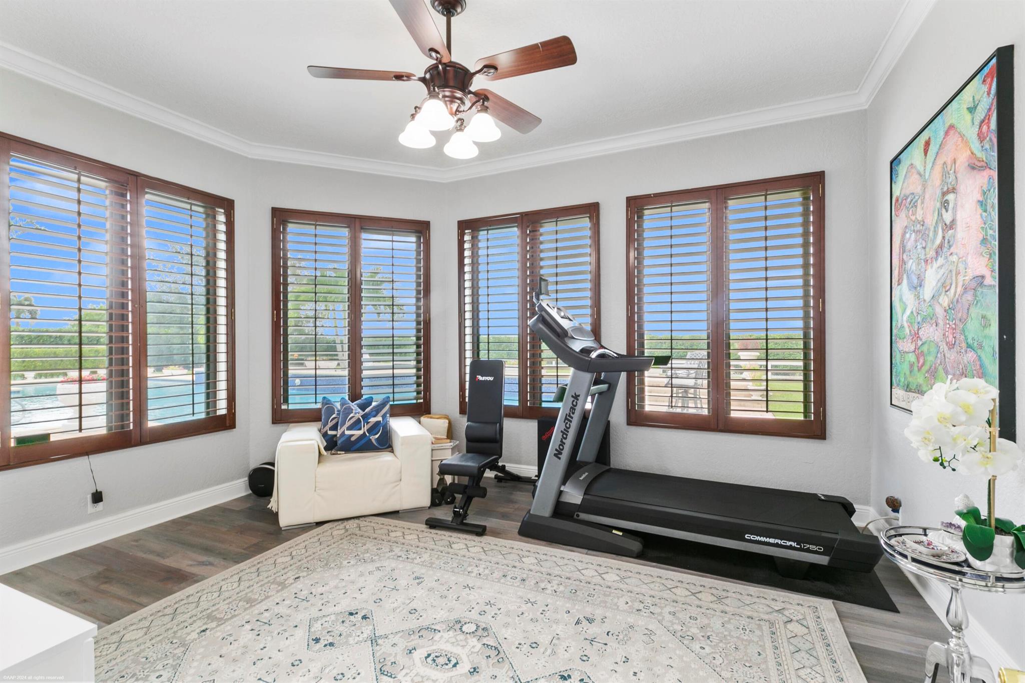 With no expenses spared, this completely renovated Southfield's of Palm Beach Polo Club Estate is situated on 5 private polo fields. Appraised at $5.73M (June 2025), this turn-key 5 bed, 4.5 bath, 5,677 sq. ft. home is just a short golf cart ride from all equestrian show grounds. Enjoy this 5 Star resort style estate with one of South Florida's largest residential heated salt water pools 88ft long, stone coated metal roof, gated entry, pickleball court, and full outdoor kitchen. Stunning interiors with soaring ceilings, picture windows, spiral staircase, and chef's kitchen with 120'' marble waterfall island. Upgrades include new hurricane-proof windows/doors, 5 new remodeled baths, AC garage, Sonos audio, security cameras, water-leak detection, and whole-house generator.