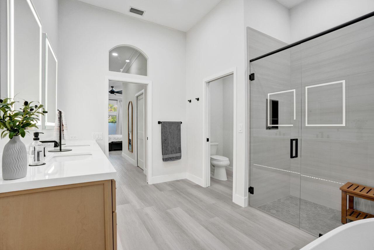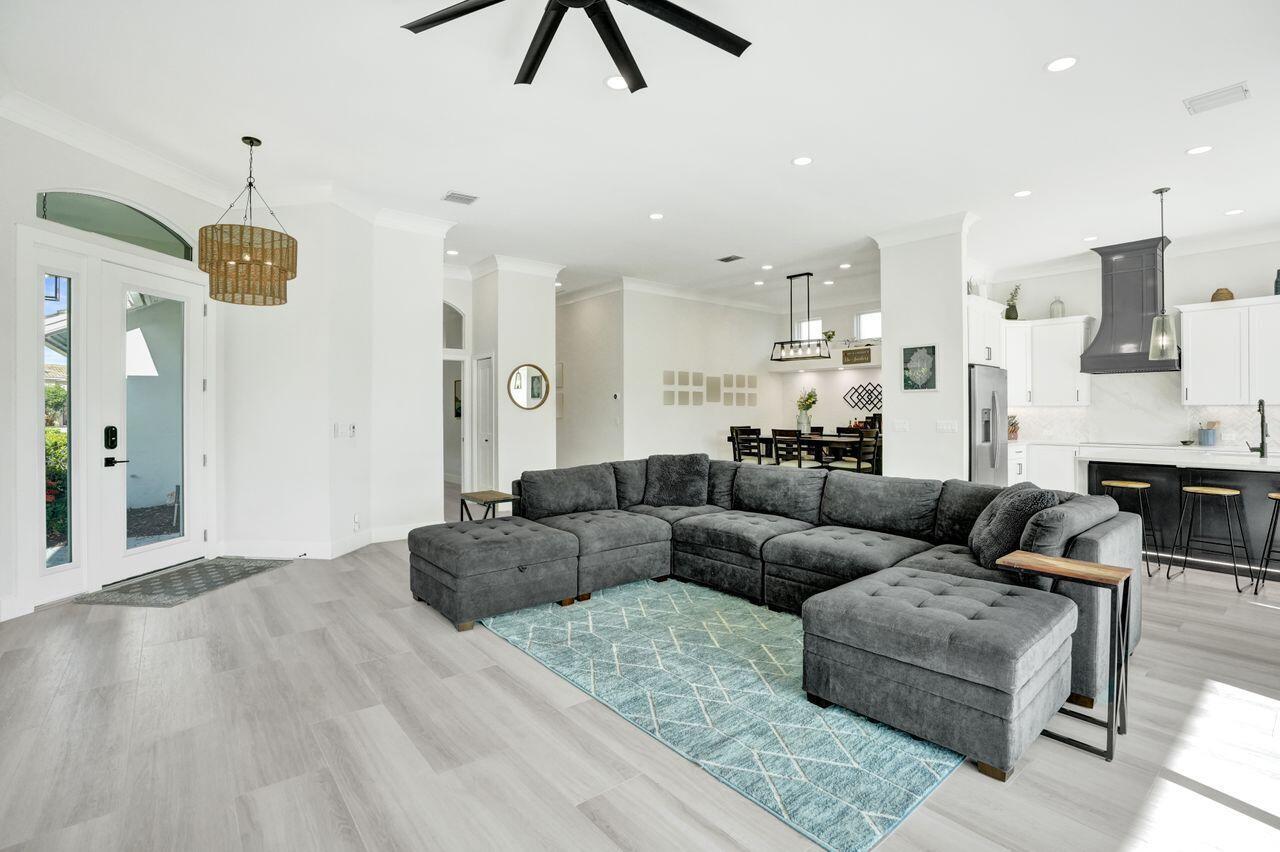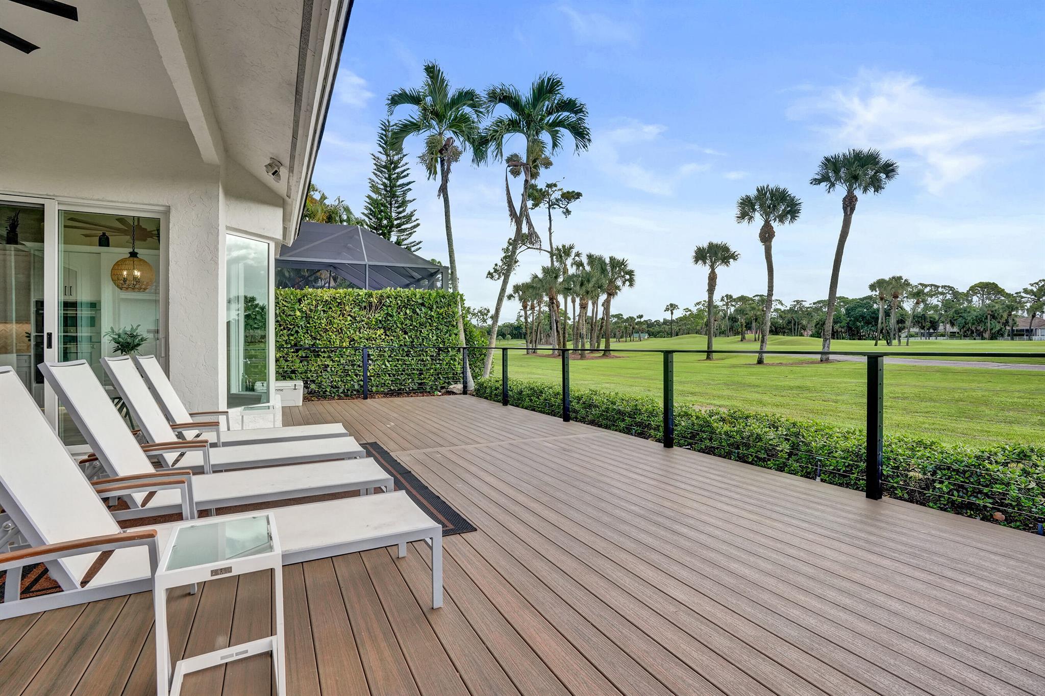 Beautiful golf course home with New roof, New A/C , New impact windows/doors and New water heater in the 24/7 man gated community of Ironhorse! This renovated one-story gem offers a showstopping kitchen--brand new with top-of-the-line appliances, a huge quartz waterfall island with extra storage, & large pantry. The open eat-in kitchen, patio with a summer kitchen, and light/bright open family room with impact sliders leading to a sleek fenced-in composite deck with amazing golf course views of the 8th & 9th holes makes this the perfect place for entertaining. Spacious owner's suite features walk-in closet, gorgeous bathroom with dual sinks, soaking tub, & a sleek shower. Wood look tile floors throughout, 2-car + golf cart garage. NO membership required. Near world class shopping/dining.